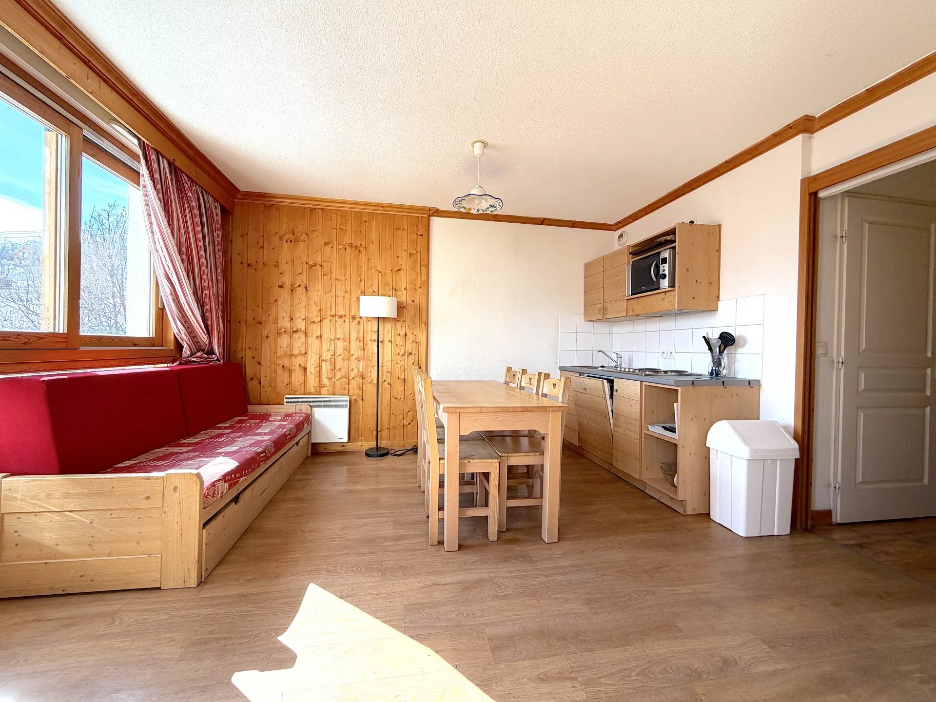 EXCLUSIVITÉ C&M IMMOBILIER Appartement en bon état général dans une copropriété bien entretenue. Composé d'une entrée, une pièce de vie avec superbe vue, un balcon, une chambre avec lit double, un coin nuit spacieux avec lits superposés et grand placard, une salle de bains et WC. Vendu avec une place de parking privative et un casier à skis. Appartement sous bail commercial jusqu'en avril 2029 Loyer annuel : 4900 € TTC Remises commerciales de 20% sur les séjours personnels