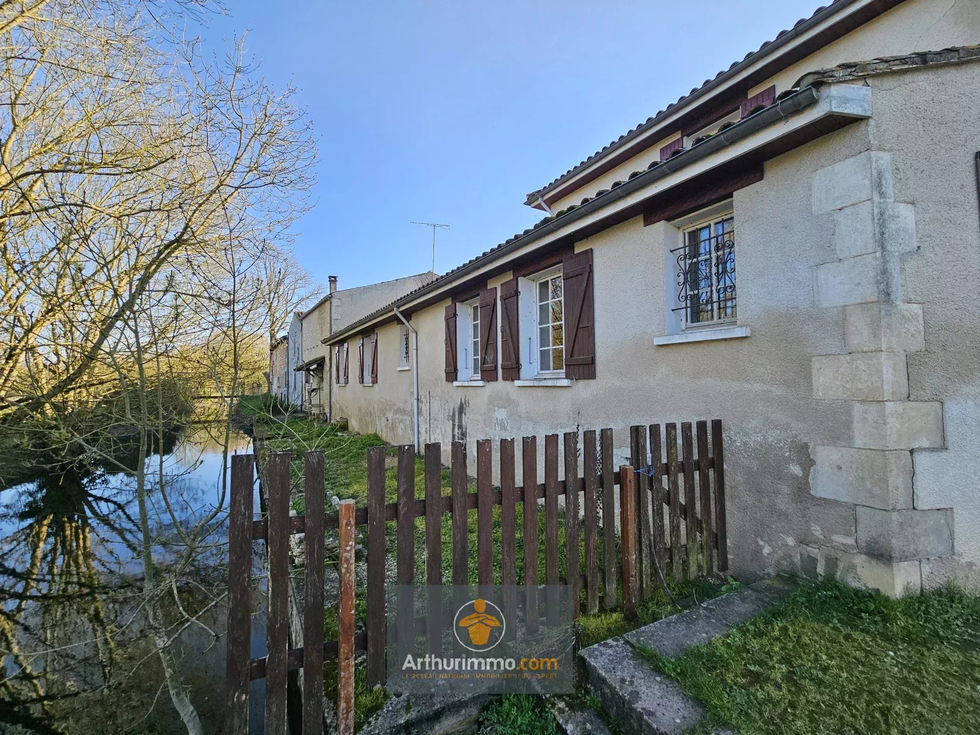 Ensemble en pierres avec vue exceptionnelle sur le port et le marais, jardin clos de 760m². Au rez-de-chaussée : véranda, grande entrée, cuisine, séjour double avec insert, 1 chambre, grande salle d’eau, WC. À l’étage : 2 chambres et 2 greniers aménageables. Accès direct à 2 pièces attenantes pouvant être exploitées selon vos besoins. Grandes dépendances. Travaux à prévoir. Raccordée au tout-à-l’égout. Accès direct eau par embarcadère. Contactez votre agence immobilière Arthurimmo.com Courçon (17170) idéalement située au cœur du Marais Poitevin ! À seulement 25 minutes de La Rochelle (17000) 25 minutes de Niort (79000) 5 minutes pour rejoindre Ferrières d'Aunis (17170) et sa zone commerciale 15 minutes pour Surgères (17700) et sa gare TGV Pour toutes vos transactions immobilières, contactez-nous dès aujourd'hui !