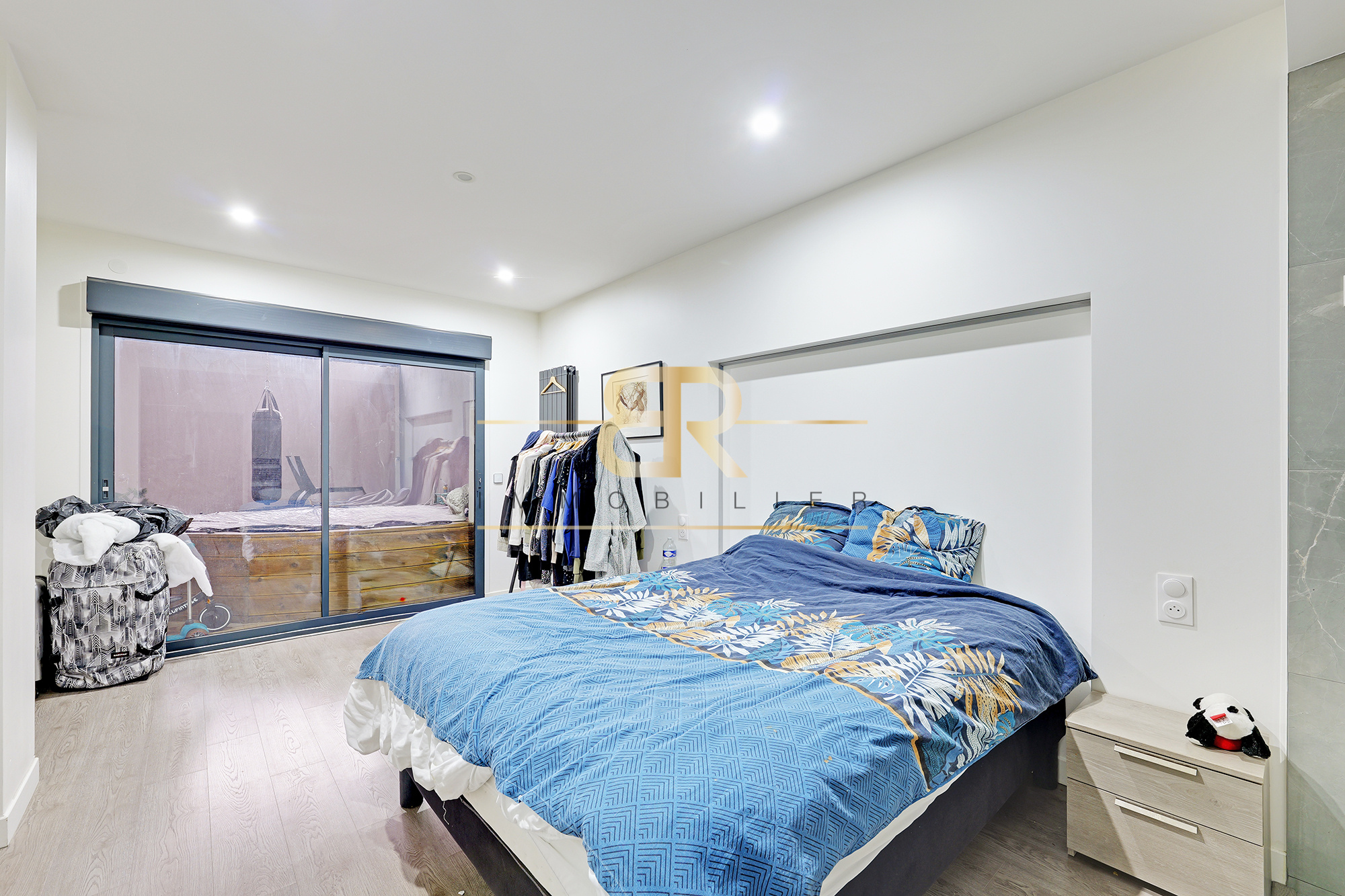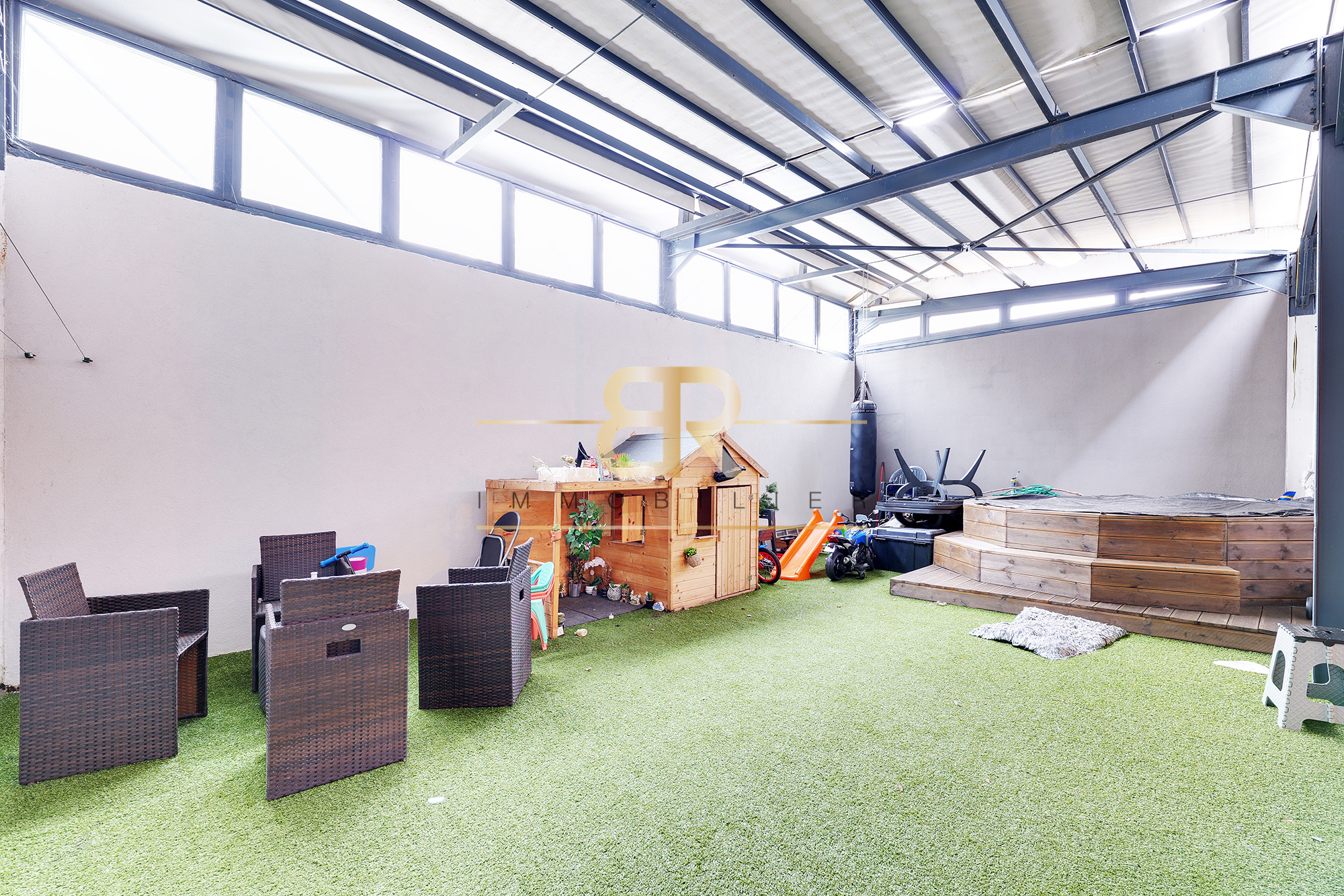 À l'extérieur, profitez d'une superbe TERRASSE aménagée avec STORE D'EXTÉRIEUR MOTORISÉ et JACUZZI, idéale pour vos moments de détente en toute intimité.