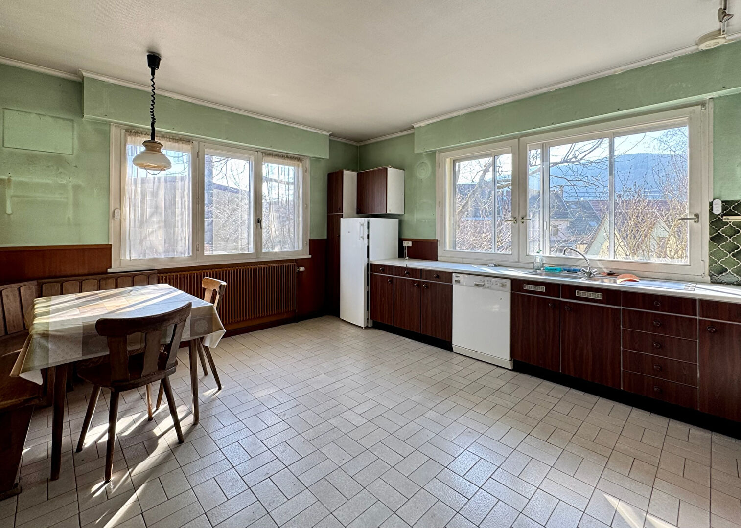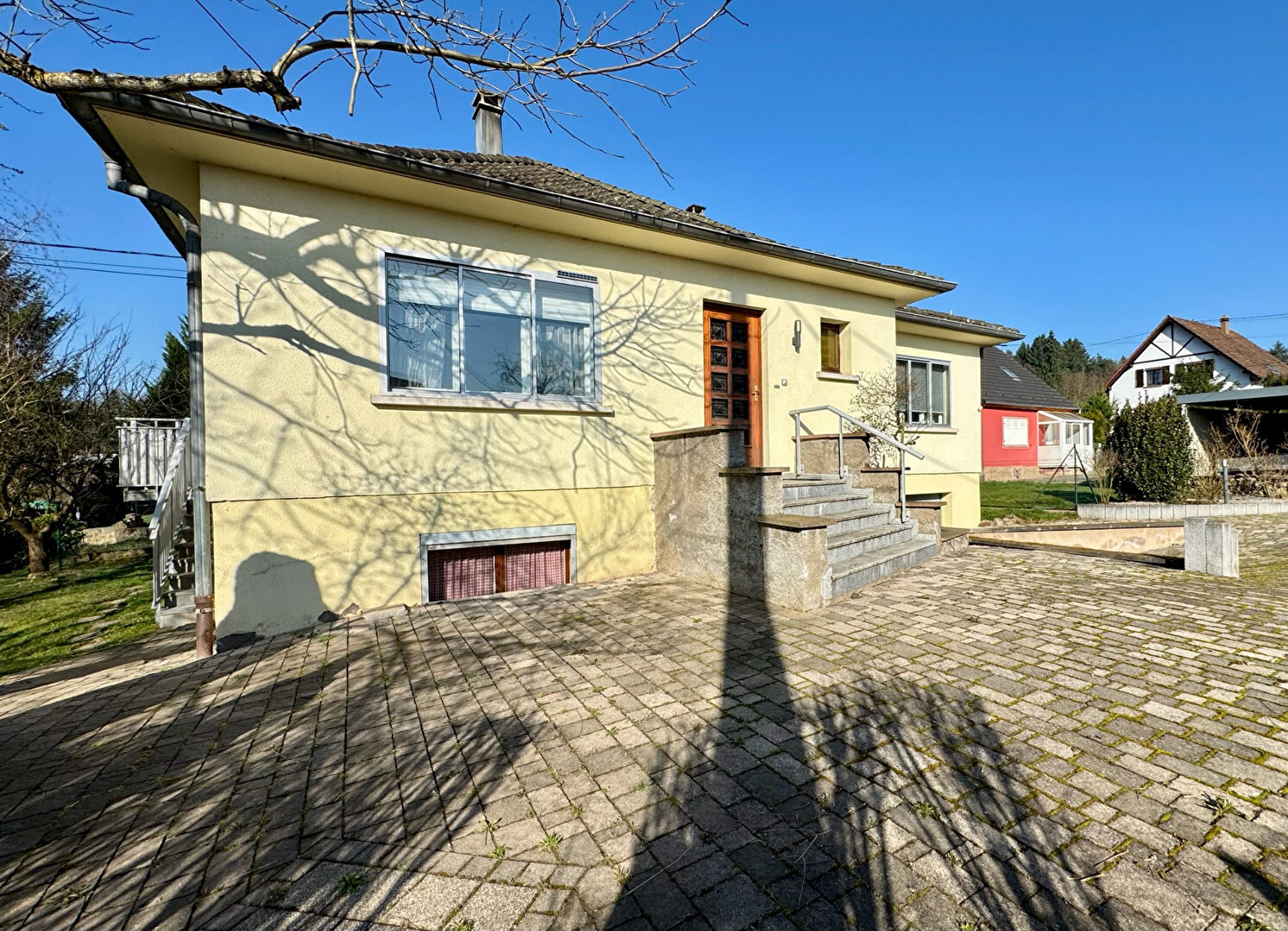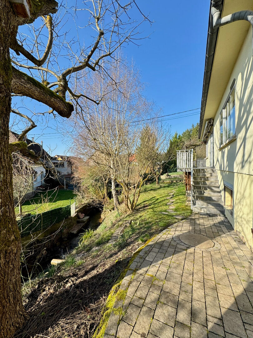 Située dans une impasse et en bordure du Soultzbach, sur un terrain de 9,37 ares, spacieuse maison de plain-pied datant de 1972. Elle se compose d'une entrée, d'un spacieux séjour, d'une grande cuisine indépendante, de 3 chambres, d'une salle de bains et d'un WC séparé. Le comble est aménageable et offre un potentiel d'agrandissement : logement indépendant, chambre, bureau, salle de jeux. Le sous-sol est total et comprend un garage double (en longueur), une chaufferie (avec un WC et une douche), et deux grandes pièces chauffées. Chauffage au fuel et un poêle à bois dans le séjour. A l'extérieur : une terrasse coté Soultzbach et jardin, un carport à l'entrée du terrain, un grand jardin à l'arrière.