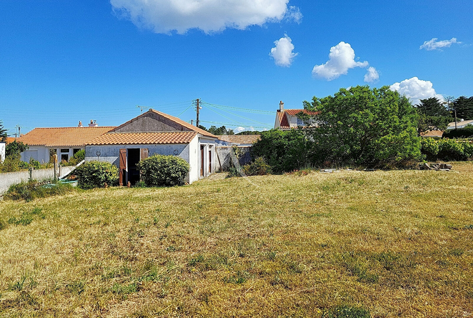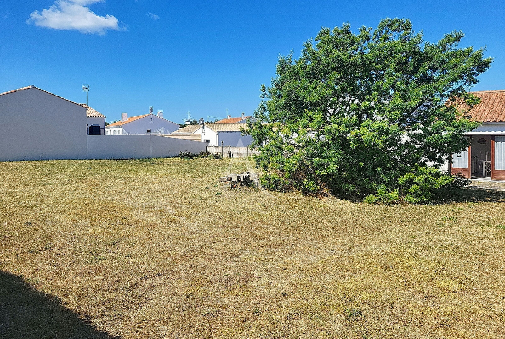 VENTE - TERRAIN - NOTRE DAME DE MONTS Trés, trés rare, A vendre, Terrain viabilisé de 727 m², en impasse, libre de constructeur. Petit bâtiment à usage d'habitation d'été d'environ 39 m² composé, d'une pièce de vie de 11 m², une salle d'eau/WC de 2,88 m², une chambre de 15,25 m² et d'une buanderie de 10 m². Le batiment n'est pas raccordé aux réseaux. Vous êtes à 1 km des plages et de la forêt domaniale. A 300 m du bourg et des commodités. Zone UC du PLU - 40 % d'emprise au sol. Réf.10988 Les informations sur les risques auxquels ce bien est exposé sont disponibles sur le site Géorisques : www.georisques.gouv.fr (C.envir art. R 125-25, I modifié) Pour toute information complémentaire ou visite, contactez-nous au 02.52.700.116 ou par mail notredame@ladresse.com (5.75 % honoraires TTC à la charge de l'acquéreur.)