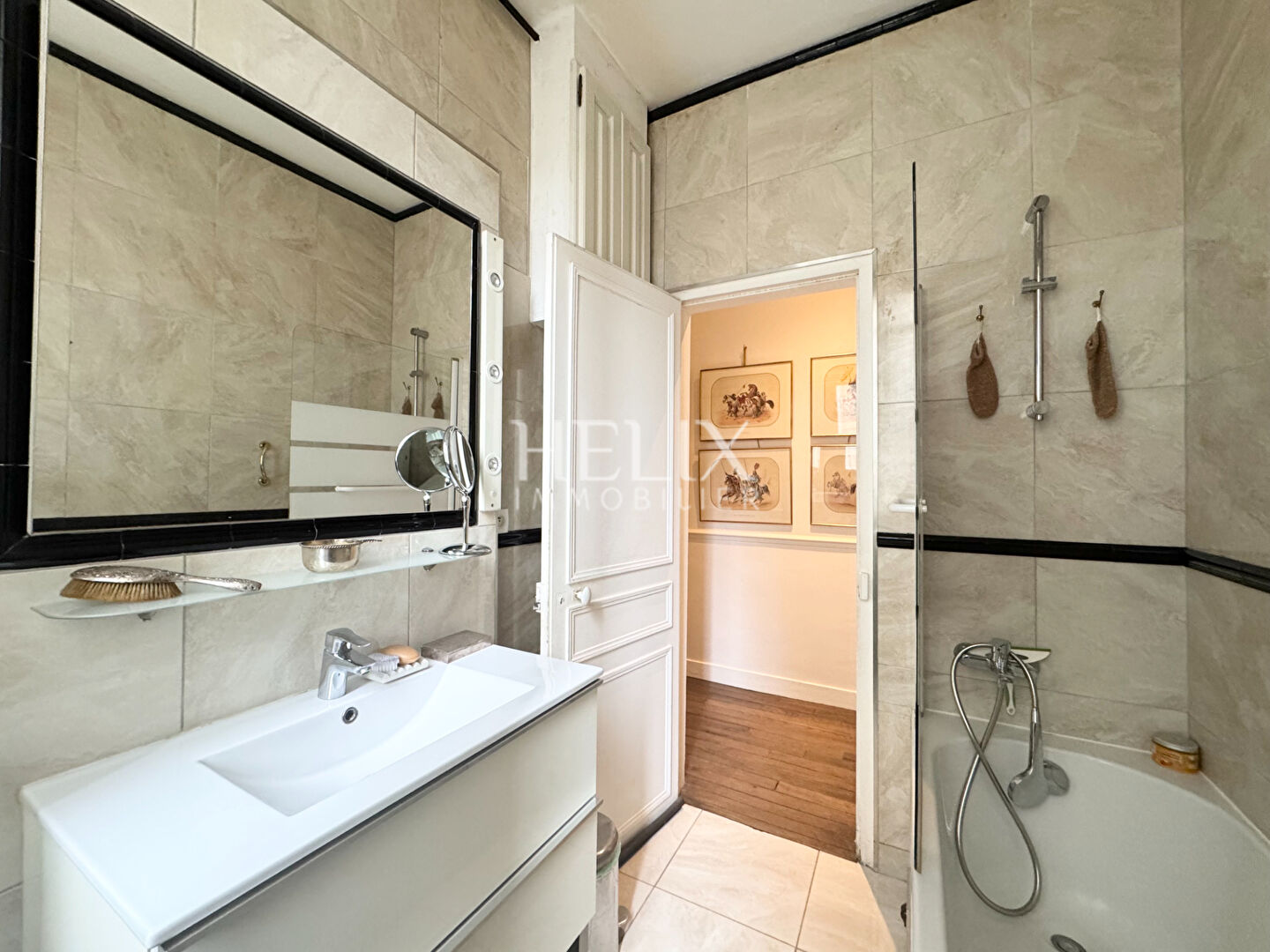 Situé à Saint-Germain-En-Laye, dans un bel immeuble en pierre de taille, appartement en rez-de-chaussée surélevé d'une superficie de 82.83M² Entrée, un séjour, une salle à manger, une cuisine indépendante équipée et aménagée, deux chambres, une salle de bains et une salle de douche, WC. Deux caves complètent ce bien. Helix Immobilier nous consulter. Copropriété de 10 lots. Charges annuelles : 1700 euros.