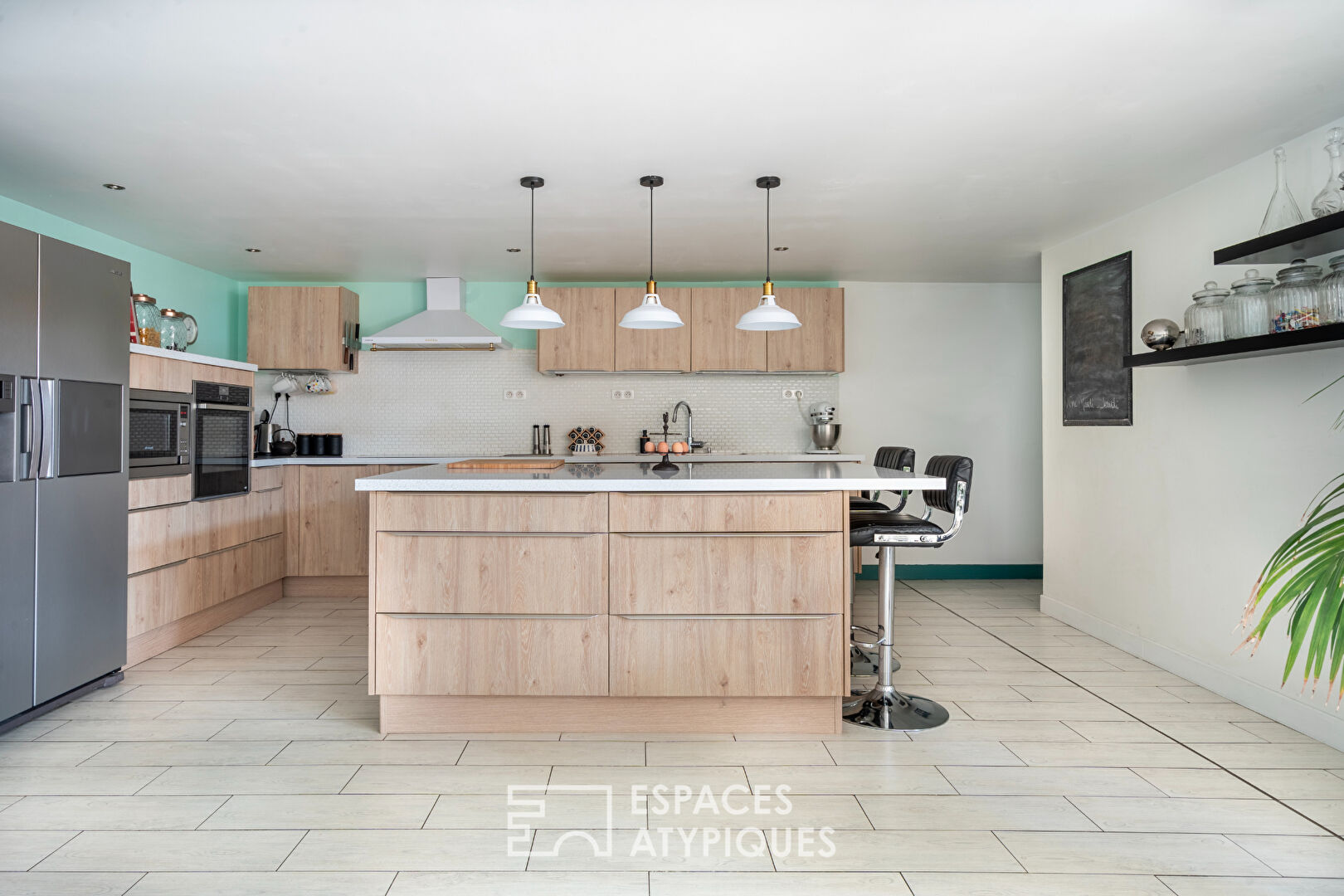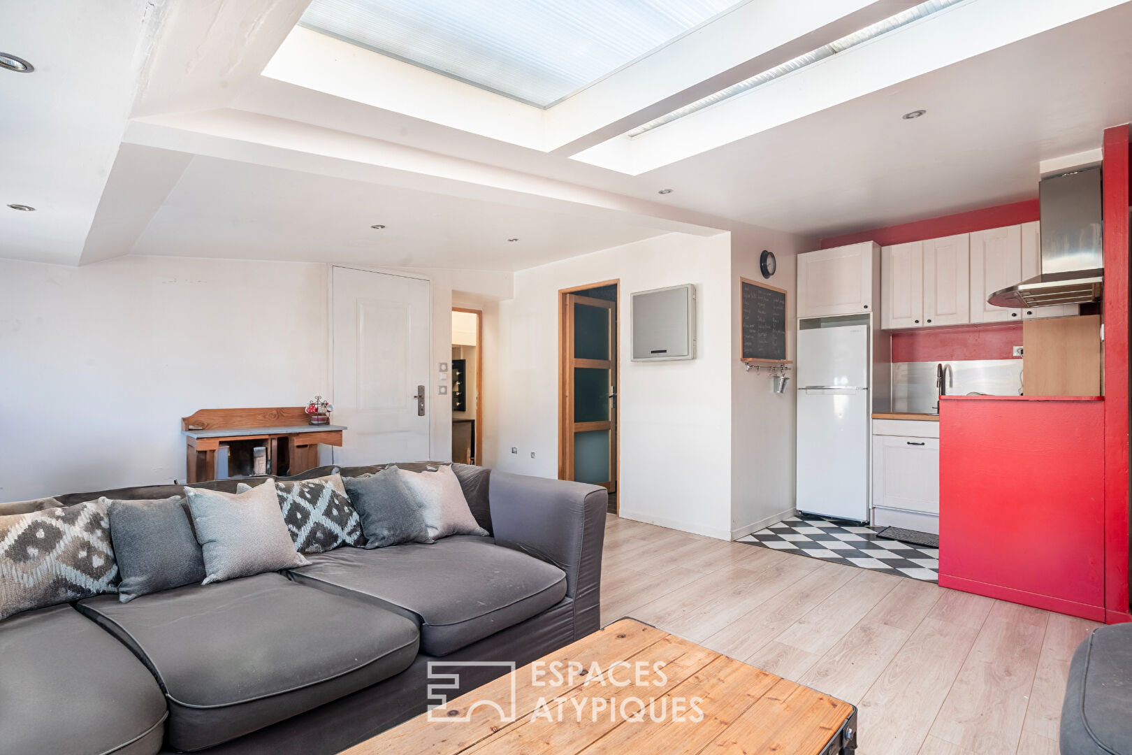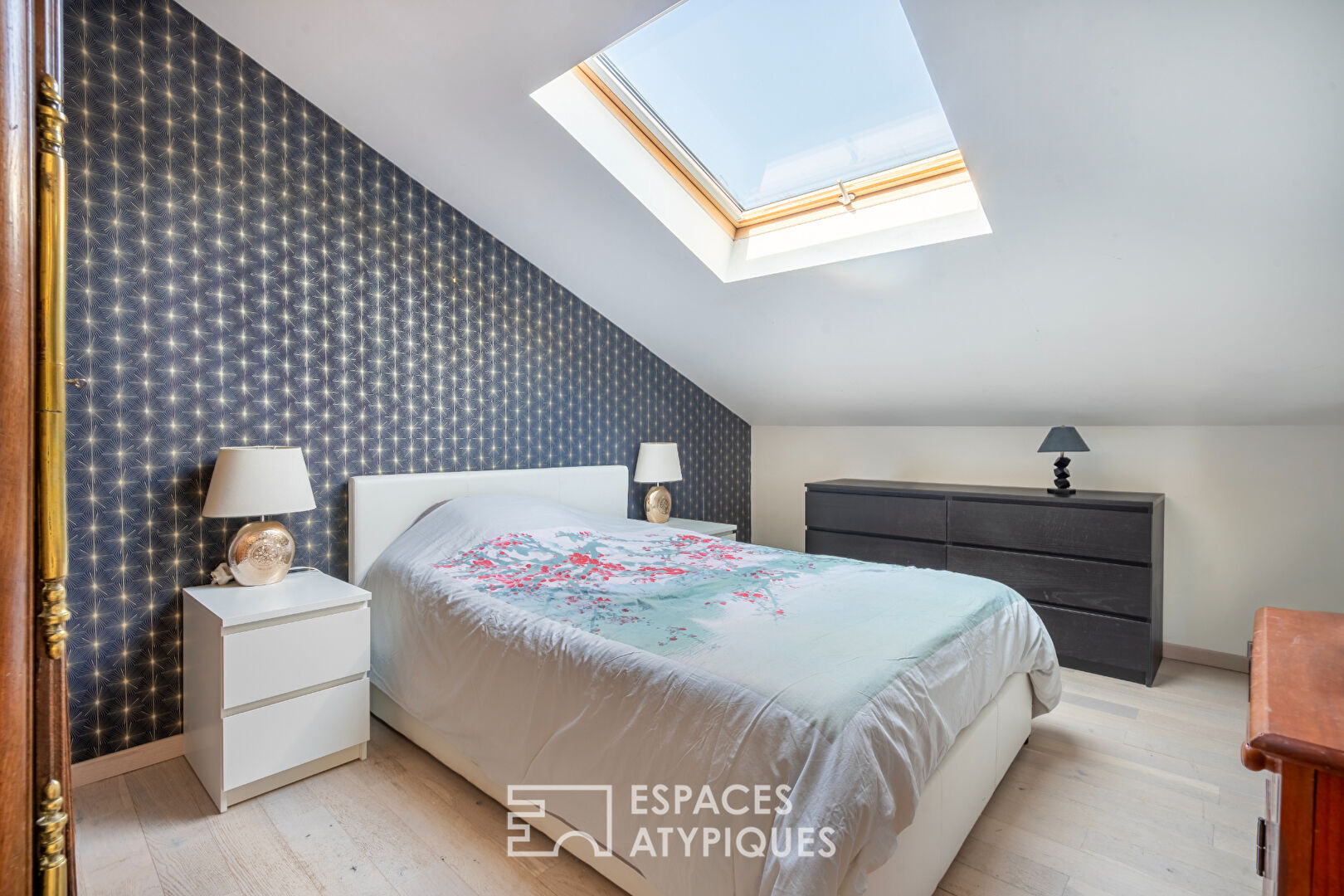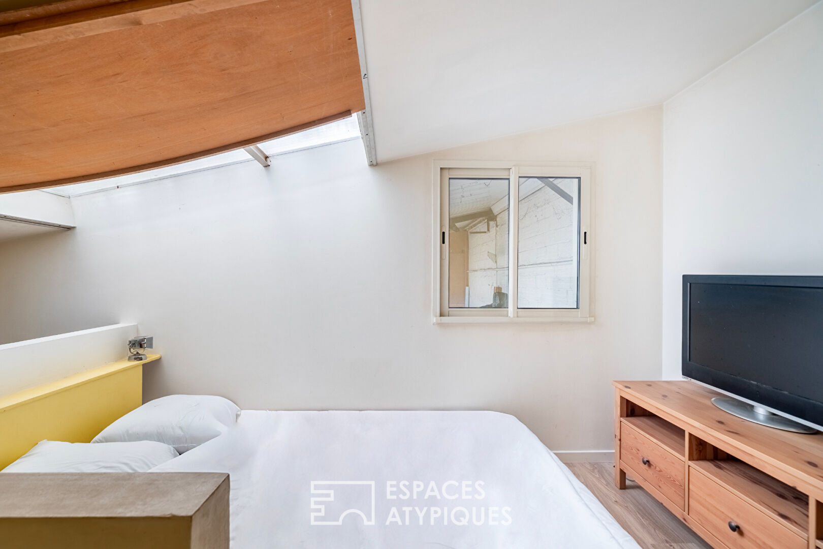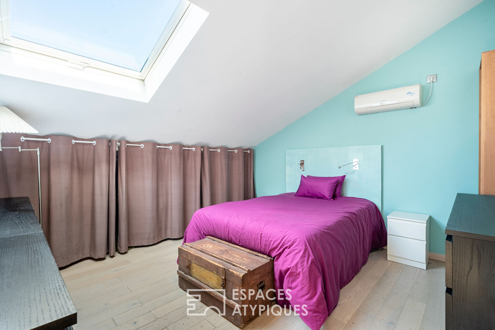 Au coeur du quartier résidentiel du Petit Drancy, à proximité immédiate des commodités, cette maison développe 138 m² habitables sur une parcelle de 343 m². Ancienne menuiserie entièrement réhabilitée, ce bien singulier à l'architecture industrielle affirmée, est organisé autour d'une cour pavé. La pièce de vie principale de 80 m² constitue le véritable coeur du projet. Déployée en double hauteur, elle bénéficie d'un bain de lumière naturelle accentué par les volumes ouverts. Au centre, le séjour s'organise autour d'un poêle à bois, créant un point chaleureux et structurant. L'espace de réception profite d'un accès direct de plain-pied à une terrasse couverte agrémentée d'un jacuzzi ainsi qu'à une cour de 66 m². Un mur habillé en brique de parement dialogue avec la structure acier apparente de la passerelle, renforçant l'identité Loft du lieu. La salle à manger, installée sous la mezzanine, prolonge naturellement le séjour et communique avec la cuisine ouverte dans une circulation fluide. Un WC indépendant complète ce niveau. A l'étage, deux chambres, un bureau et une salle d'eau avec WC composent l'espace nuit. Des surfaces complémentaires permettent l'aménagement d'un atelier ou espace polyvalent, offrant un réel potentiel d'agencement. Un atelier et un garage totalisant 119 m² ainsi qu'une dépendance de 49 m² complètent l'ensemble. Accessibles depuis la cour mais également reliés à l'habitation par un couloir intérieur discret, ces volumes demeurent indépendants des espaces de vie principaux, autorisant un usage professionnel, artistique ou autonome. L'esprit résolument loft, les volumes généreux et la modularité des espaces composent un lieu de vie singulier, rare sur le secteur. RER B Gare de Drancy : à 4 Km Future Ligne 15 - Grand Paris Express - Gare de Drancy / Bobigny : 950 mètres Bus 146, 145 (Arrêt Danton) : à 9 minutes à pied Aéroport Roissy CDG : à 20 Km CLASSE ENERGIE : C / CLASSE CLIMAT : A Montant moyen estimé des dépenses annuelles d'énergie pour un usage standard, indexées aux années 2021, 2022, 2023 : entre 1 530 euros et 2 150 euros (abonnement compris). Les informations sur les risques auxquels ce bien est exposé sont disponibles sur le site Géorisques : https://www.georisques.gouv.fr Contact : Frédéric GROULT EI - 06 09 32 90 87 RSAC : 899 150 254 Bobigny Frédéric GROULT (EI) Agent Commercial - Numéro RSAC : 899 150 254 - BOBIGNY.