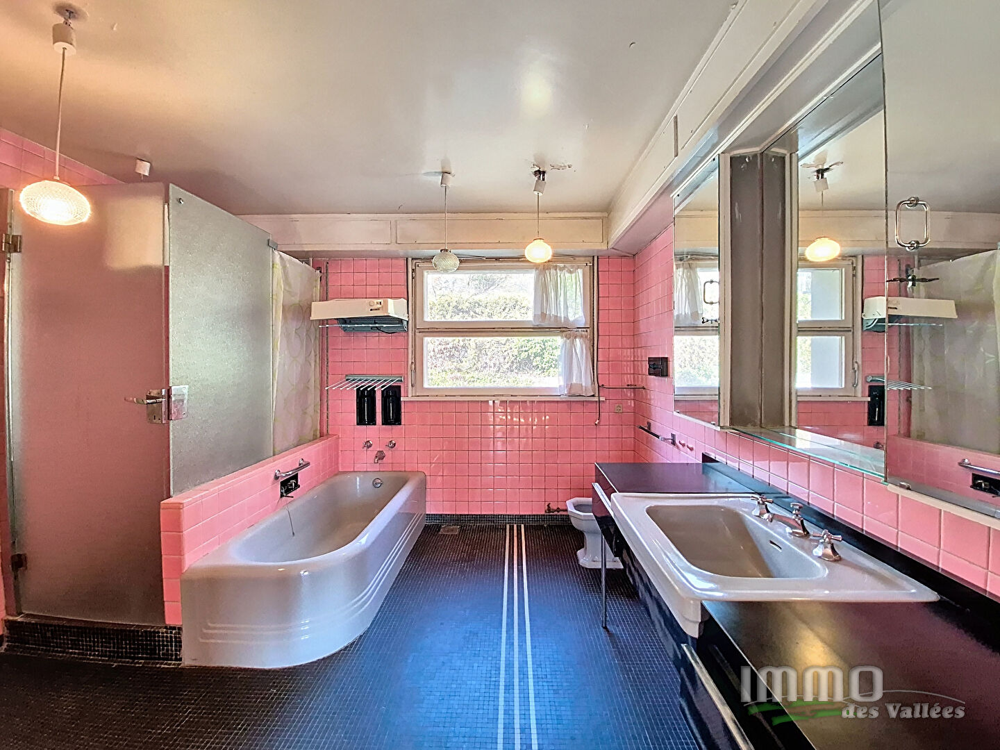 Immo des Vallées vous propose en exclusivité cette maison d'architecte sur sous-sol, construite en 1958. Cette demeure se compose, au rez-de-chaussée, d'une entrée desservant un couloir agrémenté d'un mur en pierre menant à un salon d'hiver. Vous y trouverez également une chambre avec point d'eau, un WC indépendant, un espace séjour lumineux ouvert sur une terrasse, une chambre supplémentaire, un bureau, une cuisine, un cellier ainsi qu'une salle à manger. A l'étage, une mezzanine dessert deux salles de bains, un WC, un dressing et trois chambres, dont une avec accès à une terrasse offrant une vue dégagée sur la vallée et disposant de son propre dressing. D'importants travaux de rafraîchissement sont à prévoir, offrant un beau potentiel de rénovation pour cette propriété au caractère architectural affirmé. -Exclusivité Immo des Vallées-- Les informations sur les risques auxquels ce bien est exposé sont disponibles sur le site Géorisques : www.georisques.gouv.fr Pour plus de renseignements, contactez nous. Plus de photos et d'informations sur : www.immodesvallees.com (5.45 % honoraires TTC à la charge de l'acquéreur.)