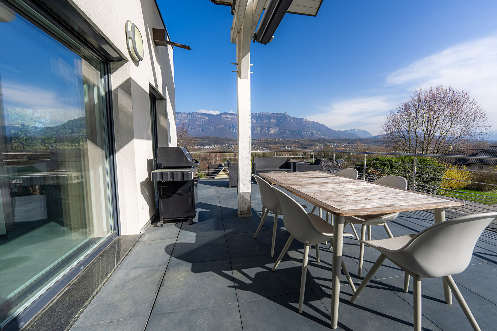 Dans un environnement calme et recherché, proche de toutes les commodités (écoles, bus, commerces), découvrez cette belle maison contemporaine de 200 m² habitables, construite en 2016, implantée sur une parcelle de 2 600 m² piscinable. La maison offre une magnifique pièce de vie de plus de 70 m², baignée de lumière grâce à ses grandes ouvertures et sa triple exposition Est / Sud / Ouest. La cuisine ouverte, moderne et entièrement équipée, s'intègre parfaitement à cet espace convivial. Vous profiterez également d'un accès direct à une grande terrasse offrant une vue exceptionnelle sur le Revard et les Belledonne. Au rez-de-chaussée, vous trouverez : Une suite parentale de 26 m² avec dressing et salle d'eau Un cellier / buanderie Un WC indépendant Un accès direct au sous-sol A l'étage, une spacieuse mezzanine lumineuse dessert : 3 à 4 chambres selon vos besoins Un bureau Une salle de bain avec baignoire et douche Un WC indépendant Au niveau inférieur, un sous-sol complet offre de nombreuses possibilités : salle de sport, salle de jeux, atelier ou espace de stockage. Vous y trouverez également un double garage avec portes électriques. Un véritable atout : un T1 bis indépendant de 38 m², entièrement équipé avec entrée séparée. Sa proximité avec Technolac permet une location facile estimée à environ 750 euros par mois. Maison construite en Euromac, garantissant une excellente isolation. Prestations énergétiques de qualité : A/A Planchers chauffants mixtes base électrique/panneaux solaires Chauffe-eau thermodynamique en hiver Panneaux solaires pour l'été Une maison idéale pour une famille, offrant volume, luminosité, confort moderne et potentiel locatif, dans un cadre naturel privilégié. Alexandra MOUKTARIAN (EI) Agent Commercial - Numéro RSAC : 904 528 296 - CHAMBERY.