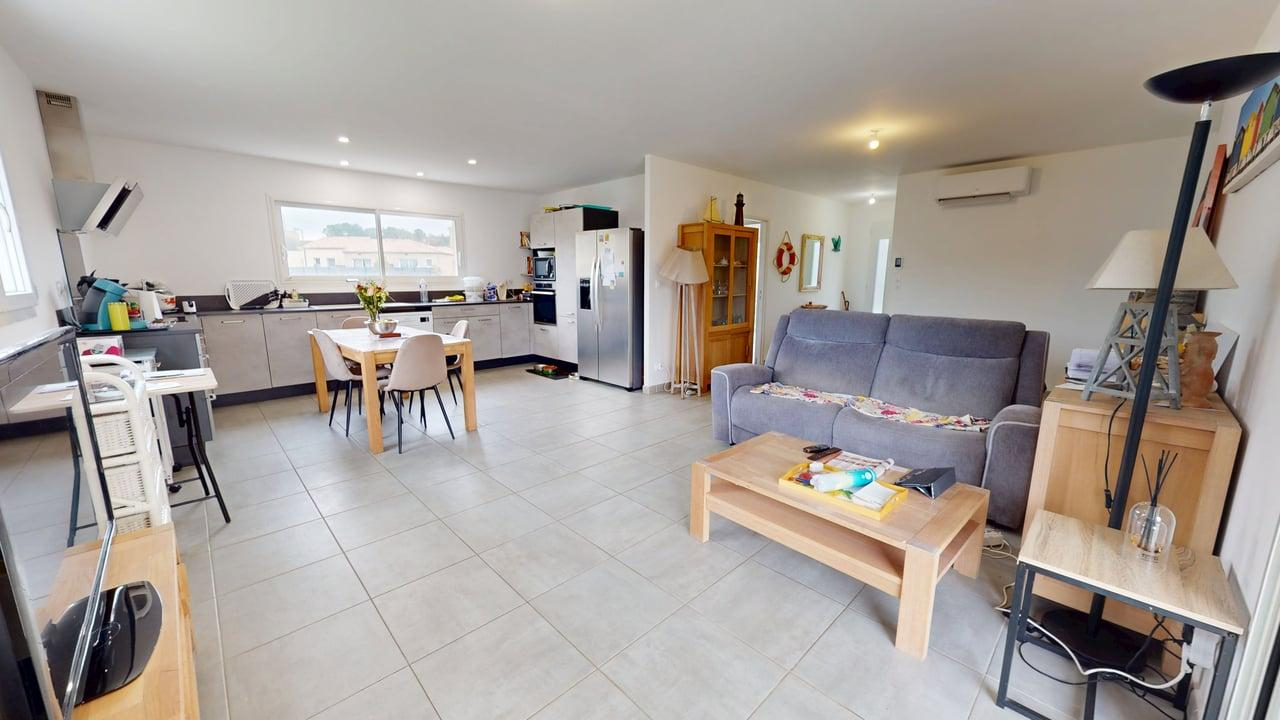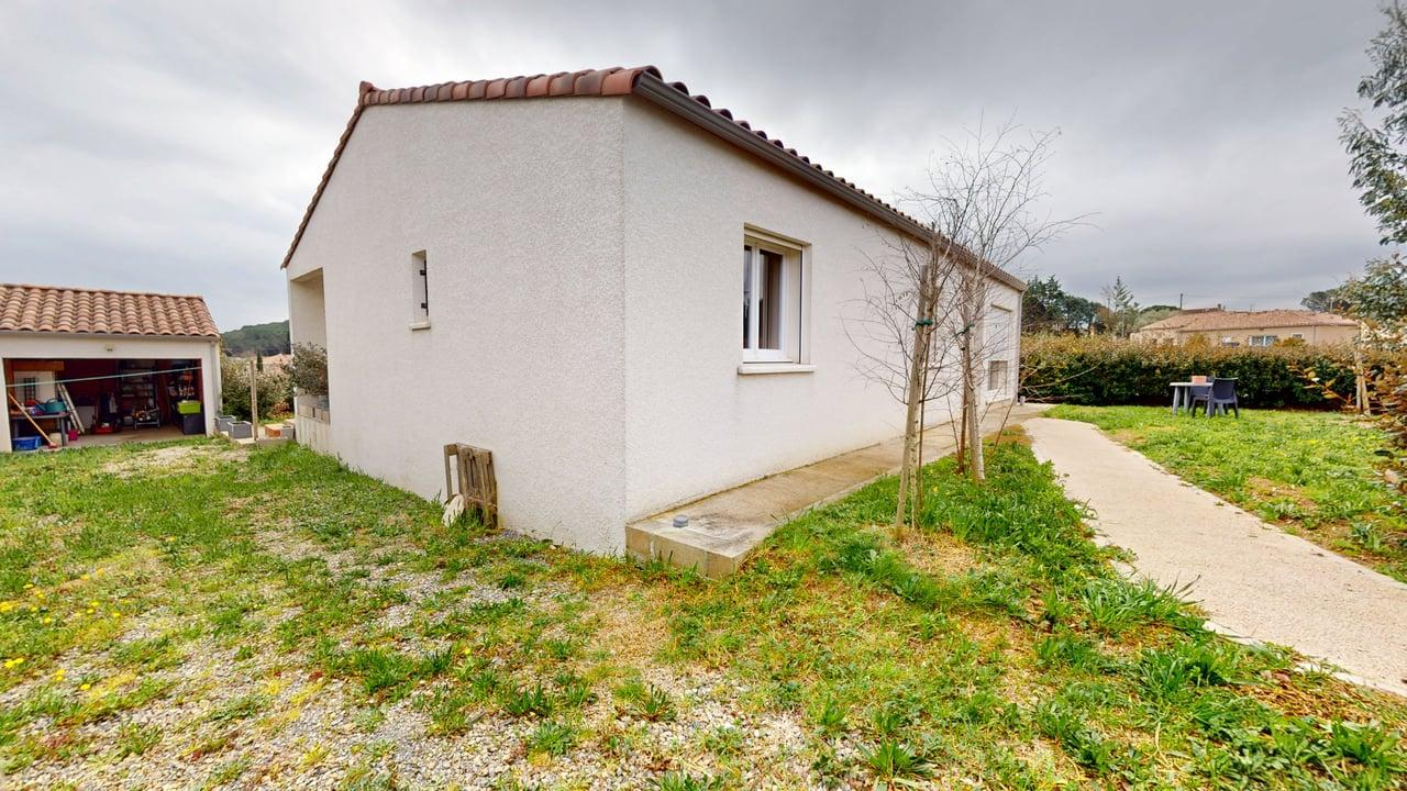 En exclusivité à Villedubert, dans un environnement calme et agréable, découvrez cette maison 4 faces construite en 2021 selon la norme RT 2012, offrant environ 108 m² habitables sur une parcelle de 700 m². Dès l'entrée, la maison séduit par sa distribution fonctionnelle et sa luminosité. La pièce de vie accueille un séjour ouvert sur une cuisine aménagée et équipée, créant un espace convivial parfaitement adapté à la vie quotidienne. Le séjour, équipé d'une climatisation réversible, s'ouvre directement sur une terrasse couverte, apportant une belle continuité entre intérieur et extérieur. Un cellier-buanderie avec chauffe-eau thermodynamique vient compléter cet espace. La partie nuit se compose de quatre chambres, d'une salle d'eau, d'un WC indépendant ainsi que d'un garage de 17 m². Une place de stationnement privative est également disponible devant la propriété. A l'extérieur, le jardin bénéficie d'un arrosage intégré, offrant un entretien facilité. Classée A/A, cette maison récente présente de très bonnes performances énergétiques et bénéficie encore de la garantie décennale ainsi que de l'assurance dommages-ouvrage. Un bien récent, confortable et bien situé, idéal pour une famille souhaitant s'installer sans travaux. Une visite virtuelle est disponible pour découvrir l'ensemble du bien avant une visite sur place. Contactez-nous dès maintenant pour plus d'informations.