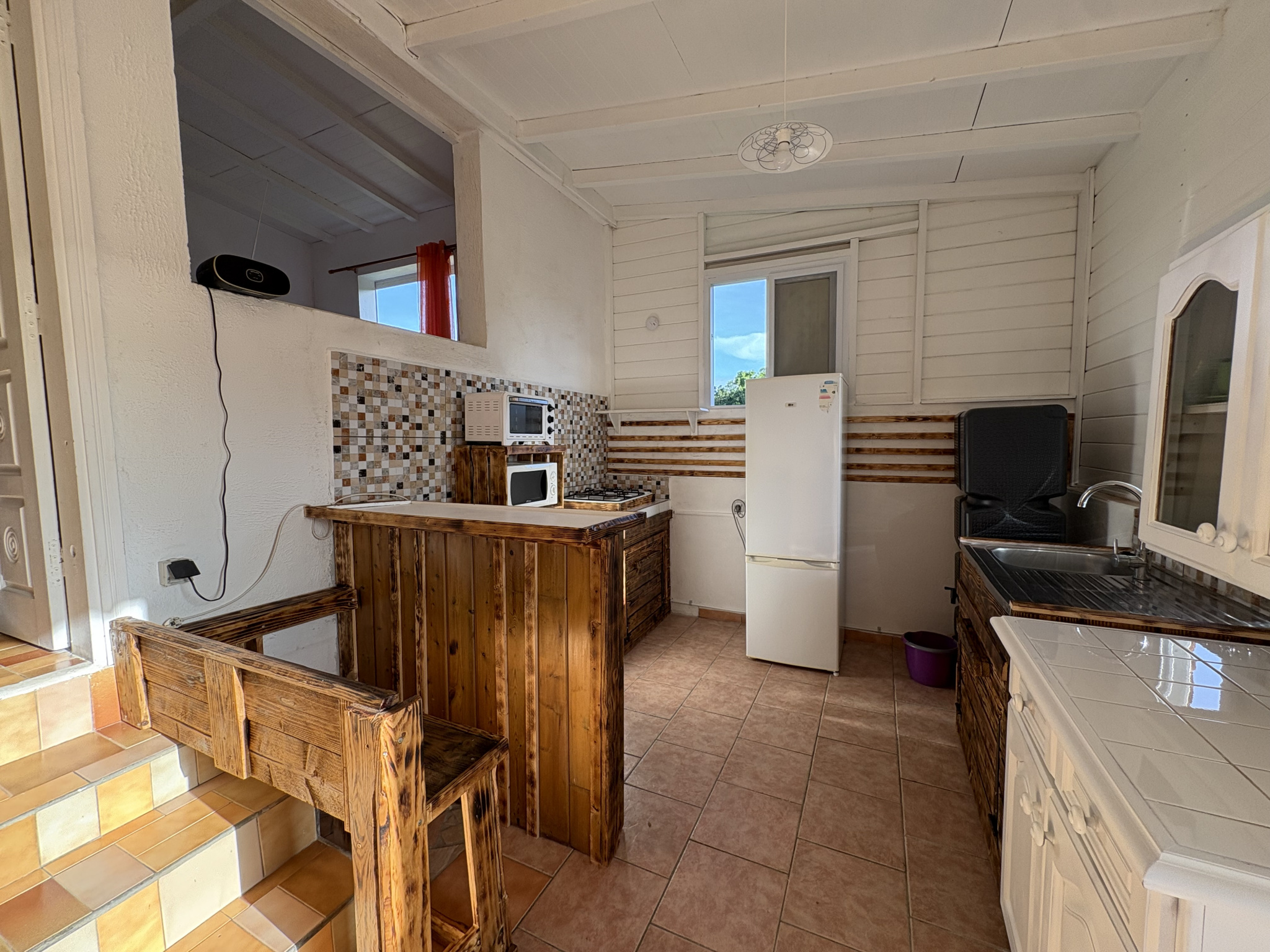 Venez découvrir cet appartement T2 de 43m2 entièrement meublé situé sur une propriété sécurisée avec caméra de surveillance et portail motorisé dans un environnement calme sur le secteur de Labrousse à seulement quelques minutes des grands axes, université, ZI de Jarry, plages... Il se compose d'une cuisine entièrement équipée (réfrigérateur, four, micro-ondes, citerne d'eau..), un dégagement donnant accès à un séjour lumineux, une chambre avec une super vue dégagée sur la campagne, une salle d'eau avec WC, une petite terrasse. Vous profiterez d'un emplacement de parking. Le loyer s'élève à 800EUR comprenant l'électricité et l'eau. Un mois de dépôt de garantie. DISPONIBLE DEBUT AVRIL ! Contactez nous au plus vite pour votre visite !