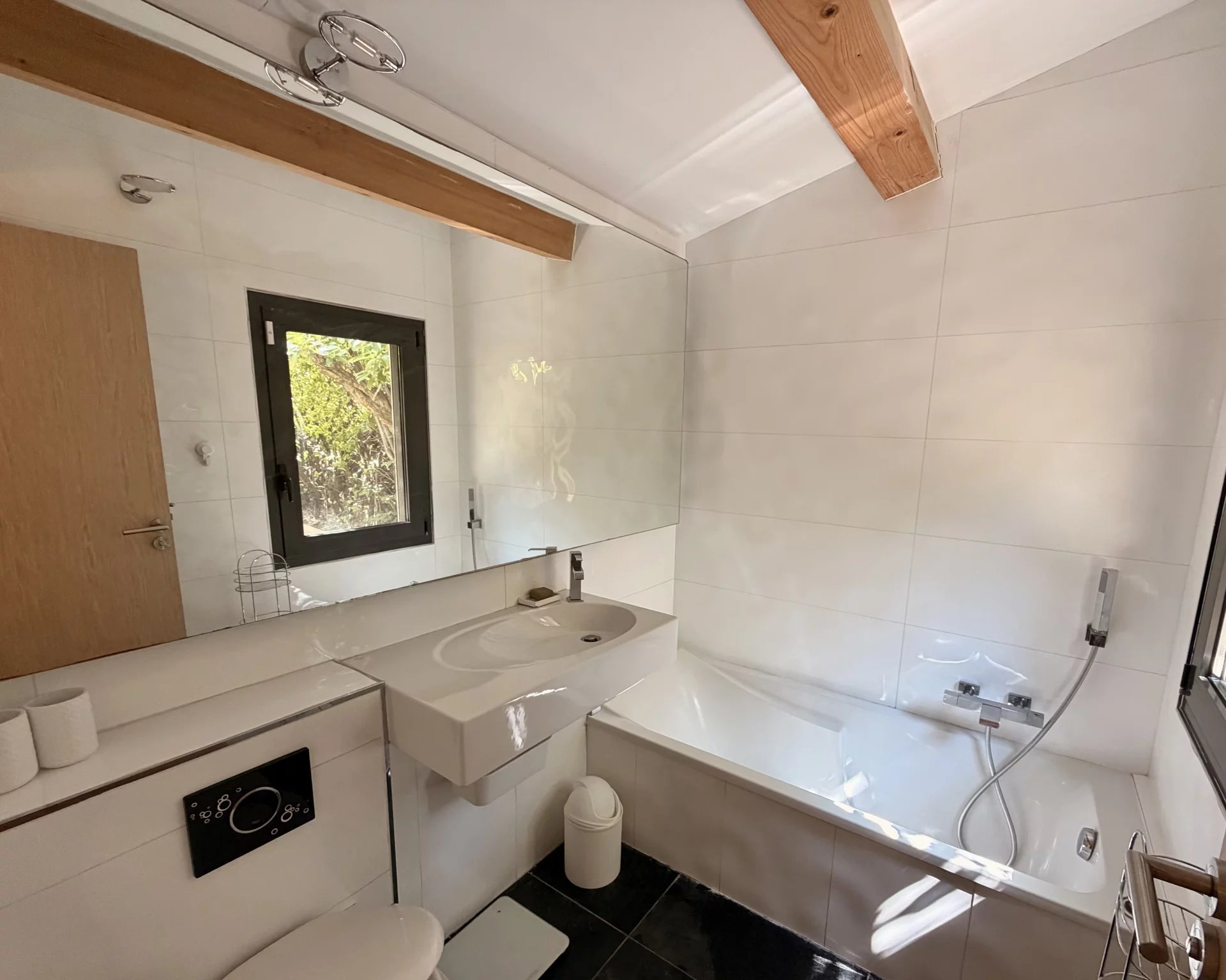 La décoration est sobre et raffinée. Elle se mélange ameublement contemporain