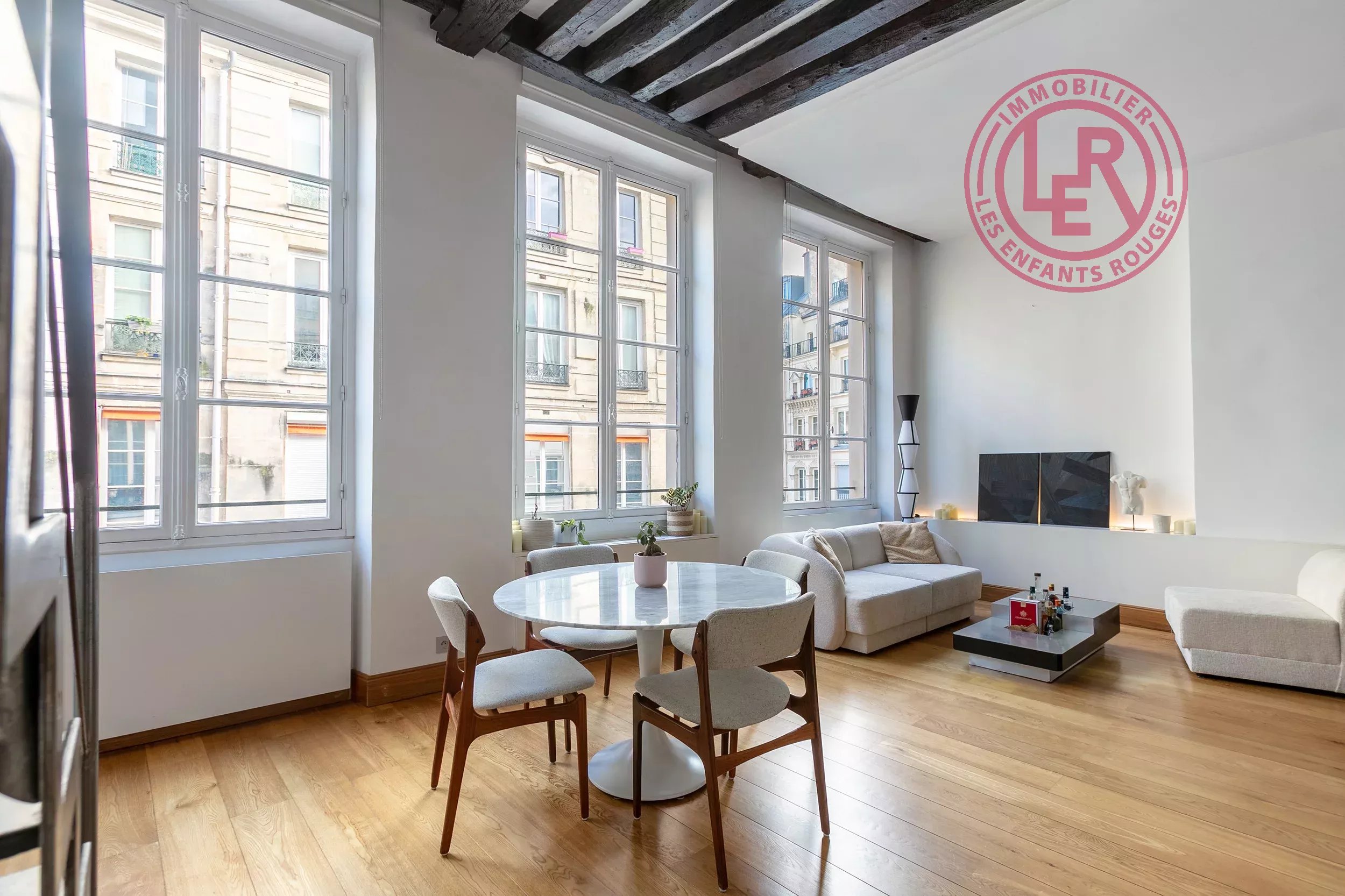 Exclusivité - Dans le coeur historique de Paris, au sein d'un immeuble bâti en 1600, l'Agence des Enfants Rouges a le plaisir de vous proposer cet appartement traversant de 61,9m2 au sol (54,9m2 Carrez) entièrement rénové par architecte. Situé au 2ème étage, il se compose d'une entrée, un séjour de 41m2 avec cuisine ouverte, une chambre sur cour, une mezzanine de 6m2, une salle d'eau et des toilettes séparés. Prestations : Luminosité, Calme, Hauteur sous plafond 3m70, Climatisation, Parquet massif, Poutres apparentes, Cuisine équipée, DPE D Appartement clé en main idéalement situé aux prestations recherchées Les informations sur les risques auxquels ce bien est exposé sont disponibles sur le site Géorisques : www.georisques.gouv.fr