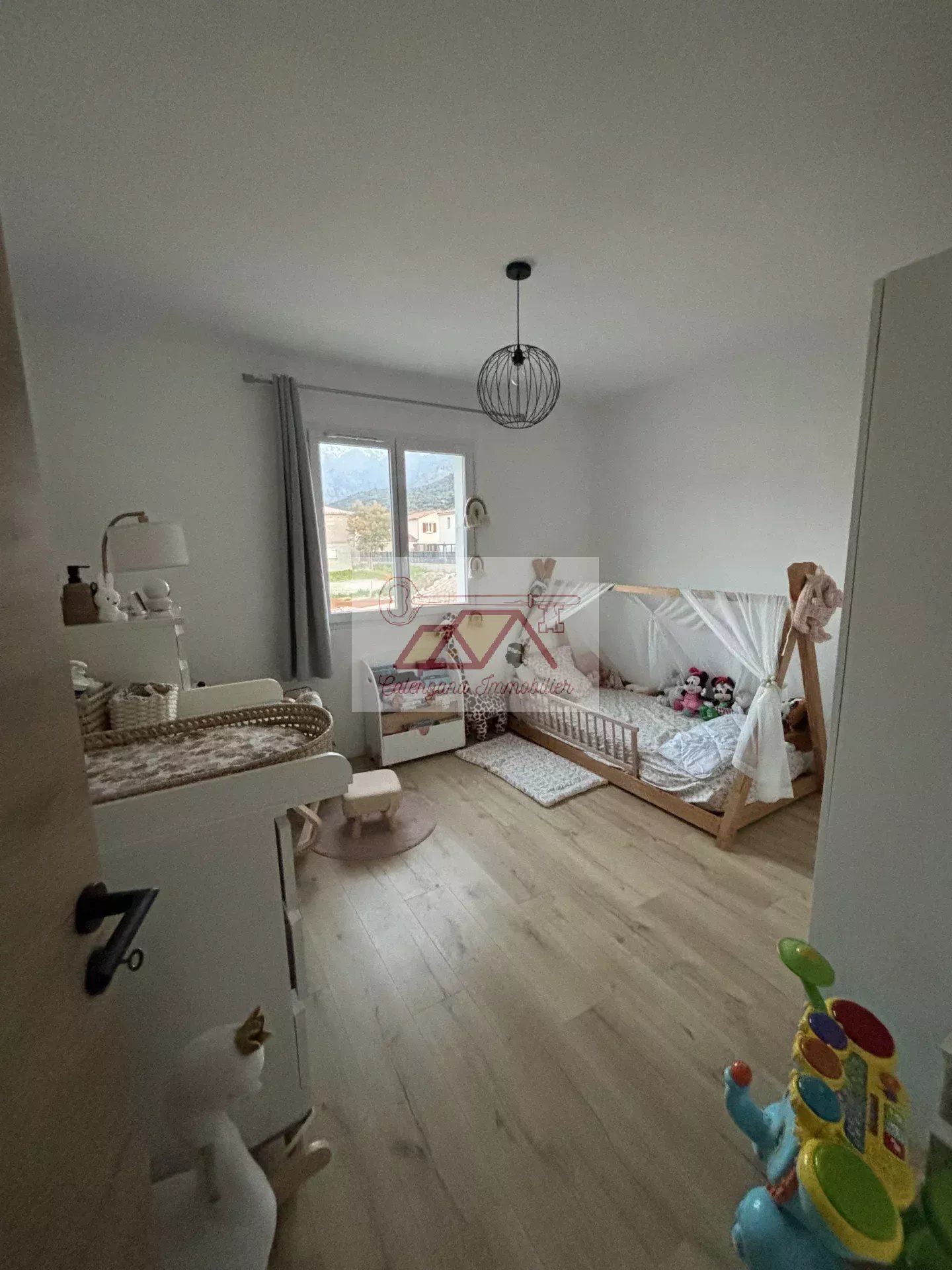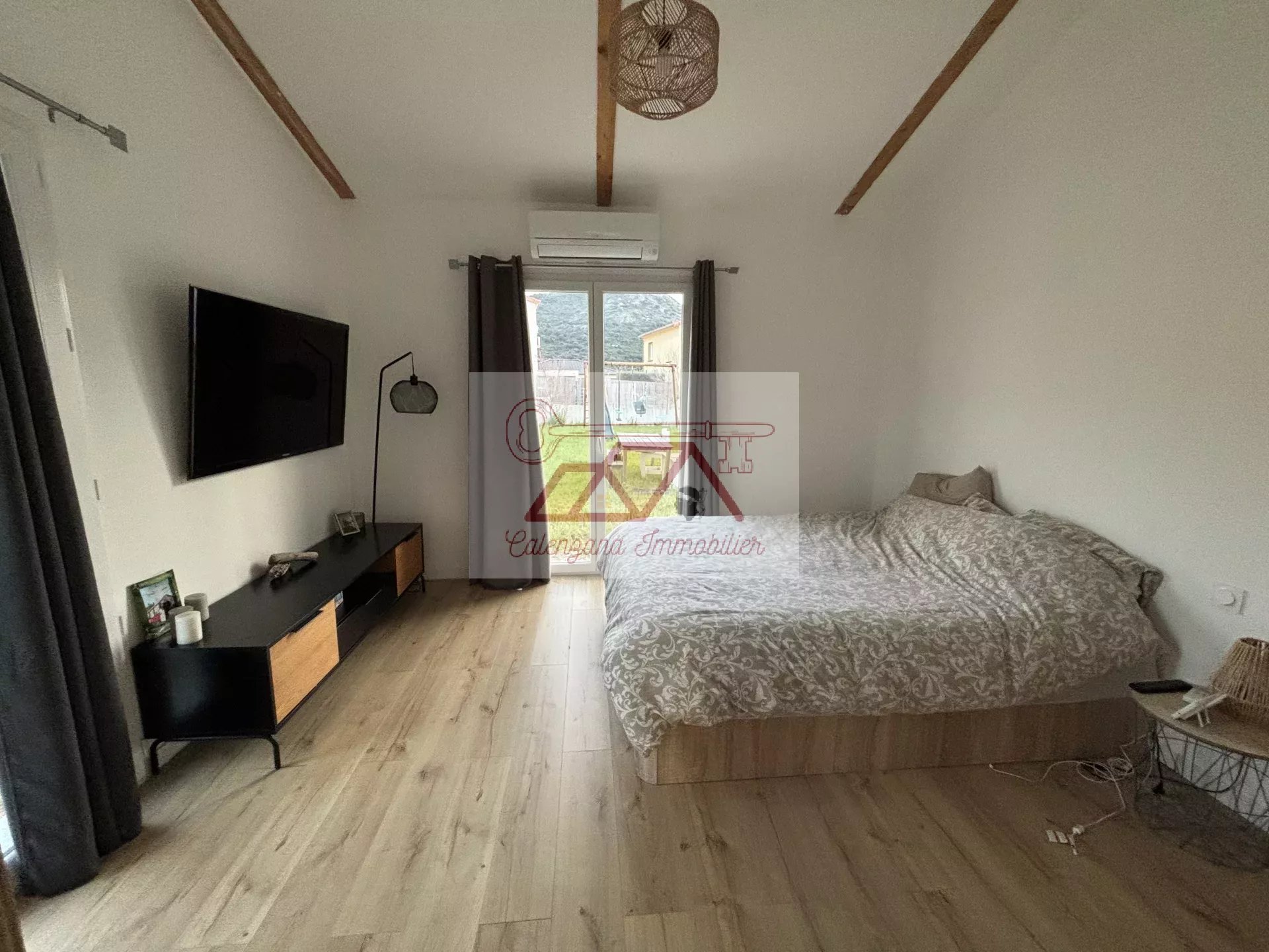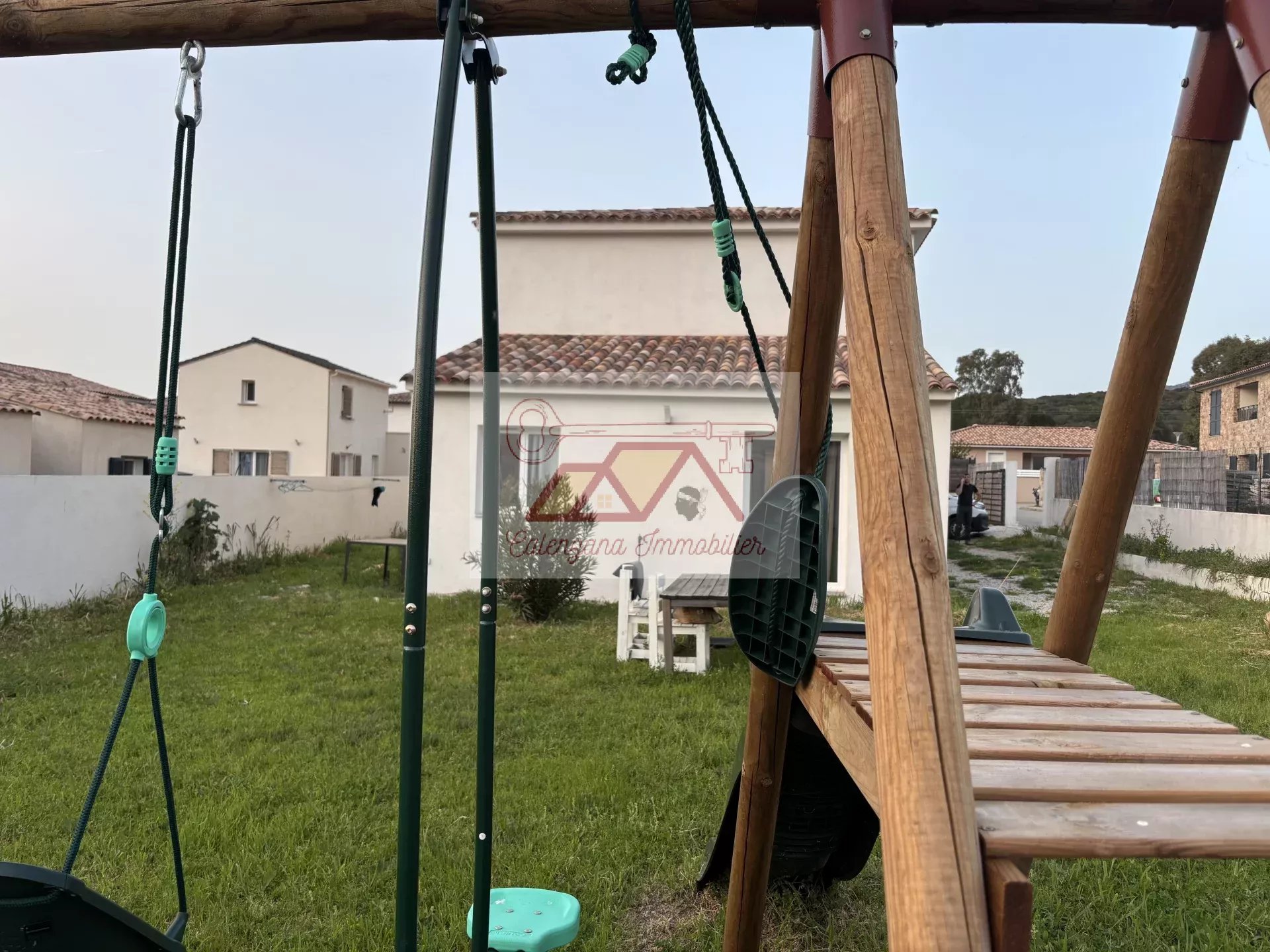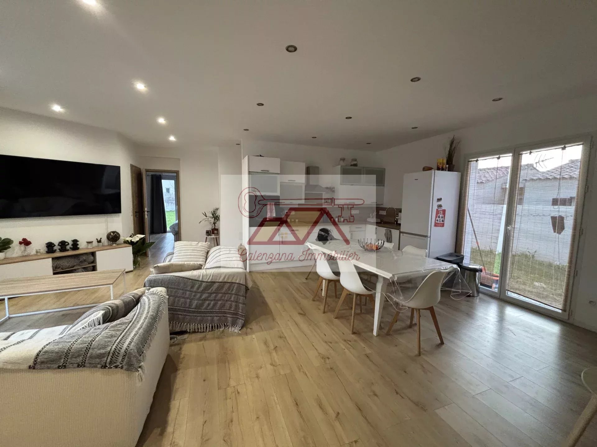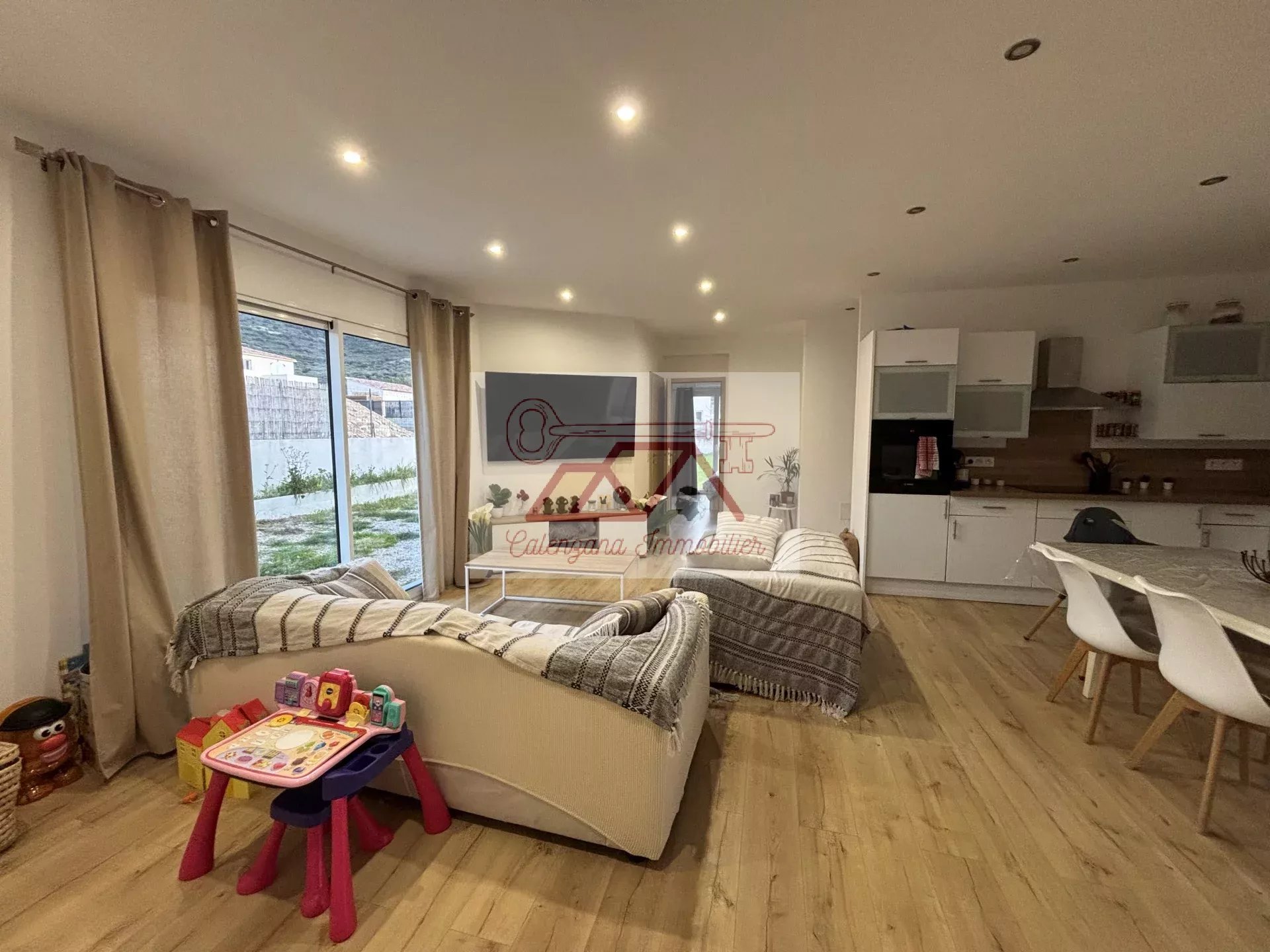 Découvrez cette magnifique villa construite en 2020 d'une surface habitable d'environ 130 m², nichée dans un lotissement paisible entre Calvi et Calenzana, sur un terrain clôturé de 590 m².