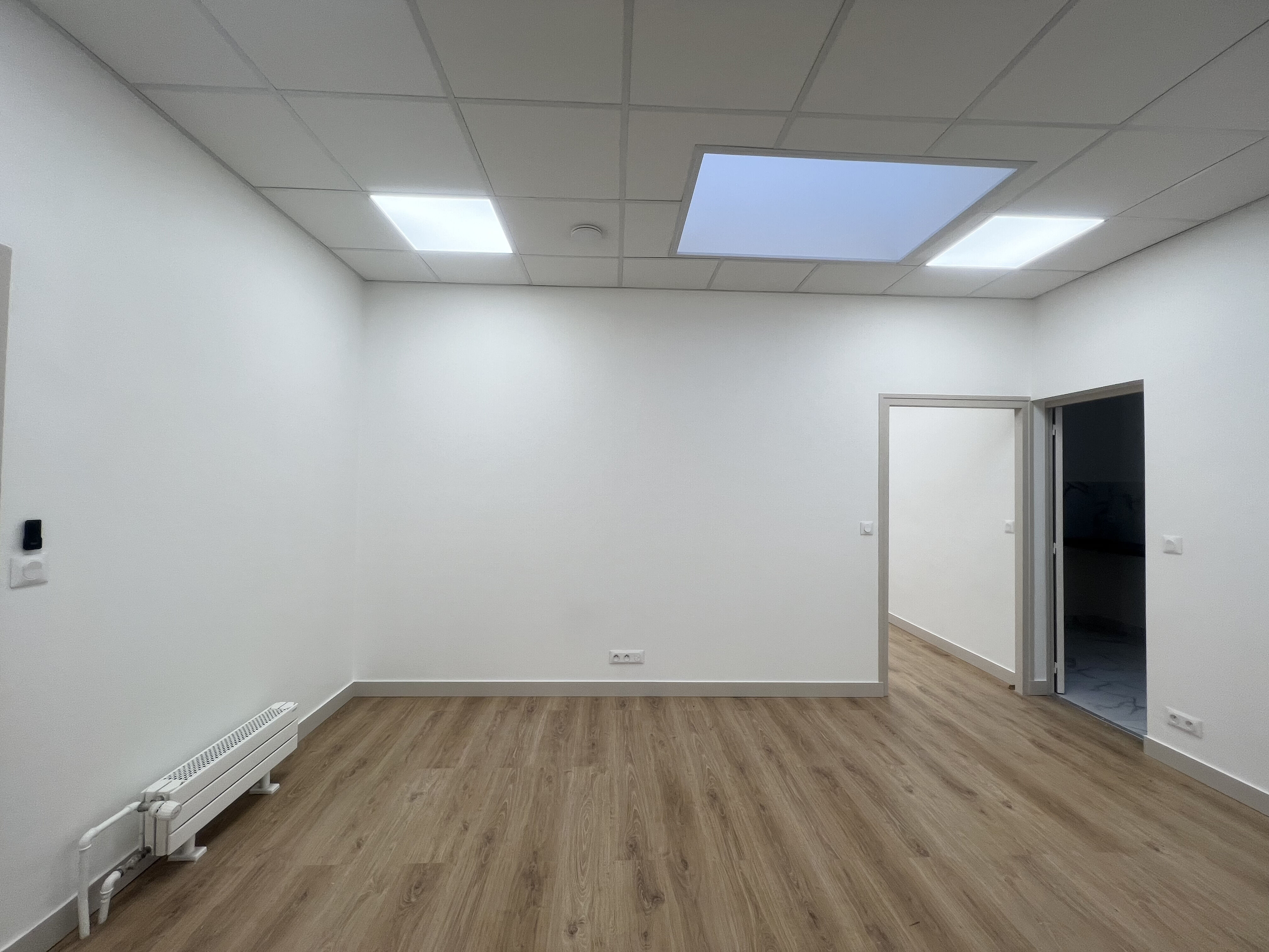 Au rez-de-chaussée, comprenant : bureau d'accueil, bureau secrétariat, trois bureaux avec accès indépendant, une cuisine / salle de repas, placards et deux WC séparés avec lavabo.
