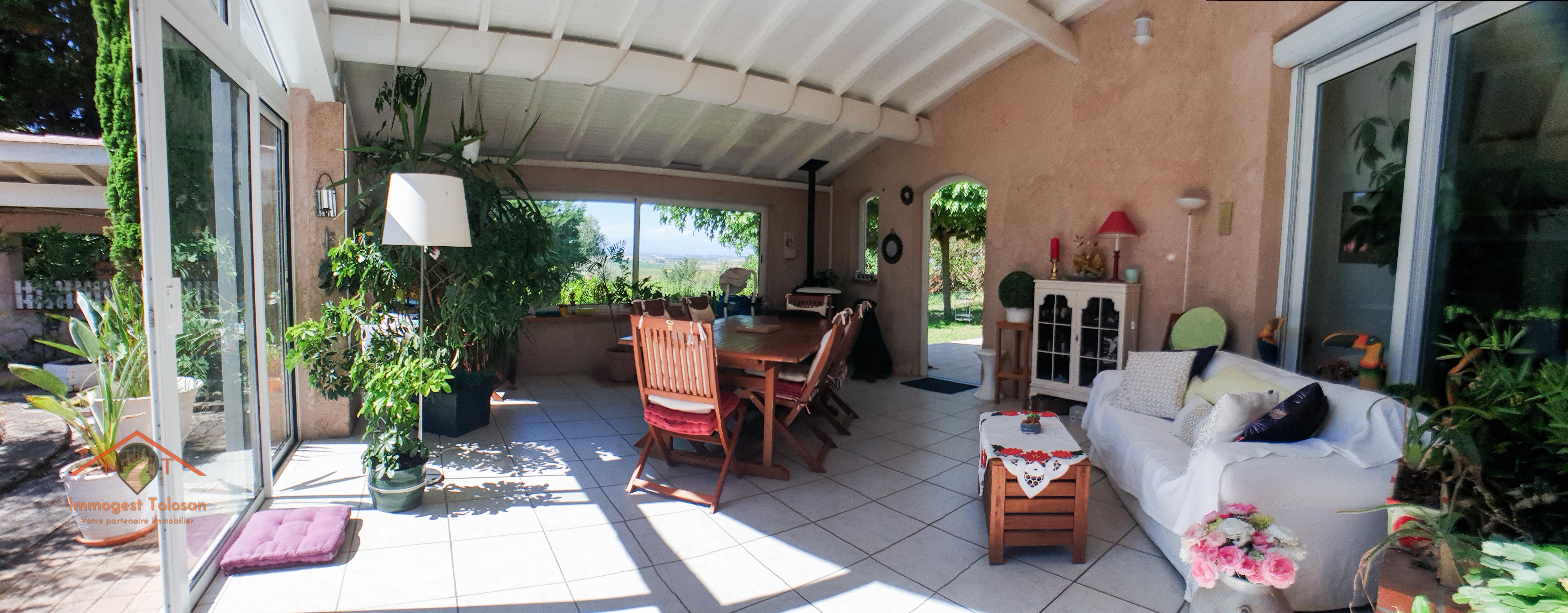 o Le 'Plus' Exceptionnel : Une véranda chauffée, véritable trait d'union entre l'intérieur et l'extérieur, offrant une vue sublime sur le patio, la piscine et, en toile de fond, la majestueuse chaîne des Pyrénées.