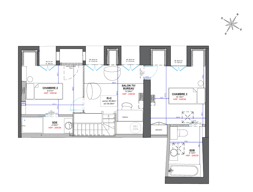 3 chambres + bureau - Duplex aux derniers étages avec balcon - Projet sur mesure