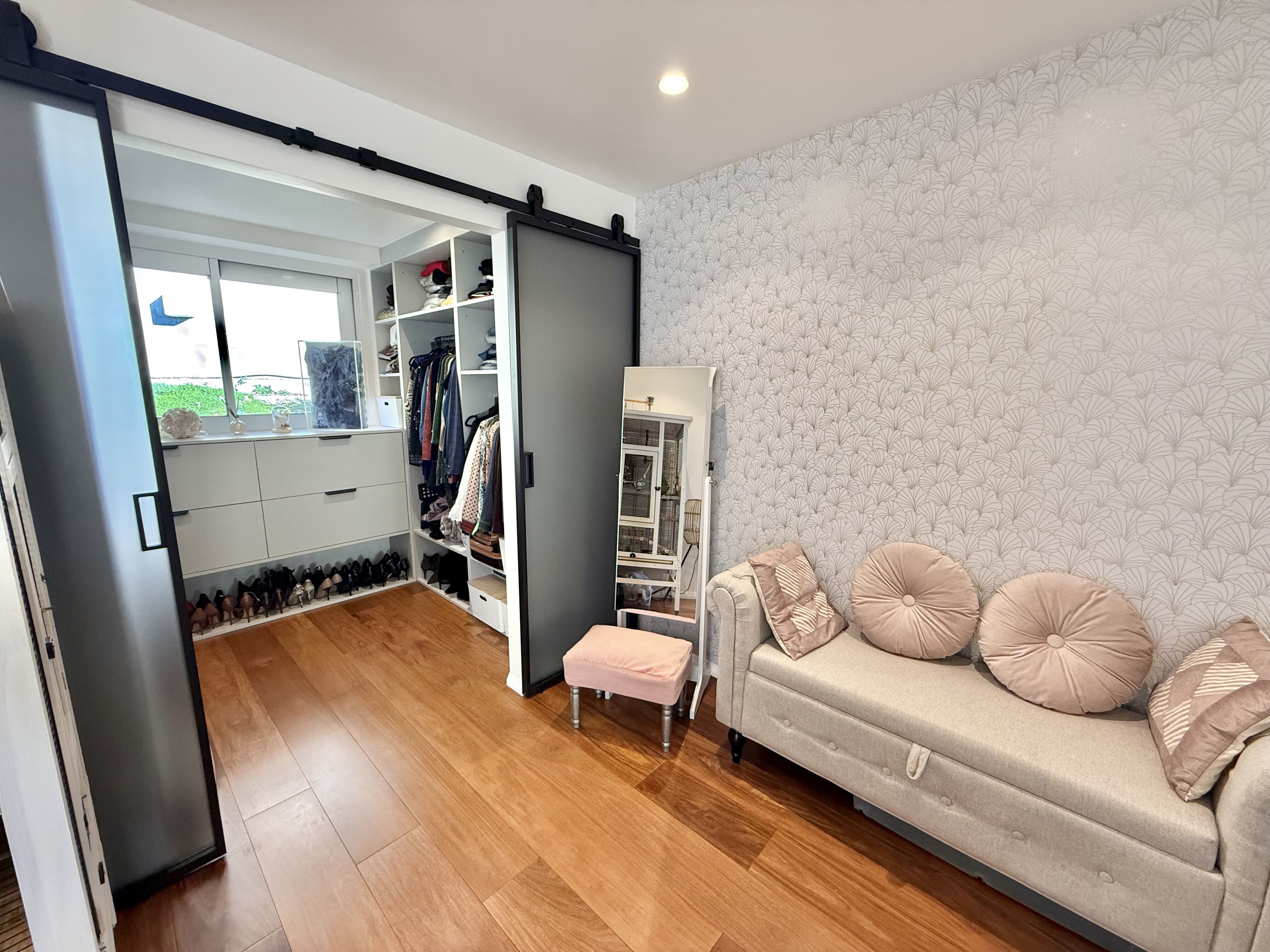 Il se compose comme suit : grand séjour avec cuisine américaine sur mesure entièrement équipée, cheminée fonctionnelle, terrasse de 37 m², une salle de douche avec wc, une chambre en suite parentale avec baignoire, wc et balcon, une chambre. De nombreux rangements.