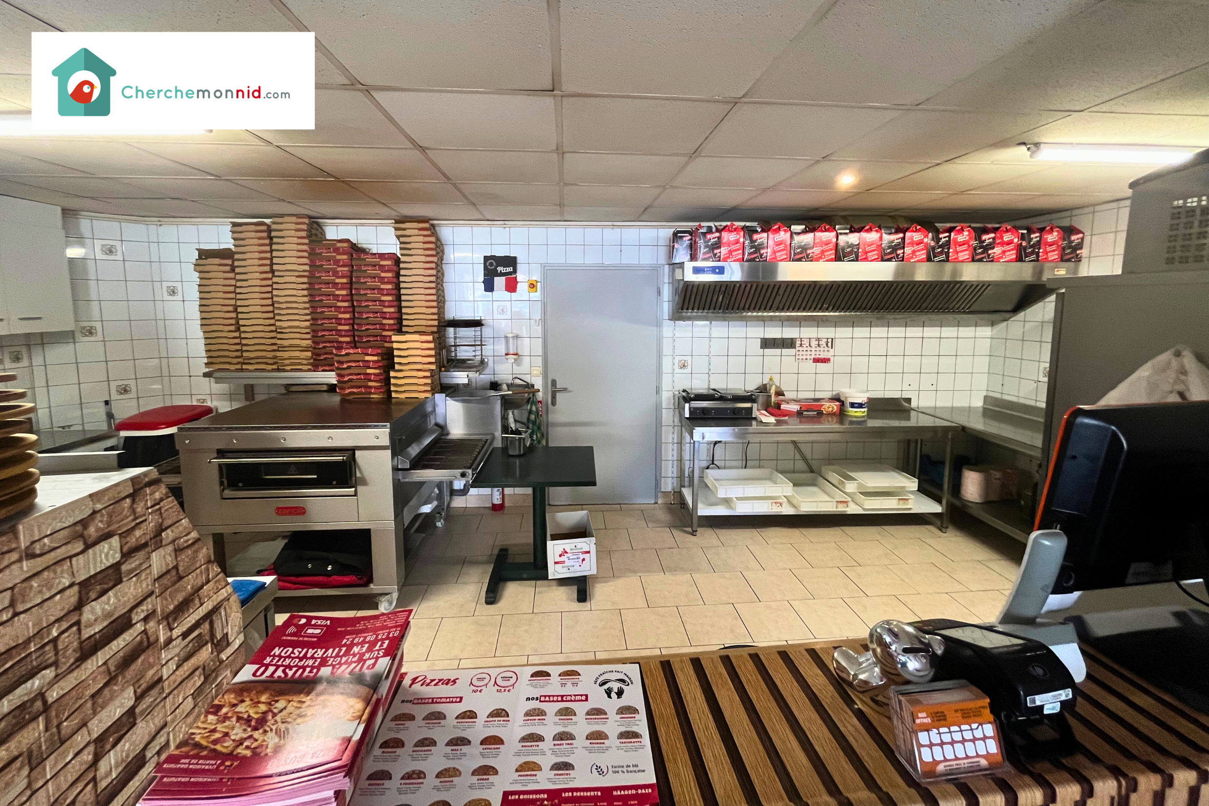 Au rez-de-chaussée, un local commercial de 70 m², entièrement équipé, actuellement loué à une pizzeria avec bail 3 / 6/9 ans jusqu'en 2034, loyer 560euros / mois.
