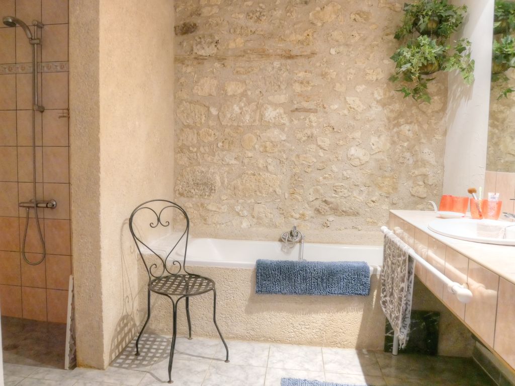 La piscine, les arbres fruitiers, le puits et la qualité des matériaux choisi pour la rénovation rendent l'ensemble fonctionnel et élégant.