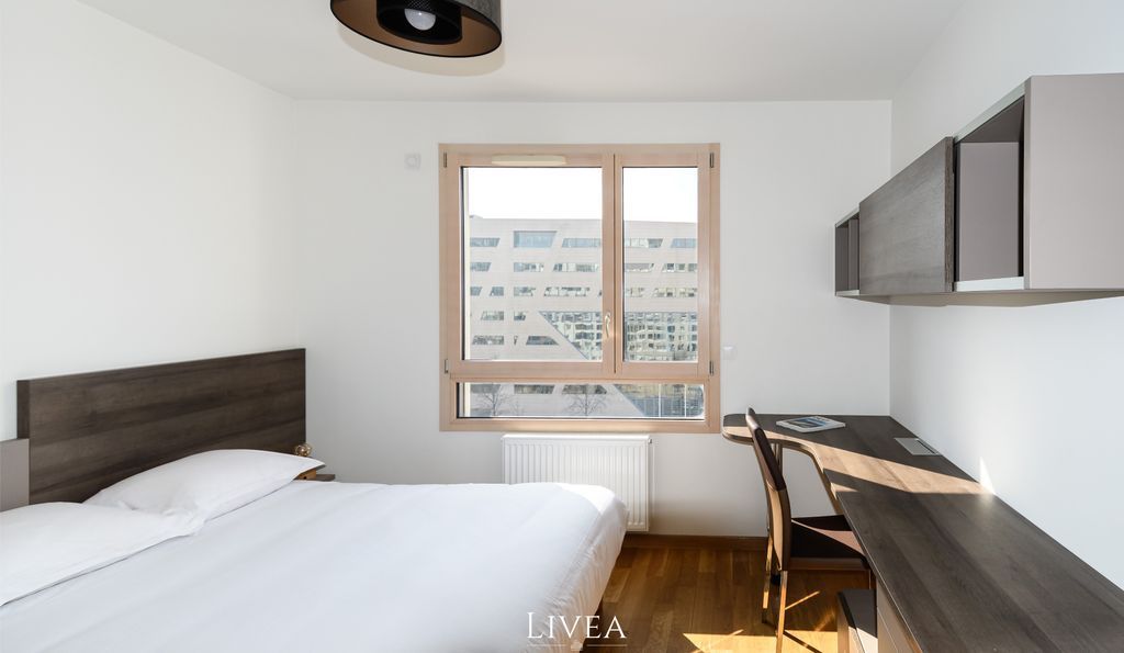 Bel appartement meublé T2 de 44 m² avec services et garage, au 6ème étage d'une résidence de standing, destiné à la location moyenne durée. Formule tout inclus comprenant : électricité et eau (forfait avec régularisation en cas de dépassement), charges diverses, assurance (effets personnels non assurés), internet par fibre optique, mobilier, linge de lit et de toilette, ménage et changement du linge une fois par mois, garage.