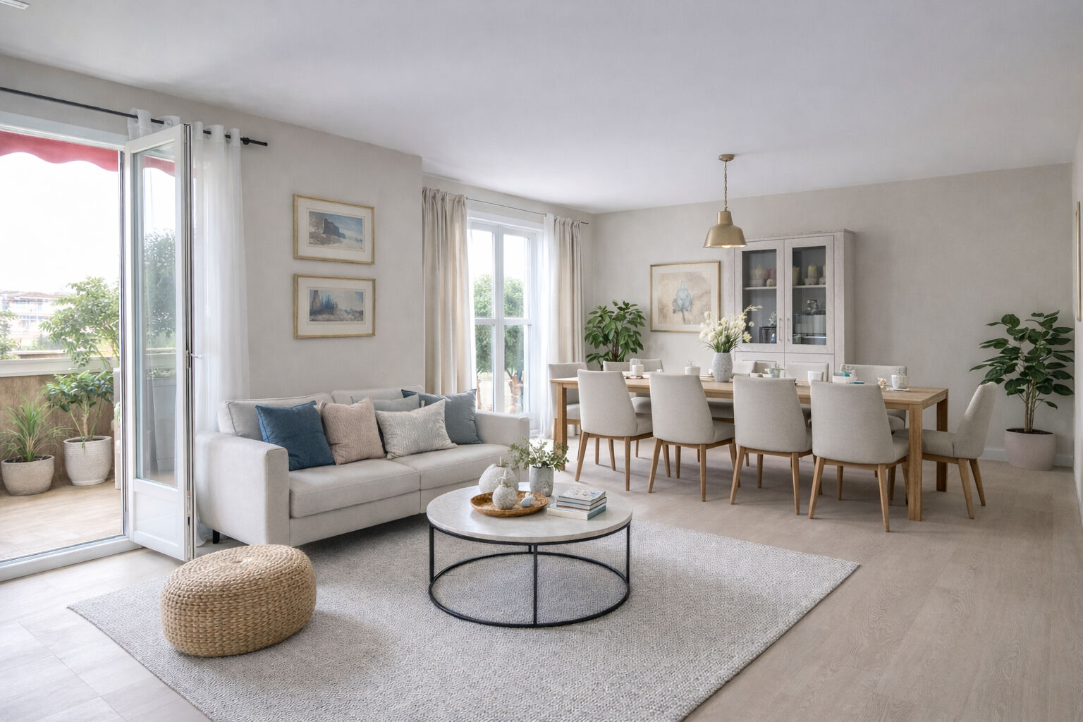 2 photos ci - jointes vous proposent un relooking virtuel du salon / salle à manger et de la cuisine.