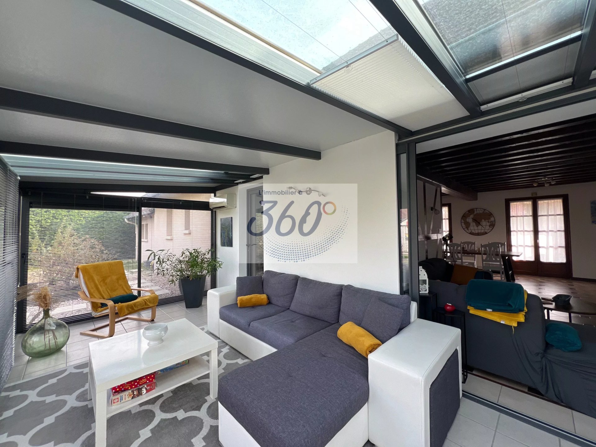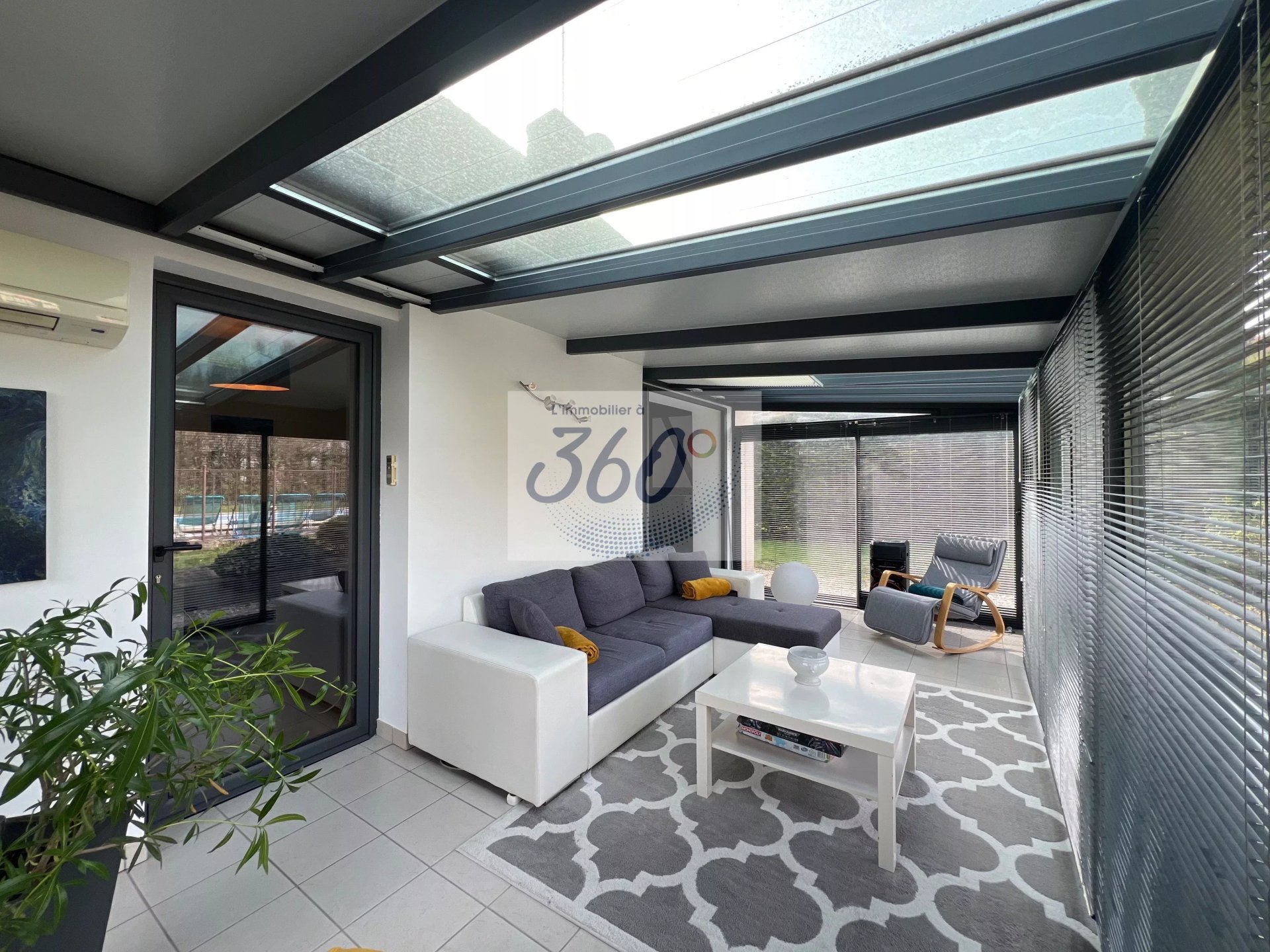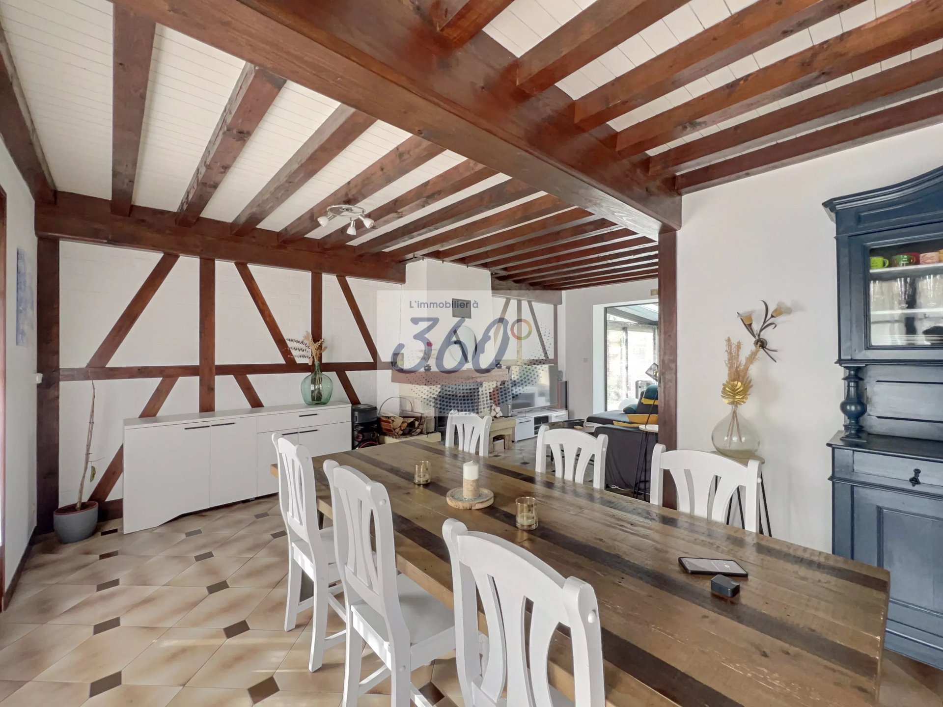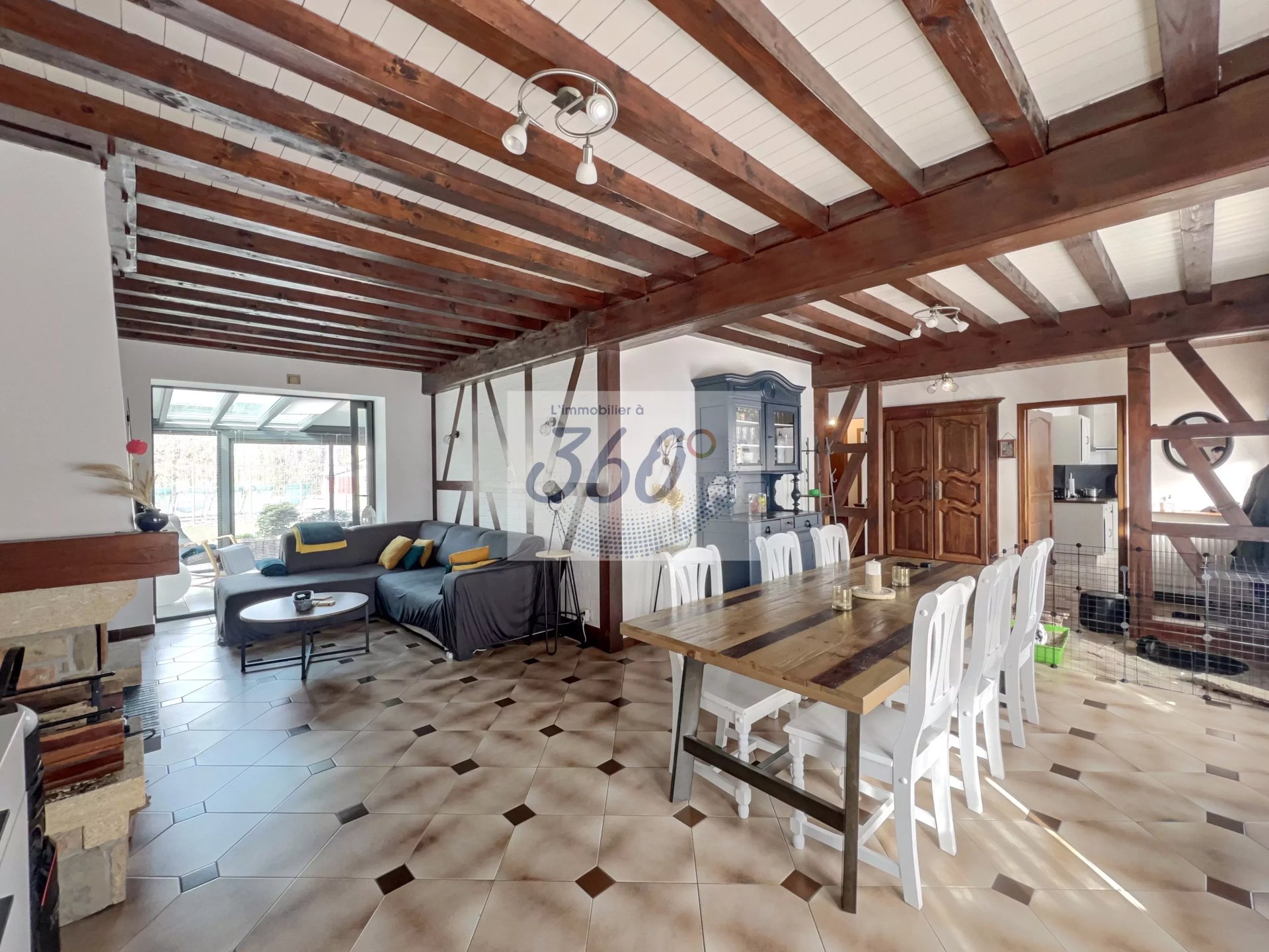 Au rez-de-chaussée, vous découvrirez une agréable pièce de vie lumineuse équipée d'un insert bois, offrant un espace chaleureux et convivial. Elle s'ouvre sur une superbe véranda lumineuse, climatisée par une climatisation réversible, véritable prolongement de la maison pour profiter de chaque saison.