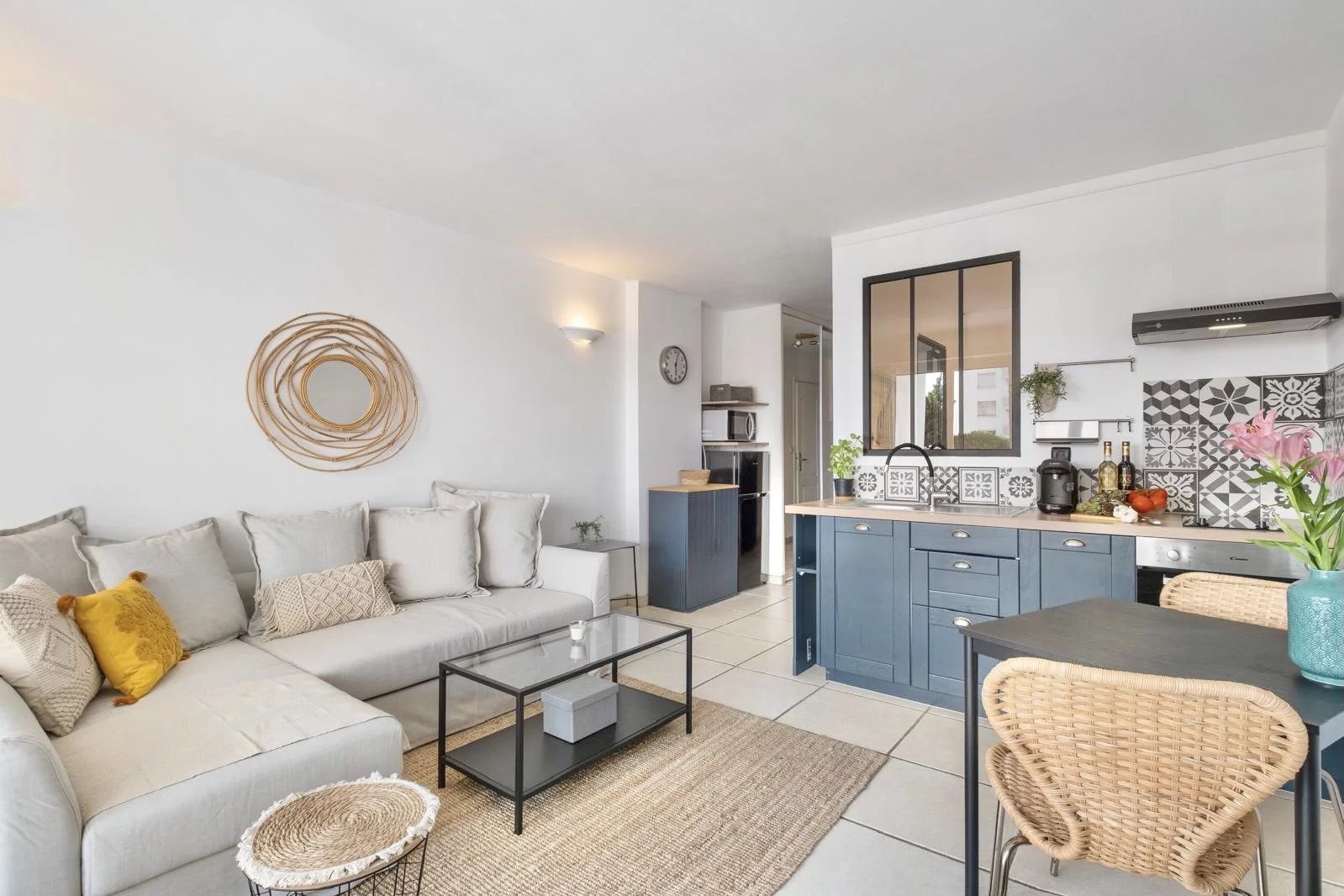 Magnifique deux pièces face aux plages d'Antibes Juan-les-Pins, l'appartement est vendu meublé, situé dans une résidence fermée avec places de parking collective.s