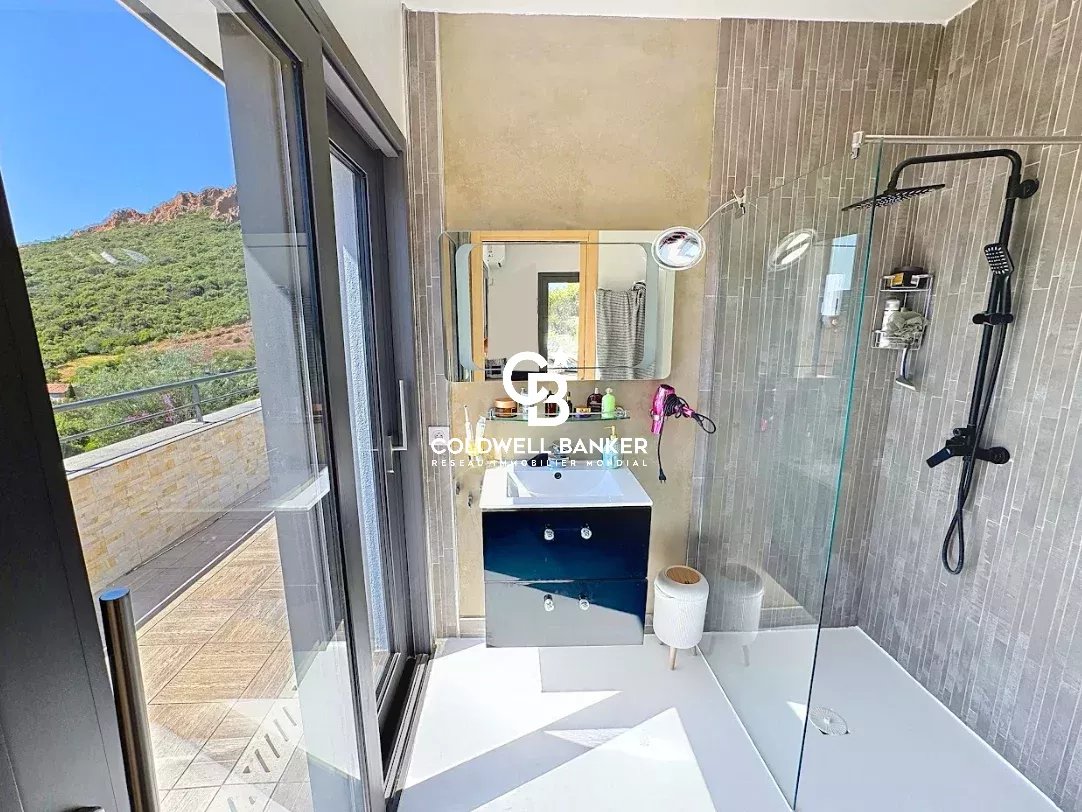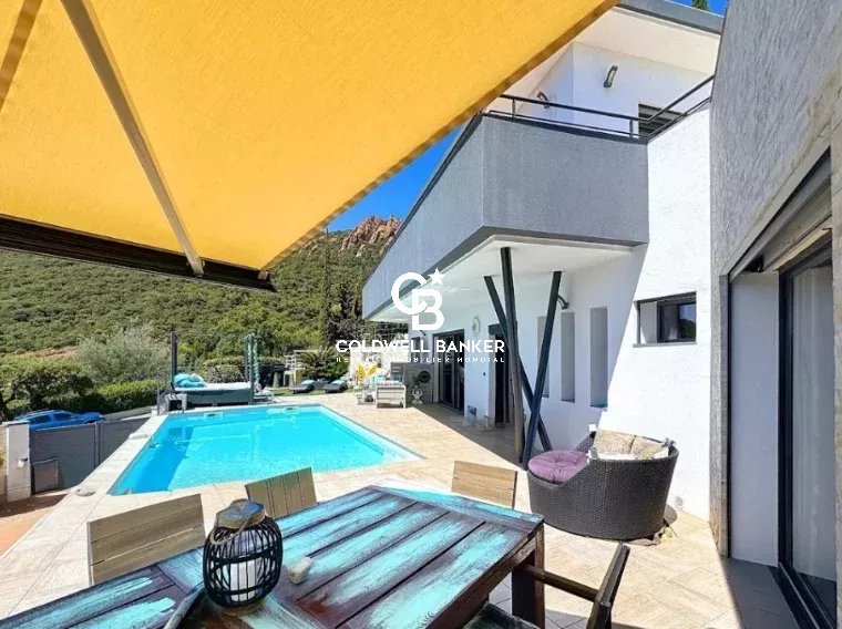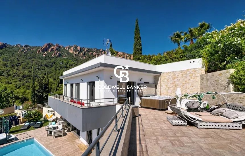 Nichée à l’orée d’un massif classé, cette propriété d’architecte de 2012 s’impose comme un manifeste de l’art de vivre contemporain. Son architecture organique, profondément ancrée dans la roche, résonne avec la minéralité saisissante de l’Esterel. Véritable observatoire privilégié, la villa scénographie le paysage, invitant la puissance du rouge et l'immensité de l’azur au cœur même de votre intimité. Volumes et matières en Apesanteur Sous des volumes aériens, les espaces de vie orchestrent un dialogue entre acier et pierre. Le salon, réchauffé par une cheminée à l’éthanol, révèle une décoration aux accents tribaux sophistiqués, où la chaleur du chêne rencontre l'audace de textures instinctives. Dans ce prolongement, la cuisine d'architecte et son îlot épuré invitent à une convivialité raffinée, tandis qu'un bureau et un garage fonctionnel complètent le niveau. Au cœur de la réception, l’escalier suspendu semble flotter, mariant la force de l’acier à la légèreté du bois pour guider vos pas vers l’étage. Les espaces de vie s’ouvrent alors de plain-pied sur 200 m² de terrasses, prolongeant le salon vers une piscine aux lignes cristallines (5x8m). Cette circulation sans rupture offre une immersion totale au sein de la nature préservée de l'Esterel. L’Art de Vivre « Gallery-Home » Réinterprétant l’esprit de liberté et de voyage, la demeure déploie 160 m² habitables (191 m² de surface pondérée) sur un sol en béton ciré. Cette esthétique « Gallery-Home » accueille une harmonie de formes et de textures choisies pour leur empreinte singulière, qui affirme l'identité du lieu. La frontière entre le confort intérieur et la nature s'efface par de grandes ouvertures en triple vitrage sécurisé, ouvrant la maison sur un jardin paysager de 800 m² aux essences méditerranéennes. Suites et Refuges Privés La propriété déploie quatre chambres d’exception, conçues comme des sanctuaires indépendants : En rez-de-jardin : Une suite parentale « Master » de 30 m², avec dressing de collection et salle de bains balnéaire, accompagnée d’une seconde suite spacieuse avec accès direct aux extérieurs. À l’étage : Deux suites majestueuses agissent comme des vigies sur l’Esterel. Elles disposent de leurs propres salles d’eau et s’ouvrent sur un vaste toit-terrasse, salon plein ciel agrémenté d’un jacuzzi, offrant un panorama saisissant sur les cimes rouges et la Méditerranée. L’Intelligence Passive : Souveraineté et Autonomie Propriété d’avant-garde, elle garantit une empreinte énergétique optimale (Classe A). Cette ingénierie invisible assure un confort absolu : Performance : Panneaux photovoltaïques, Puits canadien, Plancher chauffant et refroidissant, et Domotique intégrale. Technologie : Aspiration centralisée, Double flux, Climatisation réversible wifi et Triple vitrage sécurisé. Sérénité : Sécurité renforcée dans la résidence, alarme, visiophone et portail électrique. À quelques minutes des criques secrètes d'Agay, cette villa est une invitation pour pour les esthètes qui privilégient l'accord parfait entre l'émotion architecturale, la souveraineté énergétique et l'absolu du confort. Dossier complet et visite sur demande Vanessa SOARES - Williams AUREILLE Prestige Real Estate consultant - Global Luxury Brand Spécialist Esterel Realty Coldwell Banker - Coldwell Banker Europe +33 (0) 672 852 109 +33 (0) 682 822 539 vanessa.soares@coldwellbanker.fr williams.aureille@coldwellbanker.fr