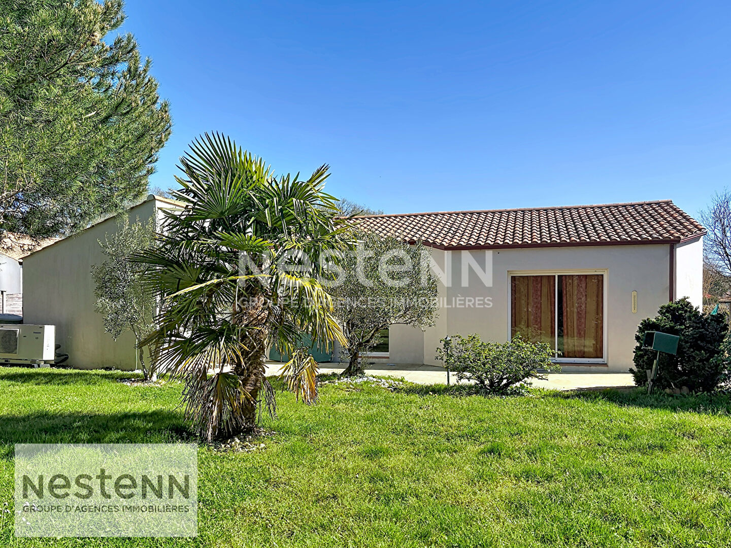 Nous vous proposons cette charmante maison de plain-pied, située dans un hameau à Bois de Céné, offrant un cadre de vie paisible et confortable. D'une surface de 125 m², cette maison comprend 3 chambres et un grand bureau, un séjour lumineux de 54 m² avec 3 baies vitrées exposées plein sud et une cuisine aménagée et équipée, ainsi qu'une salle d'eau et un WC séparé. Le chauffage au sol par pompe à chaleur garantit un confort optimal tout au long de l'année, la PAC est neuve et sous garantie. Construite en 2008 en parpaing, la maison est en bon état général avec des fenêtres en PVC double vitrage, assurant une bonne isolation. Le terrain de 1000 m² sans vis-à-vis vous offre un bel espace extérieur avec une terrasse pour profiter des beaux jours. Vous bénéficierez également d'un atelier fermé et d'un préau pour votre véhicule. Située à seulement 3 km des commerces, 8 km de la gare et 25 km de la mer, cette maison allie praticité et qualité de vie. L'assainissement est assuré par une fosse septique conforme. La fibre optique est disponible pour un accès internet rapide. Cette maison est une opportunité rare pour une famille cherchant un environnement calme et sécurisé. Contactez l'agence NESTENN Challans pour organiser une visite et découvrir tout le potentiel de ce bien au prix de 280 000 euros. (5.13 % honoraires TTC à la charge de l'acquéreur.)