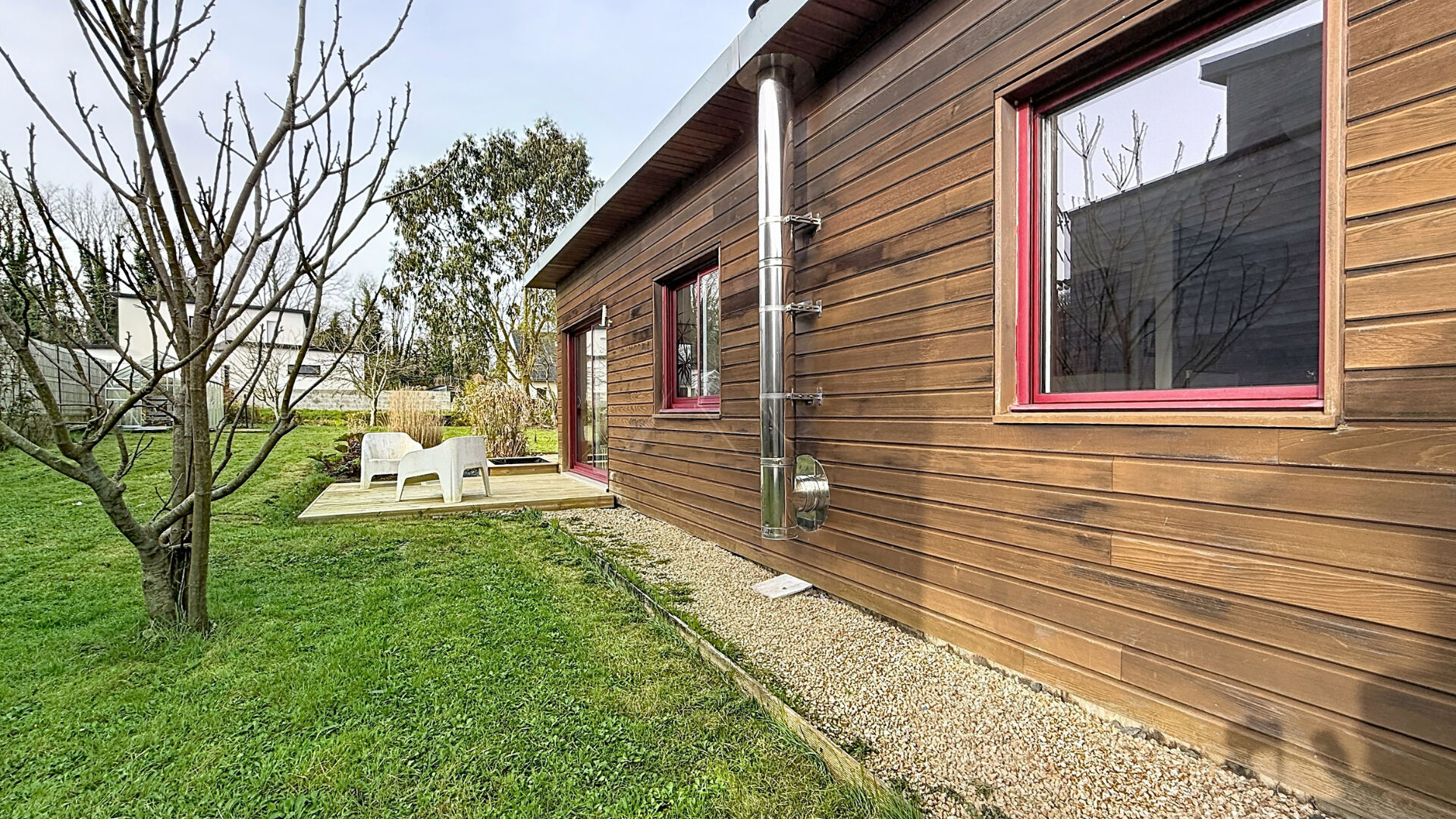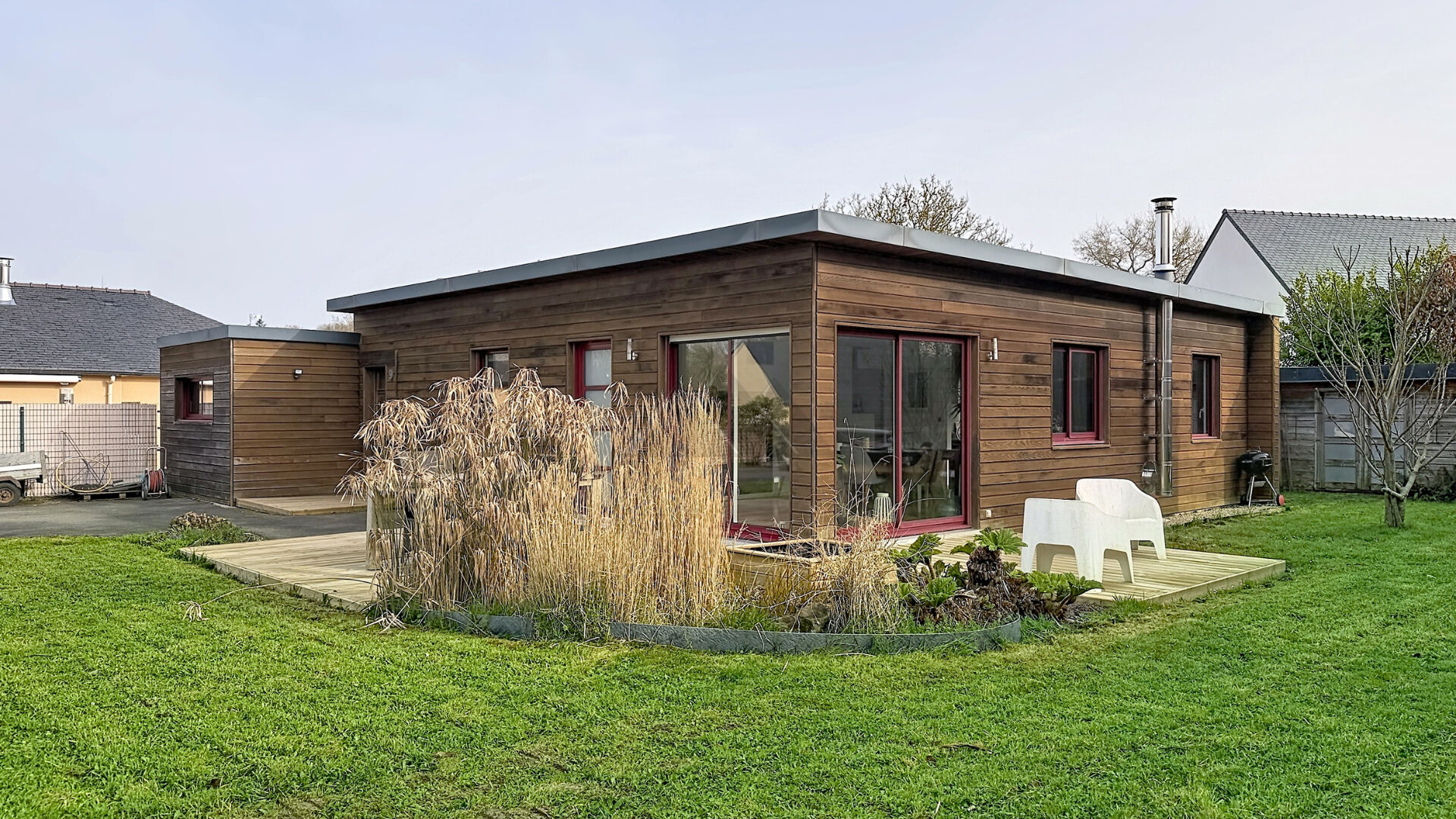 Maison contemporaine de plain-pied en bois à l'Hôpital Camfrout Située dans un environnement agréable, découvrez cette maison de plain-pied en ossature bois construite en 2009, offrant environ 120 m² habitables sur un terrain d'environ 800 m². Dès l'entrée, vous serez séduits par une spacieuse pièce de vie lumineuse, comprenant un séjour convivial avec coin TV et espace bureau, ouverte sur l'extérieur et aux deux terrasses grâce à ses larges baies vitrées. La maison dispose d'une cuisine récente réalisée avec de beaux matériaux, moderne et fonctionnelle, avec cellier attenant pour davantage de rangement. L'espace nuit se compose de : 1 chambre avec salle d'eau privative et WC 2 chambres supplémentaires 1 salle d'eau indépendante et WC indépendant 1 dressing Pour le confort au quotidien, la maison est équipée d'un poêle à granulés. A l'extérieur, vous profiterez d'un terrain d'environ 800 m², de deux agréables terrasses pour les beaux jours, ainsi que d'un cabanon de jardin, pratique pour le stockage. Maison chaleureuse, lumineuse et fonctionnelle, idéale pour une vie de plain-pied. A découvrir sans tarder ! REFERENCE LUXIOR 26486JM (6.50 % honoraires TTC à la charge de l'acquéreur.)