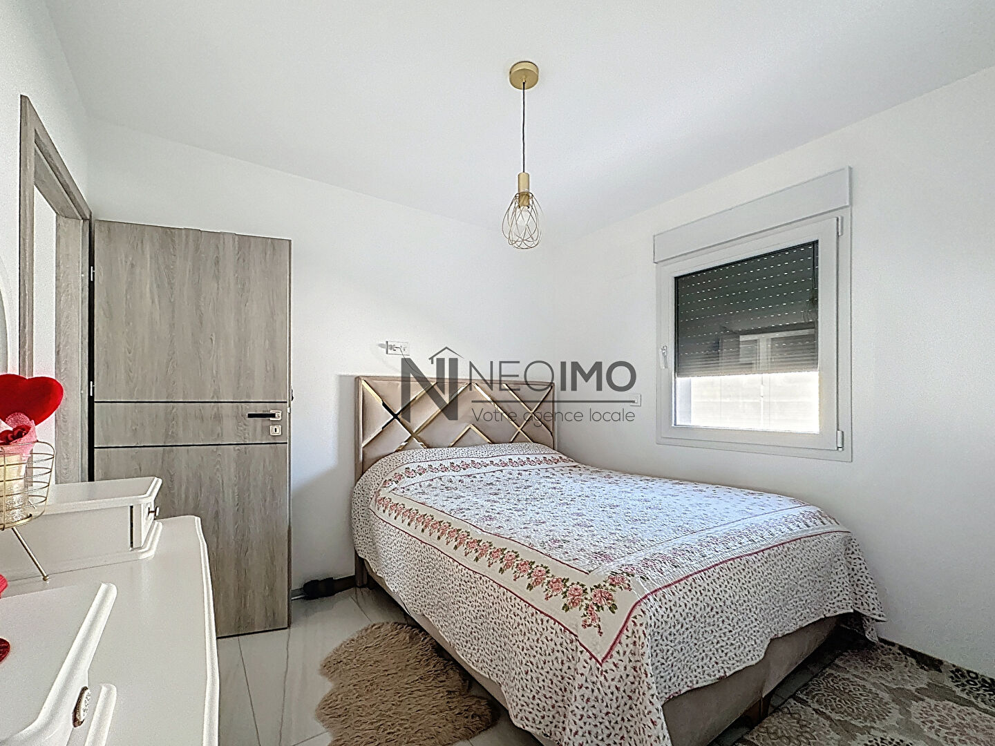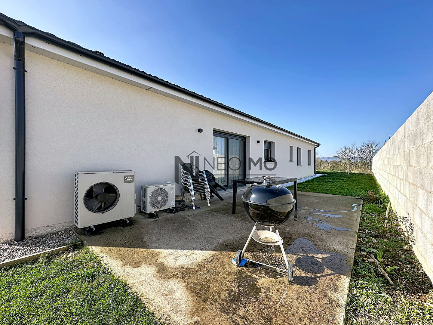 Proche centre ville Maison individuelle édifiée de plain pied en 2023 sur une parcelle de 874 m². - Porche couvert - Entée avec placard - Espace de vie de 45 m² avec cuisine aménagée et équipée, salle-à-manger et salon - 3 chambres avec placard - Suite parentale avec salle d'eau et dressing - Wc séparés - salle d'eau avec wc - Buanderie - Garage - Deux terrasses Chauffage au sol par pompe à chaleur Cuve de récupération d'eau de pluie.