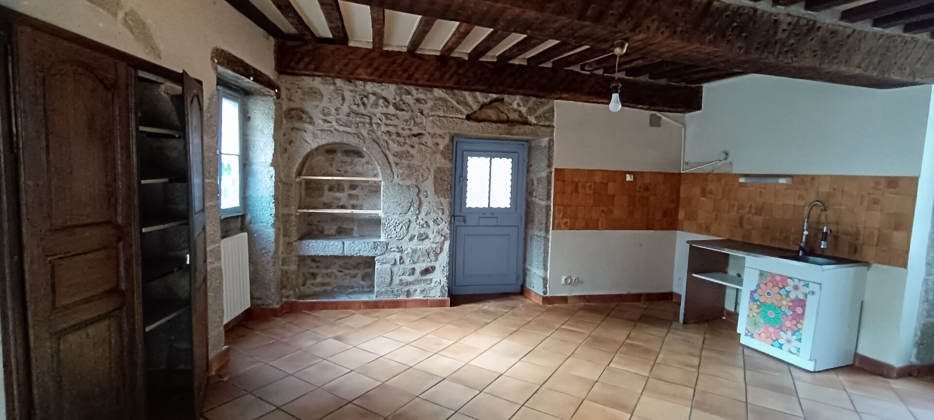 Très ancienne maison de ville et de caractère au centre d'Aubusson comprenant de très belles pièces en pierres apparentes en rez-de-chaussée, la cuisine accédant sur une petite cour pittoresque. Les étages sont desservis par un bel escalier à vis, les chambres sont nombreuses et spacieuses. Travaux de couverture à prévoir et un rafraîchissement en feront un bien précieux, à préserver. (actuellement loué) (10.00 % honoraires TTC à la charge de l'acquéreur.)