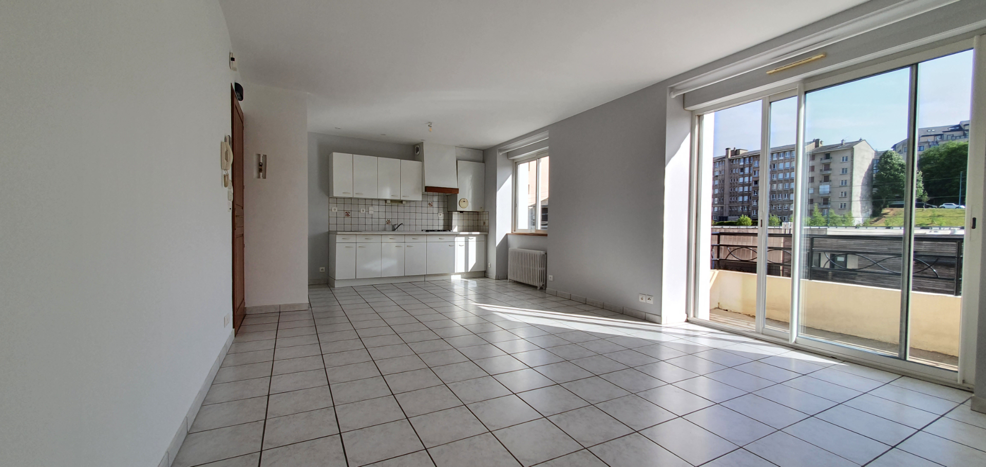RODEZ- QUARTIER AMPHITHEATRE : T2 lumineux comprenant une cuisine ouverte aménagée (placards hauts et bas, plaque cuisson gaz, hotte à extraction), grand séjour avec un balcon de 6 m², chambre avec placard, salle d'eau aménagée (meuble vasque, cabine douche) avec WC Chauffage individuel gaz avec programmateur et climatisation réversible - volets électrifiés. Annexes : 1 cave (4,39 m²), 1 garage (13,89 m²)