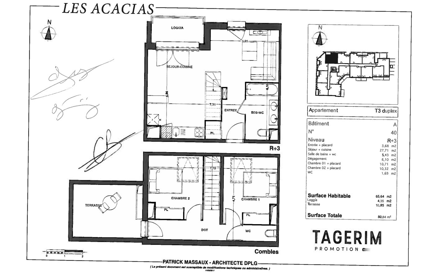 Au sein d'une résidence récente, bel appartement de 3 pièces, situé au dernier étage comprenant : Au premier niveau une entrée avec placard, un séjour-cuisine donnant sur une loggia de 4.35 m², une salle de bains avec WC. Et au deuxième niveau, un dégagement donnant sur une terrasse de 10.85 m², deux chambres avec placard et un WC. Deux emplacements de parking en sous-sol accompagnent ce bien. Chauffage et eau chaude : Chaudière individuelle GAZ. Loyer mensuel 846,00 euros charges comprises dont 70,00 euros de provisions pour charges (avec régularisation annuelle) Honoraires TTC à la charge du locataire 846,00 euros dont 196,00 euros d'honoraires d'EDL. Dépôt de garantie 776,00 euros LOGEMENT SOUMIS AU DISPOSITIF PINEL Contactez nous par téléphone au 05.33.09.52.31 ou par mail gestion-bordeaux@epsilium.fr