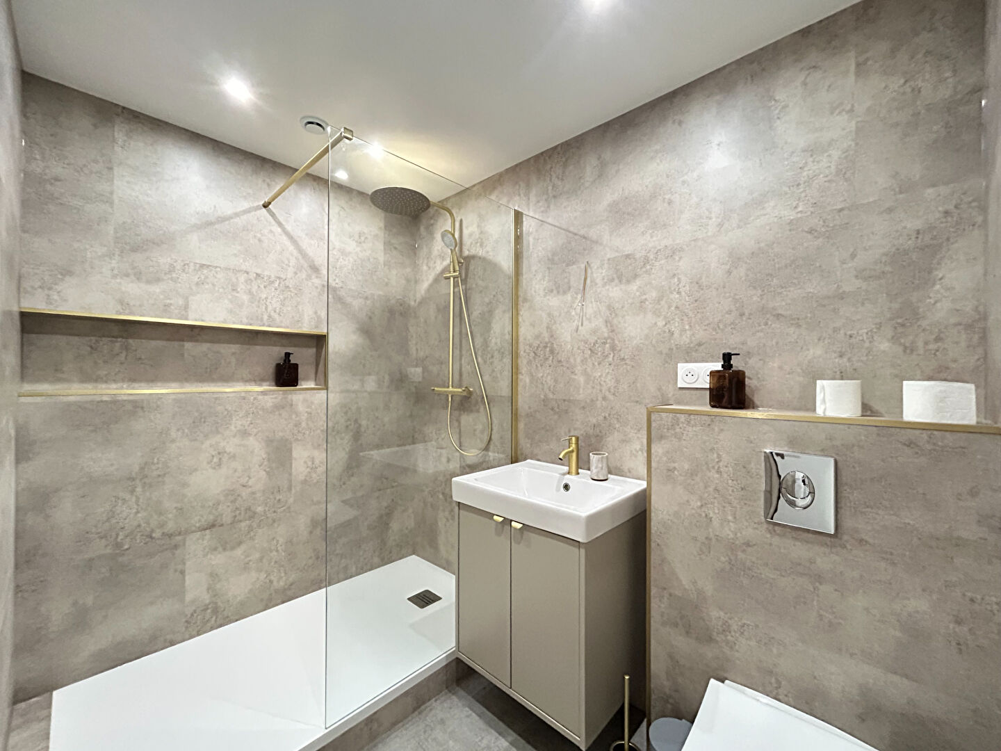Secteur Charles Arnould et Clairmarais, proche de toutes commodités, venez découvrir ce superbe T5 entièrement meublé, idéal pour une colocation. Il se compose d'une entrée avec rangements, d'un lumineux salon agréable à vivre, d'un vaste séjour donnant sur une cuisine aménagée et équipée, de 4 chambres avec rangements, dont deux possédant une petite salle de douche, ainsi que d'une spacieuse salle de douche avec WC. Une grande et agréable terrasse couverte vient compléter ce bien. Chauffage individuel gaz. Disponible le 6 mai. Reims - 69 rue de Fismes