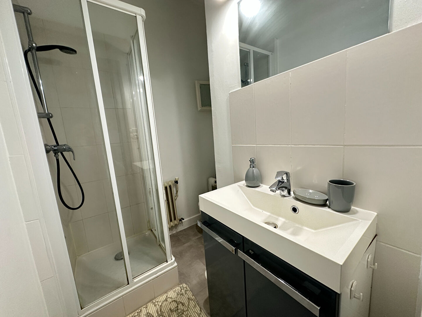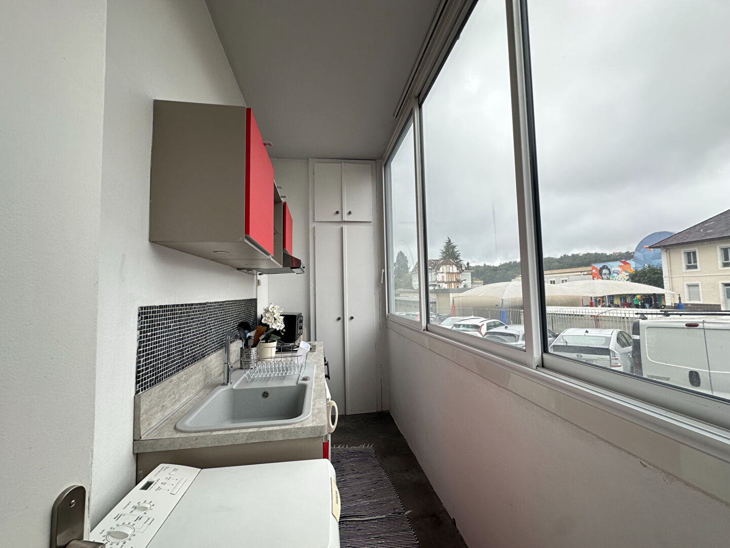 AIX LES BAINS - Proche centre-ville/Casino - Résidence Le Lamartine - T1 meublé à louer de 27,31m² au rez-de-chaussée comprenant : salle d'eau/WC, pièce principale, cuisine équipée (four, plaque électrique, hotte, réfrigérateur, machine à laver), chambre. Cave, places de parking de copropriété. Disponible immédiatement. Loyer : 500 euros + 87 euros de charges (copropriété, chauffage et TOM inclus). Honoraires : 300 euros.