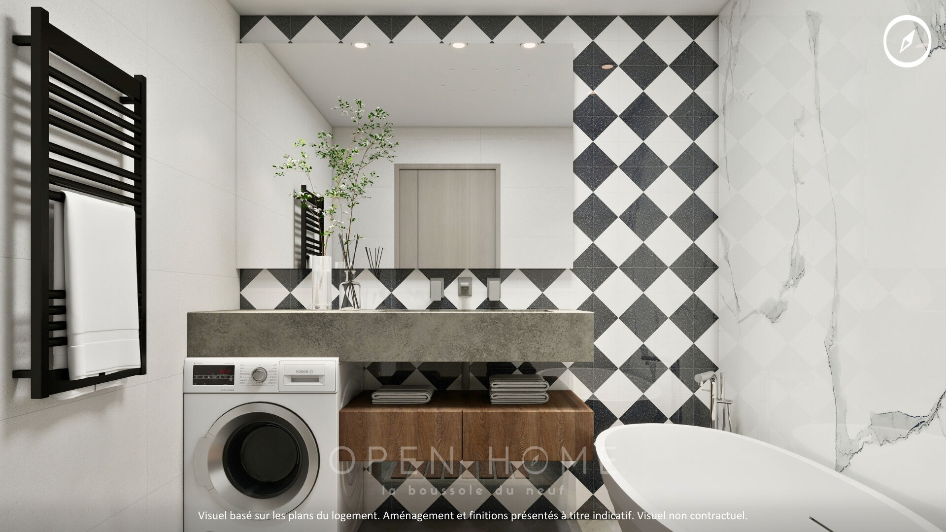 3 pièces neuf - 62 m² - Balcon 8 m² - Sud-Ouest - Saverne Situé au 3e étage d'une résidence neuve à l'architecture inspirée du style alsacien, l'appartement propose une pièce de vie lumineuse avec cuisine ouverte donnant accès au balcon. Il comprend deux chambres et une salle de bain. Parking en sous-sol. Prestations : sol stratifié, volets roulants, chauffage urbain, ascenseur, local vélo et vidéophone. Résidence neuve RE 2020 seuil 2025, située dans un environnement calme à proximité des commerces et du centre-ville. Éligible à la TVA réduite à 5,5 % sous conditions. Possibilité d'investissement via le dispositif LLI. Open Home - La Boussole du neuf S'orienter dans le neuf grâce à des visuels issus du plan. Les visuels présentés ont été réalisés à partir du plan de ce bien afin d'en proposer une lecture claire des volumes et de l'agencement. (Aménagement et finitions présentés à titre indicatif - visuels non contractuels.) Open Home, marque dédiée au neuf de La Pépinière Immo. Contactez-nous pour plus de renseignements. Autres appartements et autres configurations disponibles sur demande. Surface : 61,87 m² Prix : 223 000 euros prix direct promoteur (TVA 5,5%), hors frais de notaire. Dispositif de TVA réduite accessible sous certaines conditions et pour résidence principale. Prix : 253 649,29 euros prix direct promoteur (TVA 20%), hors frais de notaire Honoraires à la charge du vendeur. Offre spéciale en cours pour résidence principale et investissement : pour plus d'informations nous contacter.