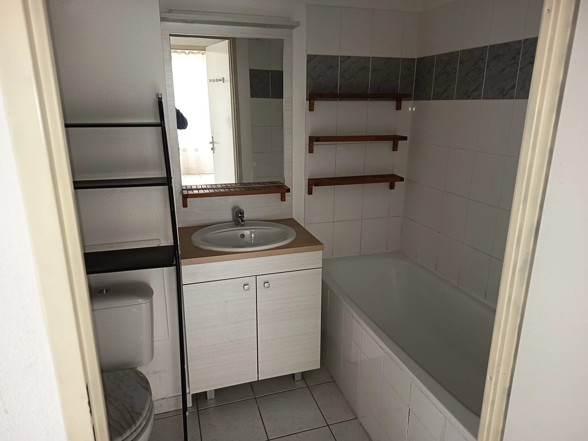 Un appartement de type 2 RDC comprenant : séjour, cuisine, salle de bains, WC, une chambre, deux places de parking sécurisées numéro et un balcon. Chauffage : individuel électrique Loyer charges comprises 450 € / mois dont provision sur charges (régularisation Annuelle) 40 € / mois Honoraires charge locataire : 422.35 € TTC dont état des lieux 115.29 € TTC Libre de suite