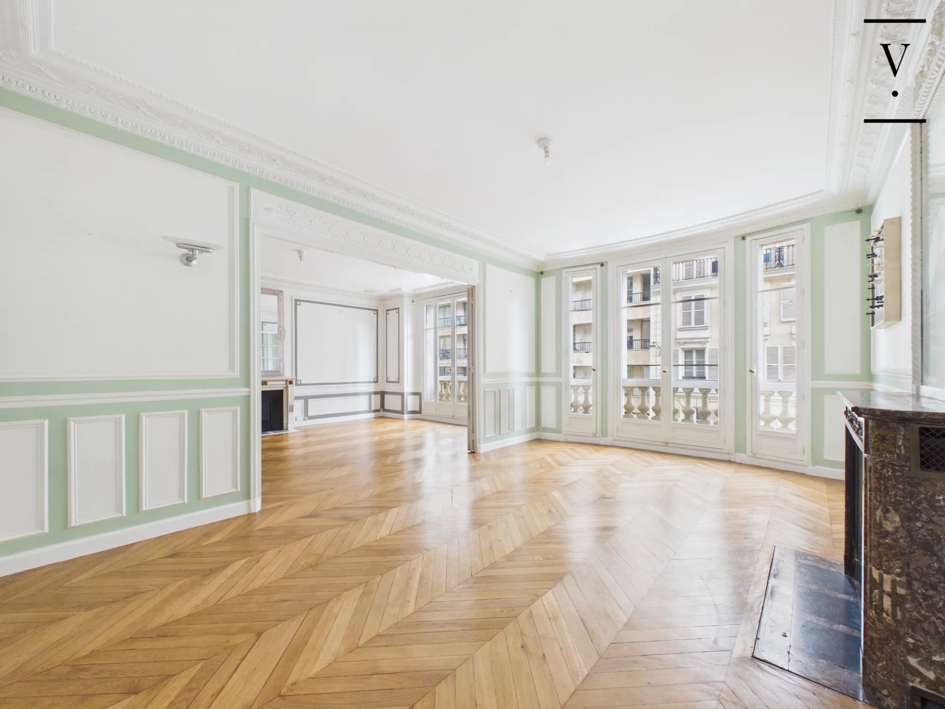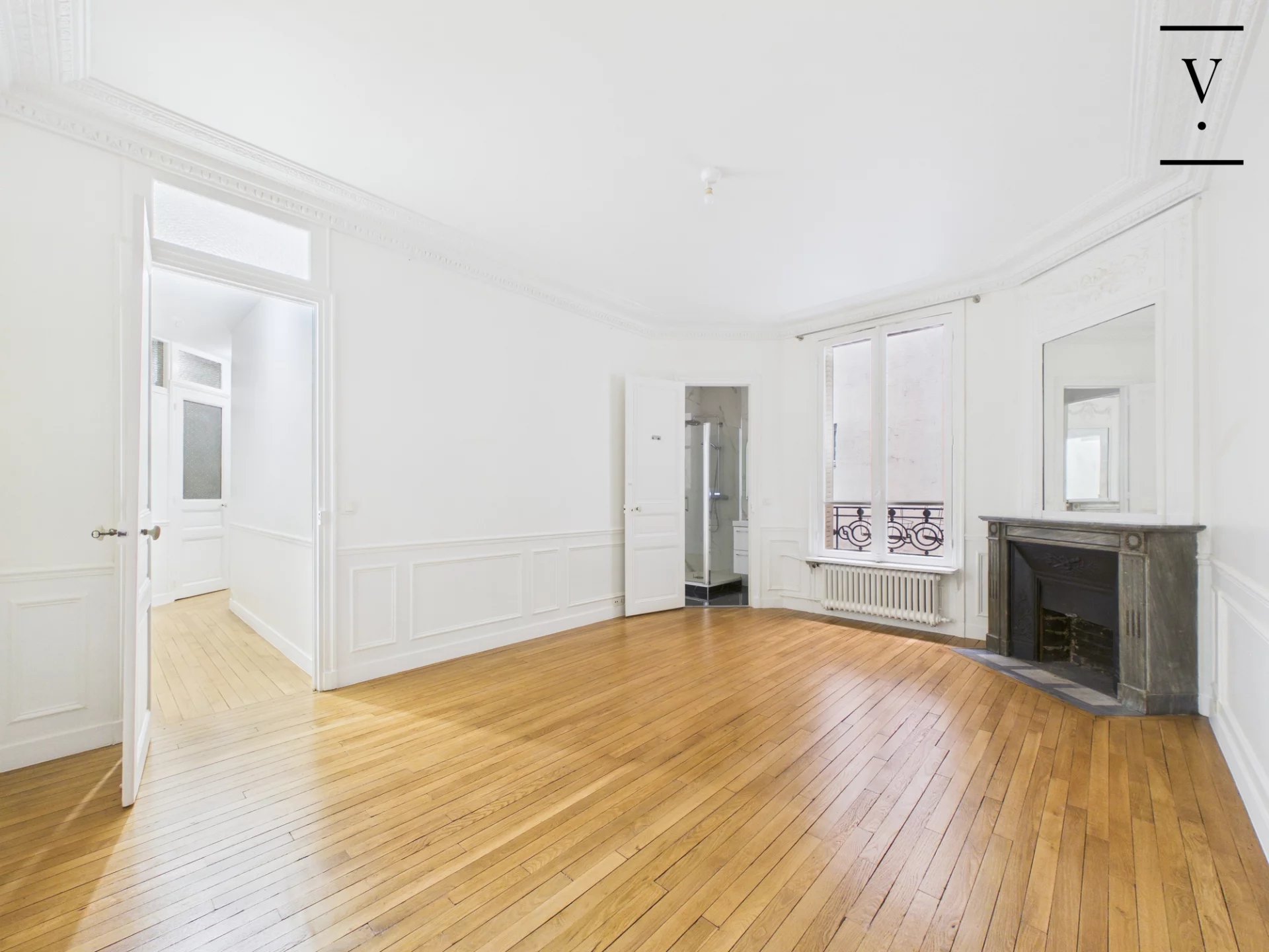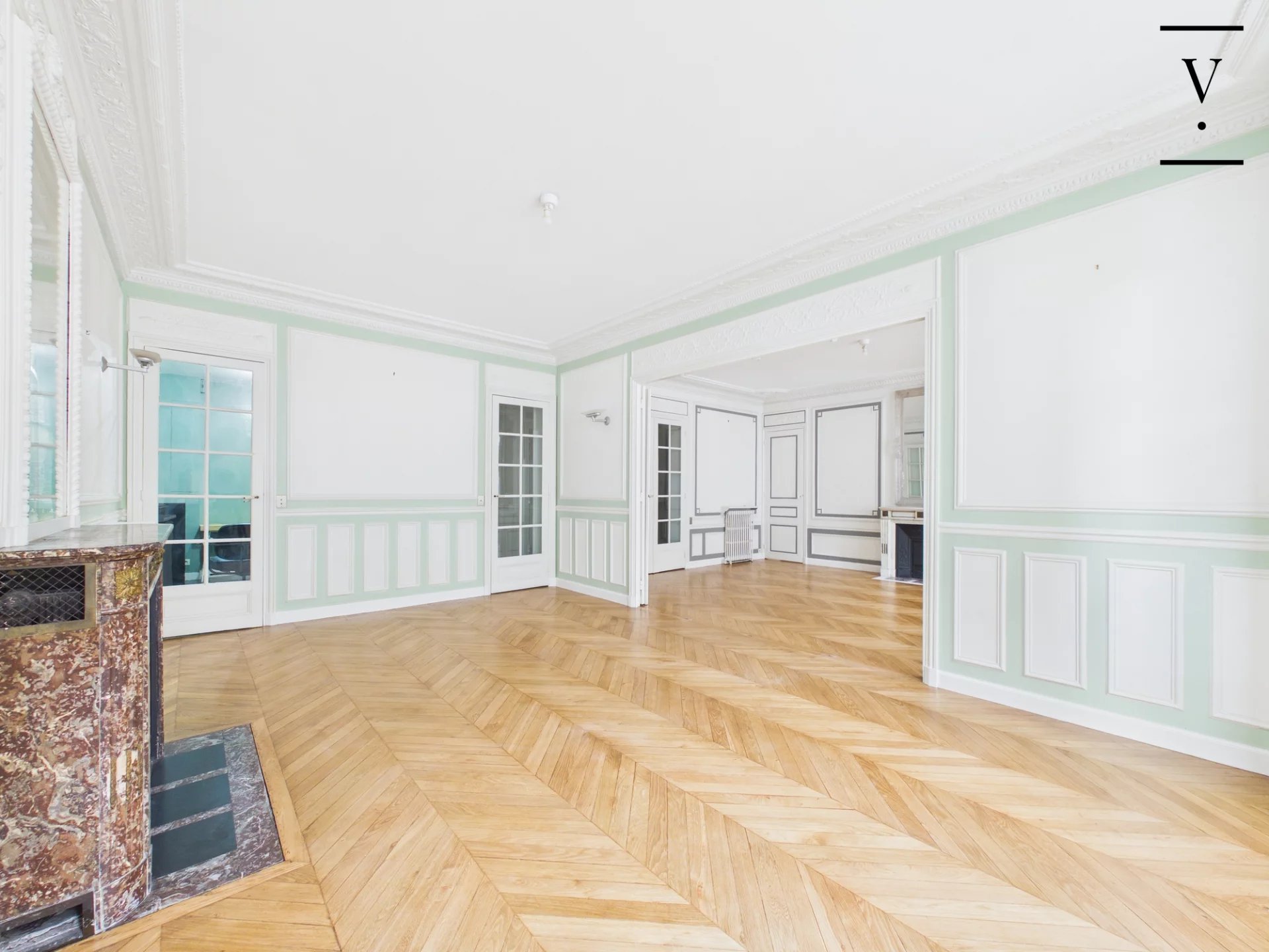Villaret Immobilier vous propose, au 2ème étage d’un bel immeuble haussmannien récemment ravalé, un élégant appartement familial et de réception de 174 m², seul sur le palier. Lumineux et exposé sud-est, il offre de beaux volumes avec un séjour et une salle à manger sur rue, ainsi qu’une cuisine dînatoire avec office et buanderie. L’espace nuit comprend une suite parentale avec salle de bains, deux chambres, une salle d’eau et deux WC. Une quatrième chambre peut être créée facilement. Charme de l’ancien (parquet, moulures, cheminées, belle hauteur sous plafond), plan fluide, nombreux rangements et bon état général. Deux caves complètent ce bien. En option : une chambre de service de 9,03 Carrez et 10,18m² situé au 7ème étage et une double place de parking. Professions libérales autorisées.