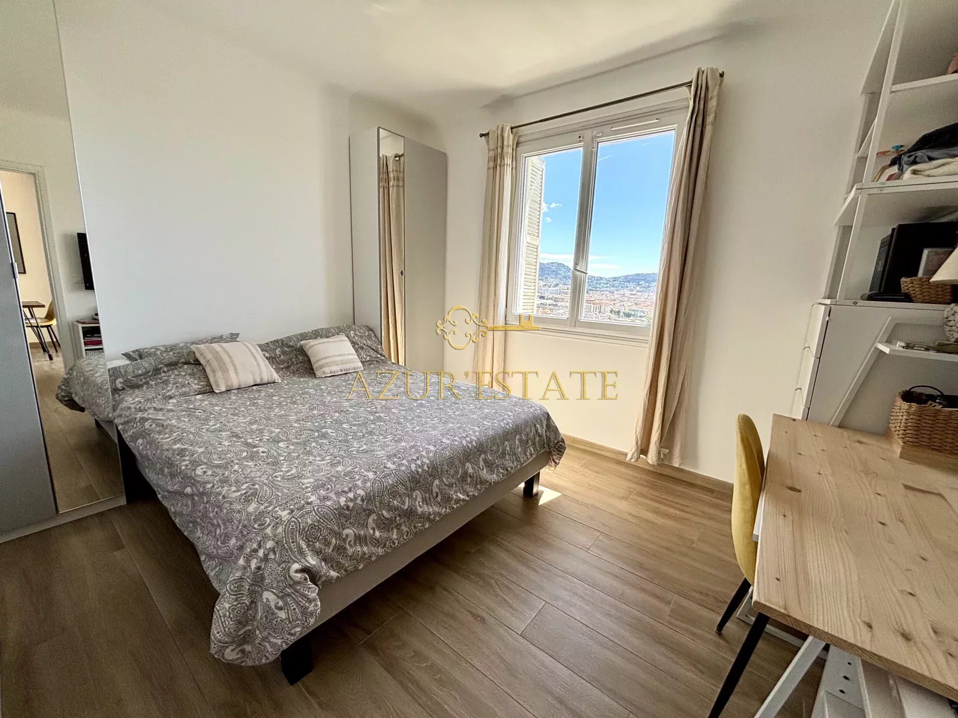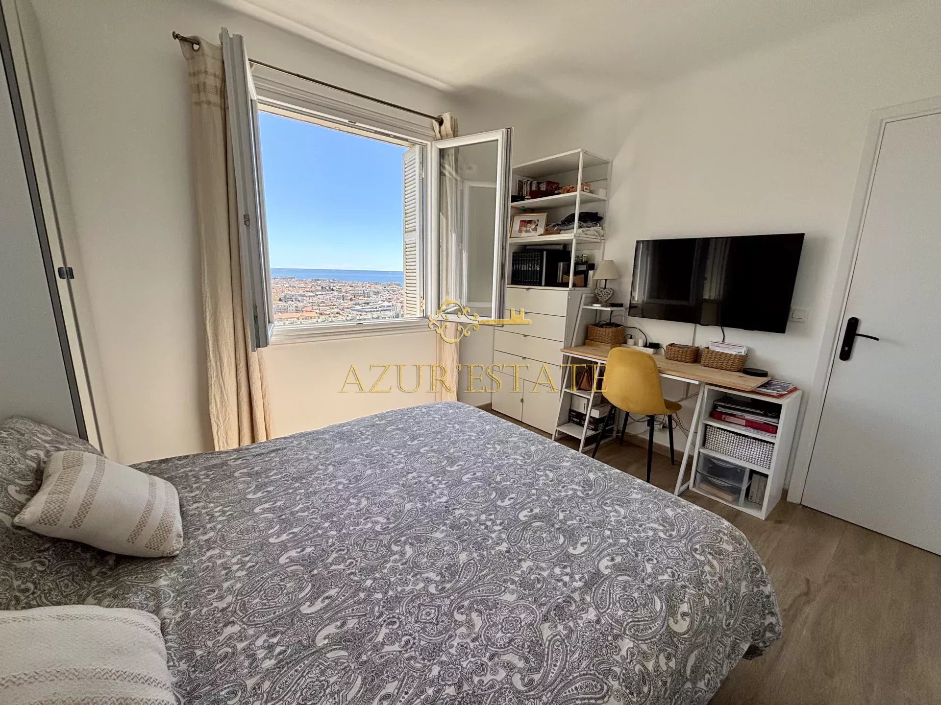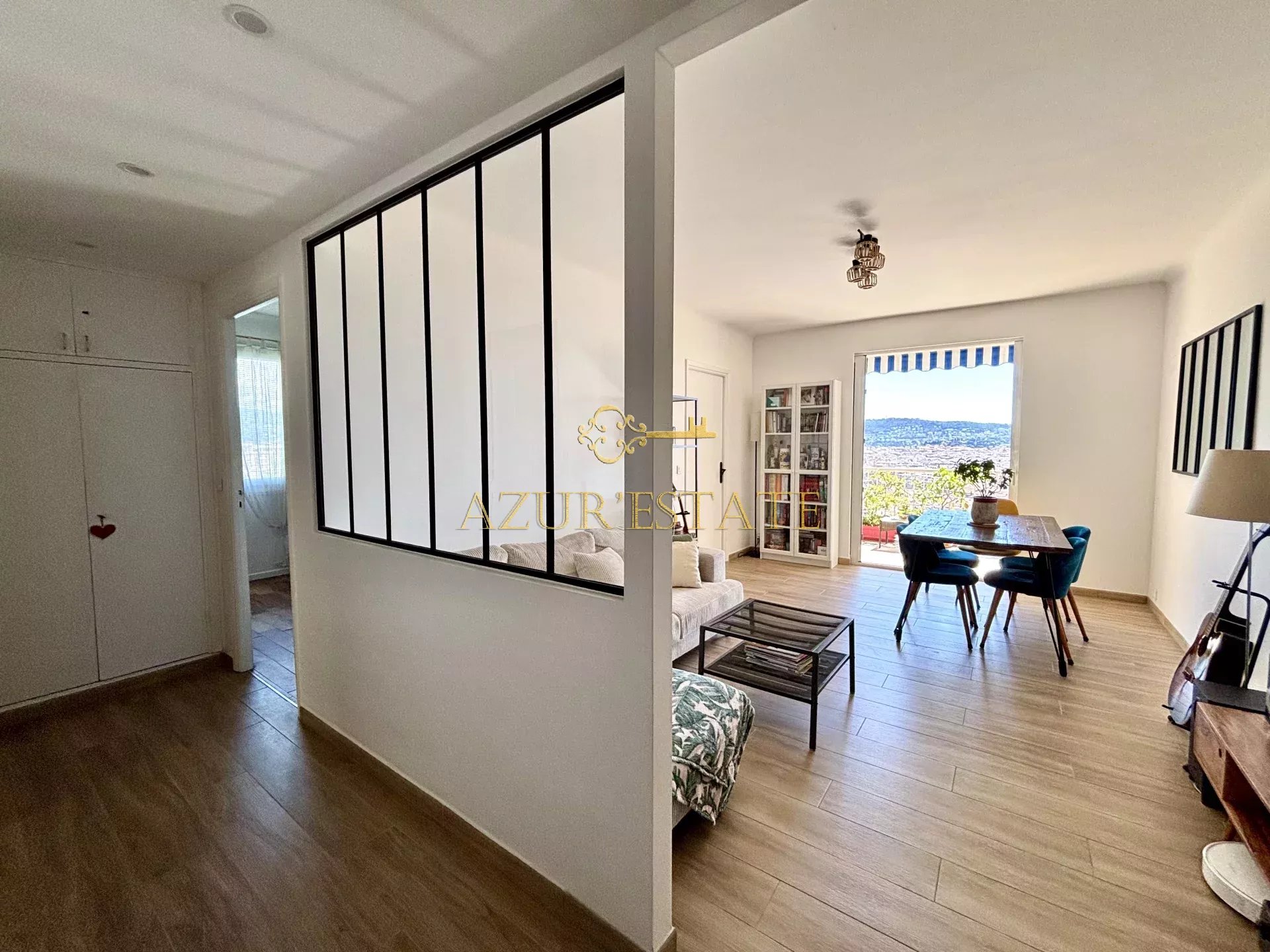 À deux pas de toutes les commodités, dans un environnement calme et verdoyant, découvrez ce beau 4 pièces traversant, entièrement rénové, offrant une vue spectaculaire sur la mer, la ville et les montagnes. Situé au 4ᵉ étage d’une résidence soignée, cet appartement baigné de lumière grâce à sa triple exposition allie parfaitement confort moderne, agencement optimisé et cadre de vie privilégié. L’appartement se compose d’une entrée sublimée par une verrière, d’une pièce de vie lumineuse ouvrant sur un balcon spacieux avec vue panoramique exceptionnelle, d’une cuisine aménagée et équipée partiellement ouverte avec un petit balcon attenant. Il offre également trois chambres avec rangements, une salle de bain avec fenêtre, un WC indépendant, ainsi qu’un grand placard intégré en fond de couloir. Le confort est assuré grâce à une climatisation gainable réversible, un chauffage au sol collectif et un chauffe-eau plat dernière génération. Stationnement dans la résidence possible pour seulement 20 €/mois. Honoraires à la charge du vendeur.