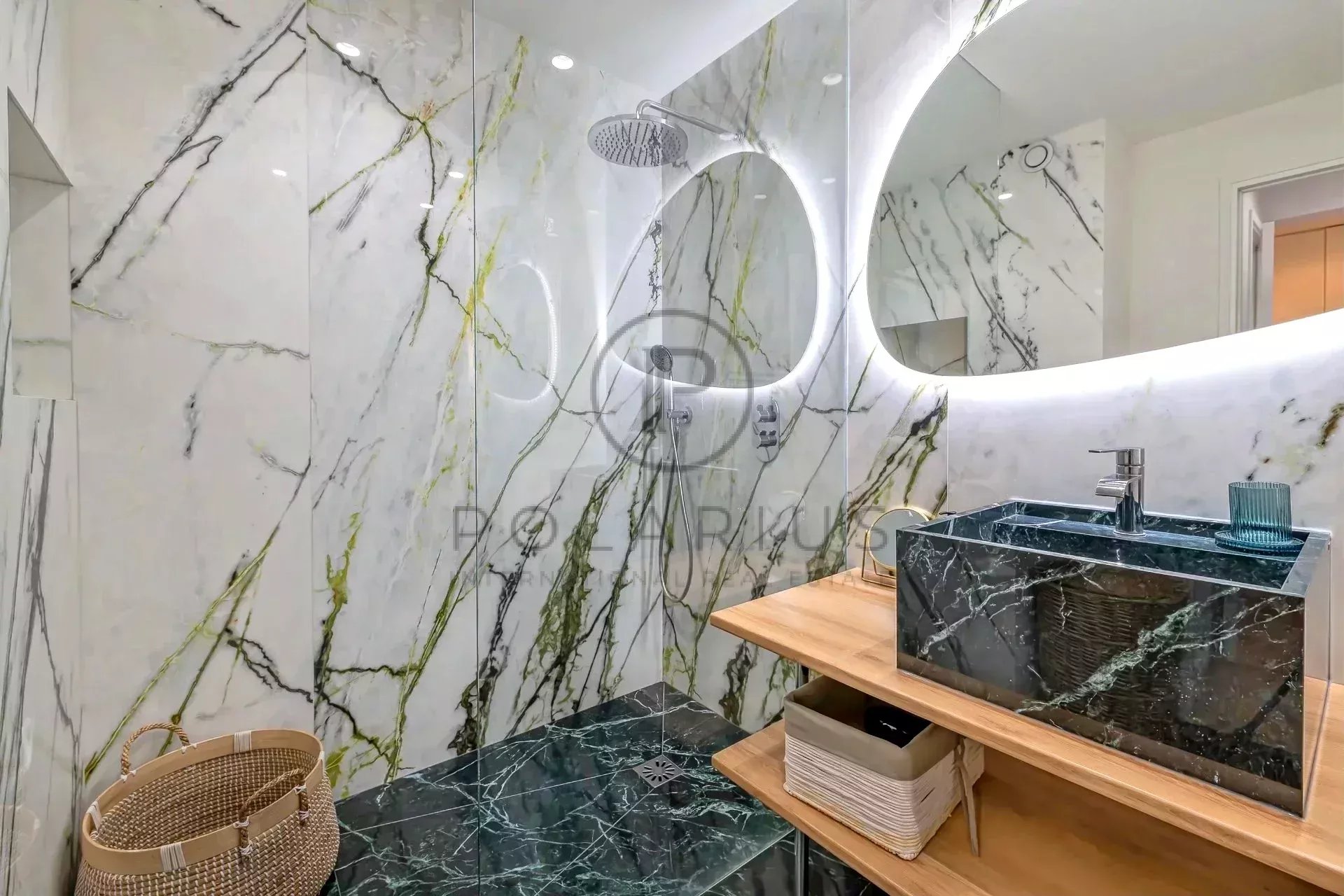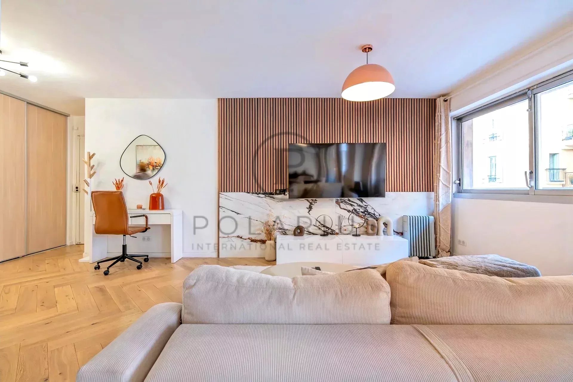 Situato al primo piano di un edificio ben tenuto con ascensore e custode, l'appartamento di 67 m² è stato completamente rinnovato secondo standard elevati e progettato per massimizzare la luce naturale e lo spazio. Il cuore della casa è una luminosa zona giorno a pianta aperta con una cucina contemporanea completamente attrezzata, che si estende senza soluzione di continuità su un balcone esposto a sud, ideale per godere del clima della Costa Azzurra durante tutto l'anno.