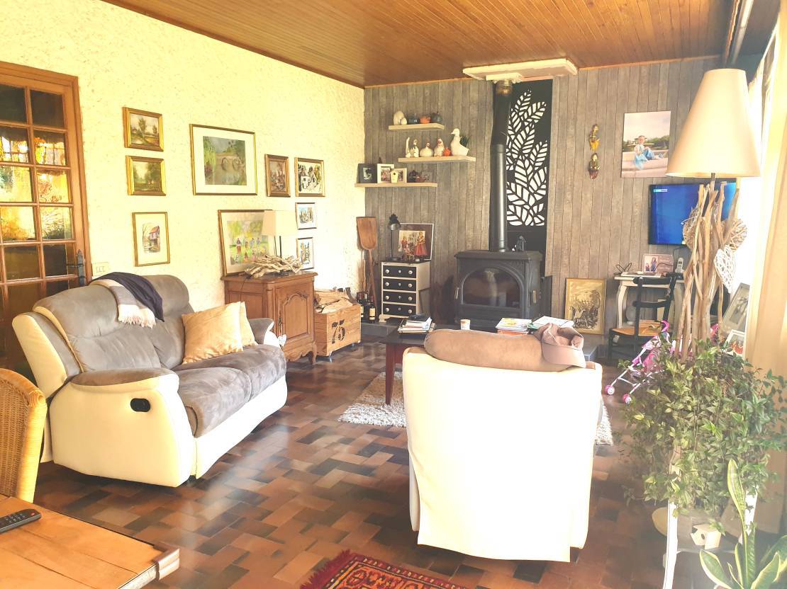 Au rez-de-chaussée : hall d'entrée desservant une cuisine aménagée équipée, un séjour lumineux et spacieux ouvert sur un salon avec son poêle à bois, une suite parentale, un dressing, une salle de bain, un wc.