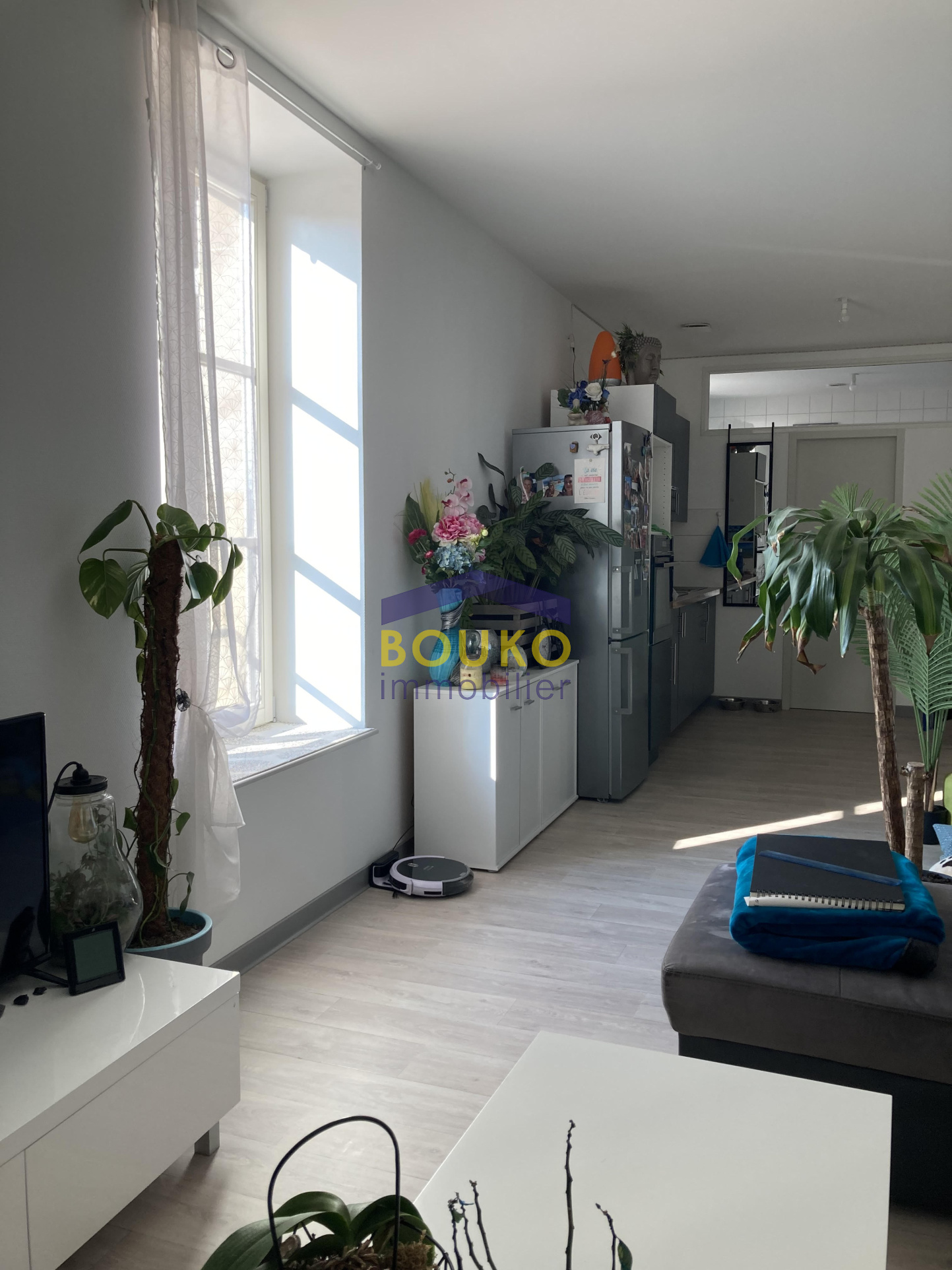 ROSIERES-AUX-SALINES : Appartement T2 de 45 m2 au 1er étage, comprenant 1 cuisine ouverte sur salon séjour, 1 chambre, 1 salle de bain avec WC. 1 grenier.