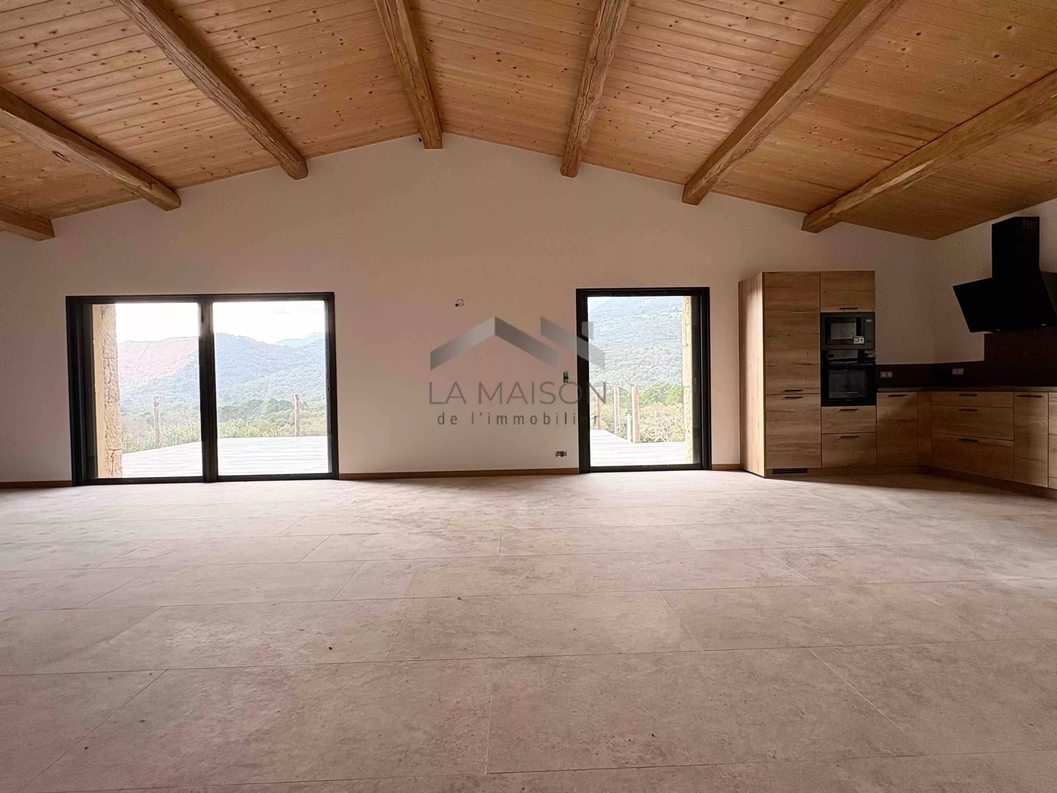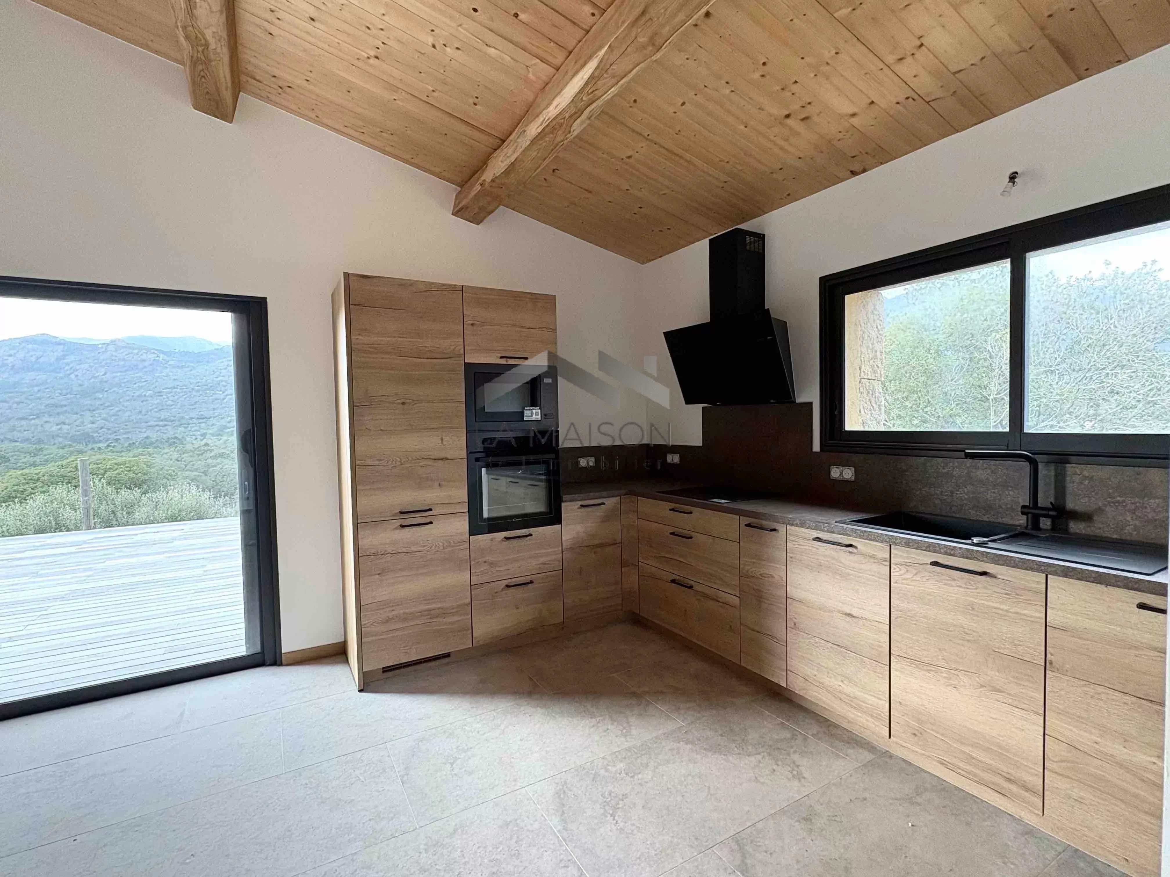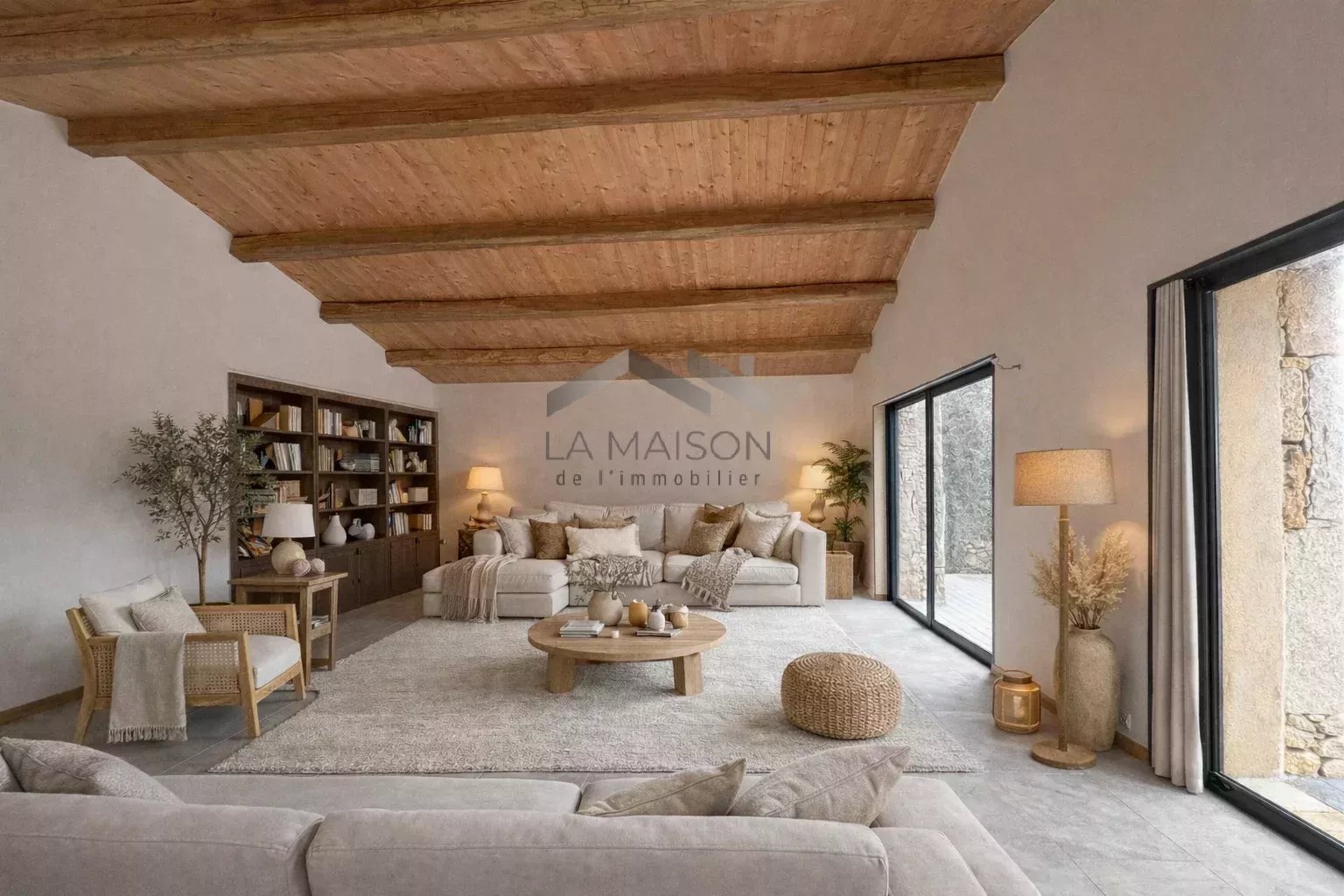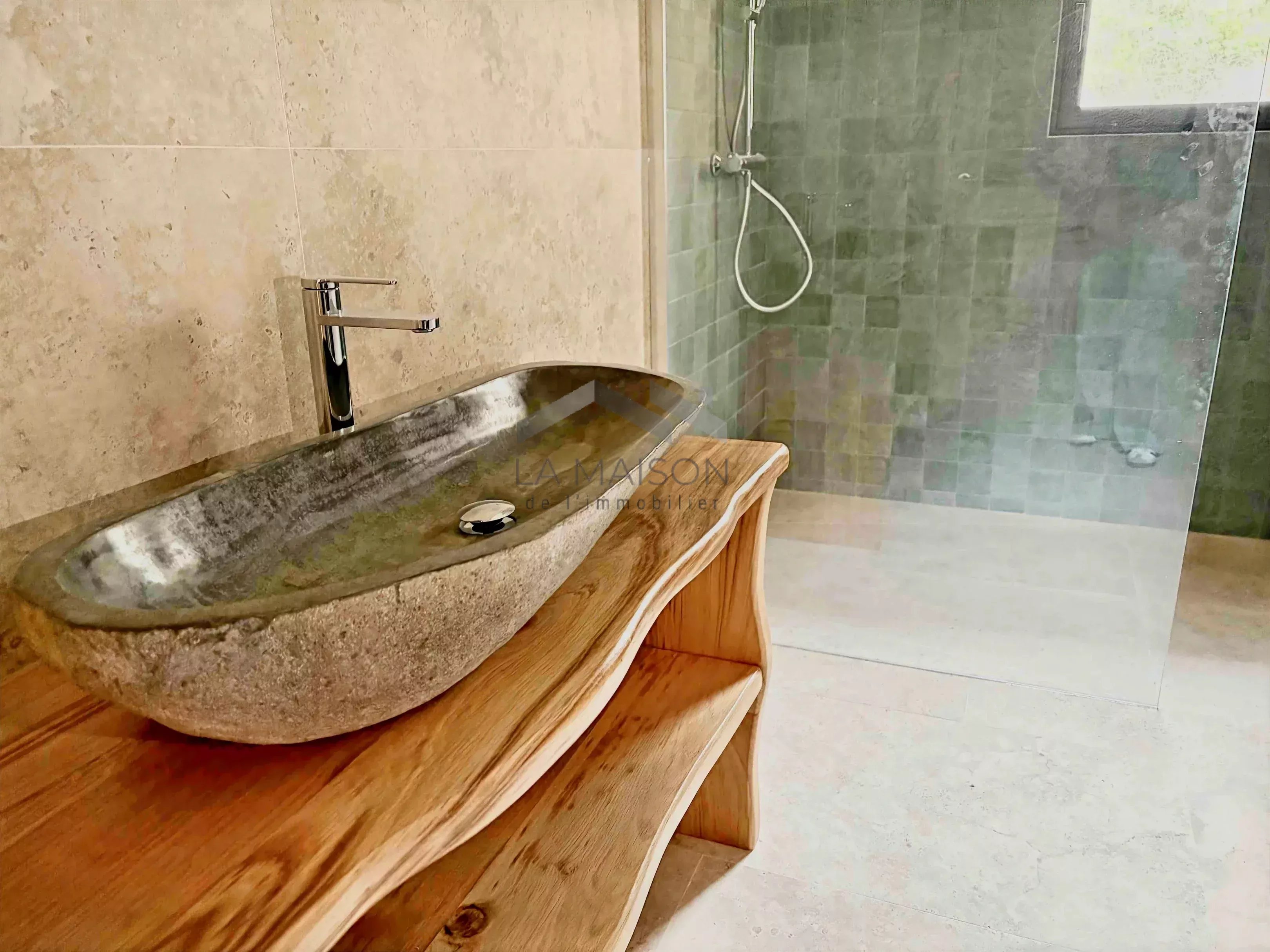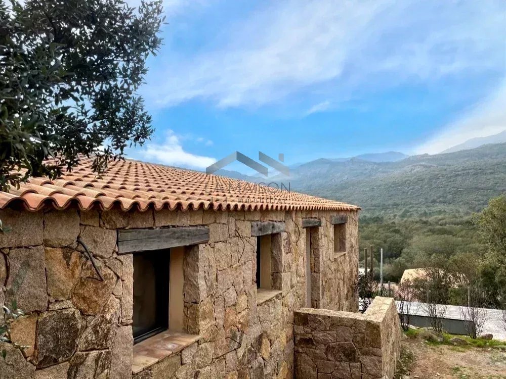 Bergerie contemporaine en pierre avec piscine – Sotta – Située à seulement 5 minutes du village de Sotta et 20 minutes de Porto-Vecchio, cette magnifique bergerie contemporaine en pierre développe une surface habitable d’environ 154 m² et bénéficie d’un environnement calme et privilégié, avec une vue panoramique dégagée sur les montagnes. La villa offre un bel espace de vie lumineux, composé d’un séjour spacieux ouvert sur l’extérieur, permettant de profiter pleinement de la terrasse et du cadre naturel environnant. La cuisine moderne entièrement équipée, à la fois fonctionnelle et conviviale, est complétée par un cellier attenant. L’espace nuit se compose de trois chambres confortables, ainsi que de deux salles d’eau avec WC, équipées de meubles en chêne massif, vasques à poser et sèche-serviettes. Un WC indépendant vient compléter l’ensemble pour plus de confort. À l’extérieur, la propriété dispose d’une superbe terrasse en bois exotique avec pergola, idéale pour profiter des beaux jours, ainsi que d’une piscine parfaitement intégrée dans son environnement naturel, offrant un espace de détente privilégié face aux montagnes. Prestations : Climatisation dans toutes les pièces Deux places de stationnement Matériaux de qualité et finitions soignées Cette bergerie moderne en pierre à Sotta séduit par son architecture typique, ses prestations de qualité et son cadre naturel exceptionnel, à proximité immédiate de Porto-Vecchio et des plages de l’Extrême-Sud. Un bien rare sur le secteur.