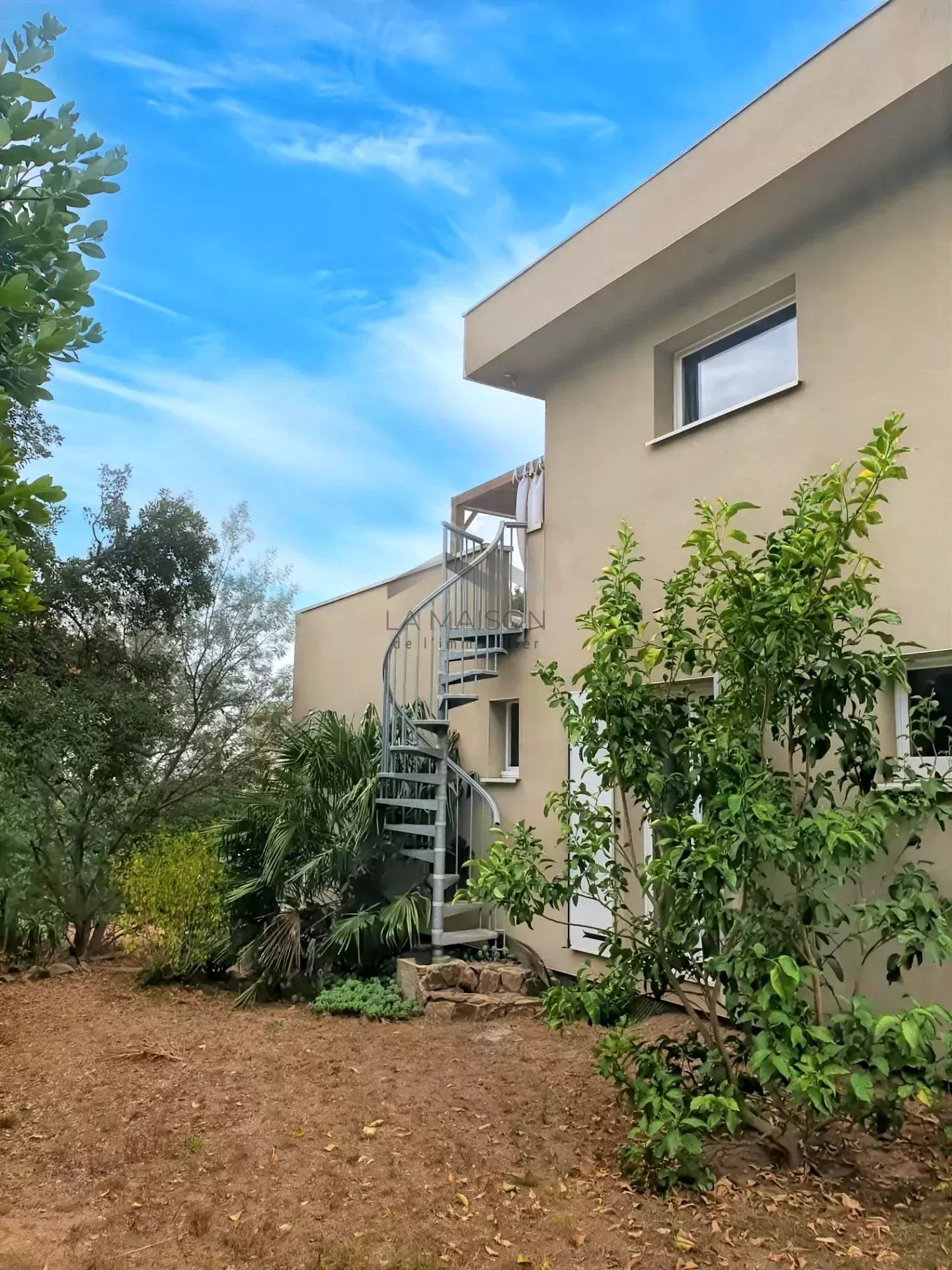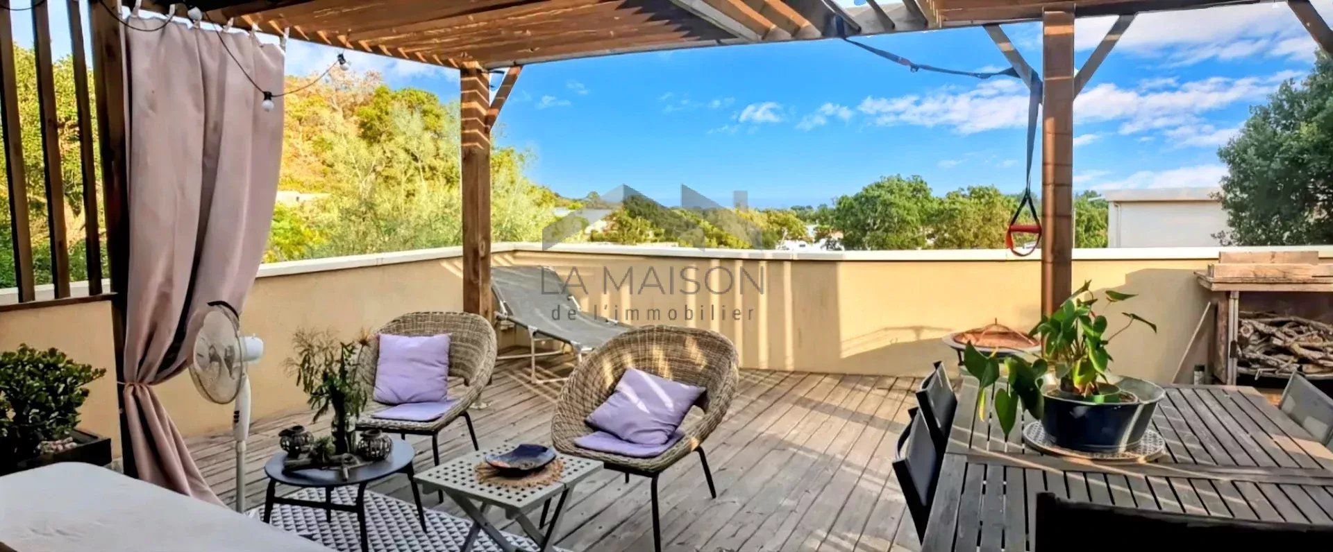 RARE : À 5 minutes des plages de L'Ovu Santu, Fautea et de la tour Génoise, une villa écologique et économique de type 5 avec deux studios vous attend à Sainte-Lucie de Porto-Vecchio à 5 mn à pied de la première plage. Cette villa composée de trois logements d'une surface totale d'environ 138 m² est implantée sur un terrain arboré de 1154 m². Elle offre avec son appartement principal situé au 1er étage, une belle vue mer à partir des pièces de vie et de sa grande terrasse orientée sud-est, soleil levant. Le logement principal d'une surface d'environ 99 m² se compose d’un séjour lumineux avec terrasse vue mer, cuisine américaine, de trois chambres, d’une salle de bains ainsi que d’une suite parentale avec salle d’eau privative. En rez-de-jardin, deux studios indépendants d'environ 19,50 m² chacun constituent une réelle opportunité locative pouvant faciliter l'obtention d'un prêt. Le jardin arboré offre des espaces de détente et permettrait l'installation d'une piscine. Une large zone de stationnement dont une partie couverte est aménagée. Cette propriété se situe à 20 minutes de Porto-Vecchio, 5 minutes de Sainte-Lucie, de ses commerces et services, 5 minutes des plages et des bassins naturels de la vallée du Cavu et 40 minutes de l'aéroport de Figari. Sur demande, nous pouvons vous réaliser une évaluation locative de chaque logement et vous apporter un accompagnement à l'obtention d'un prêt au meilleur taux avec nos partenaires.