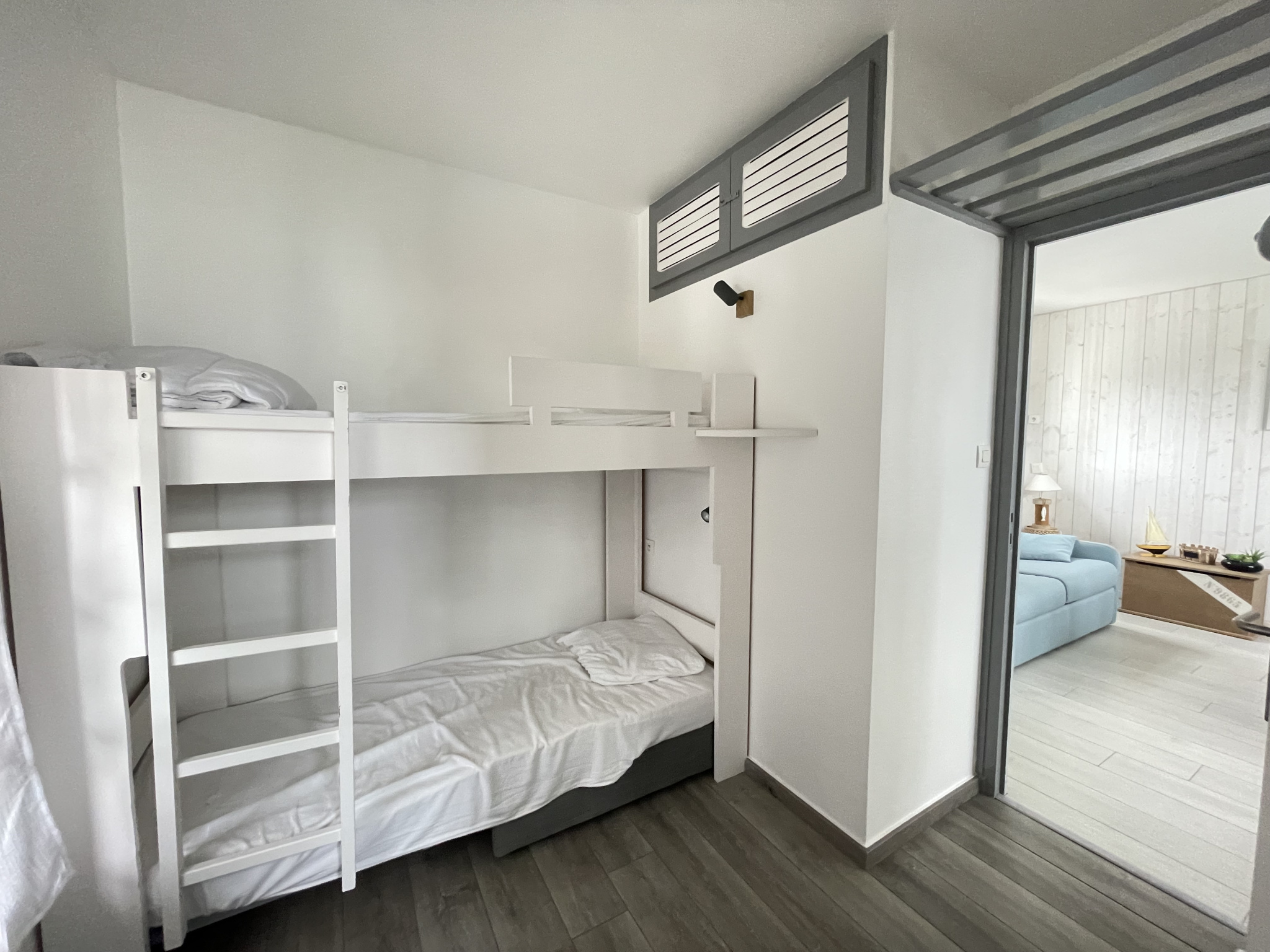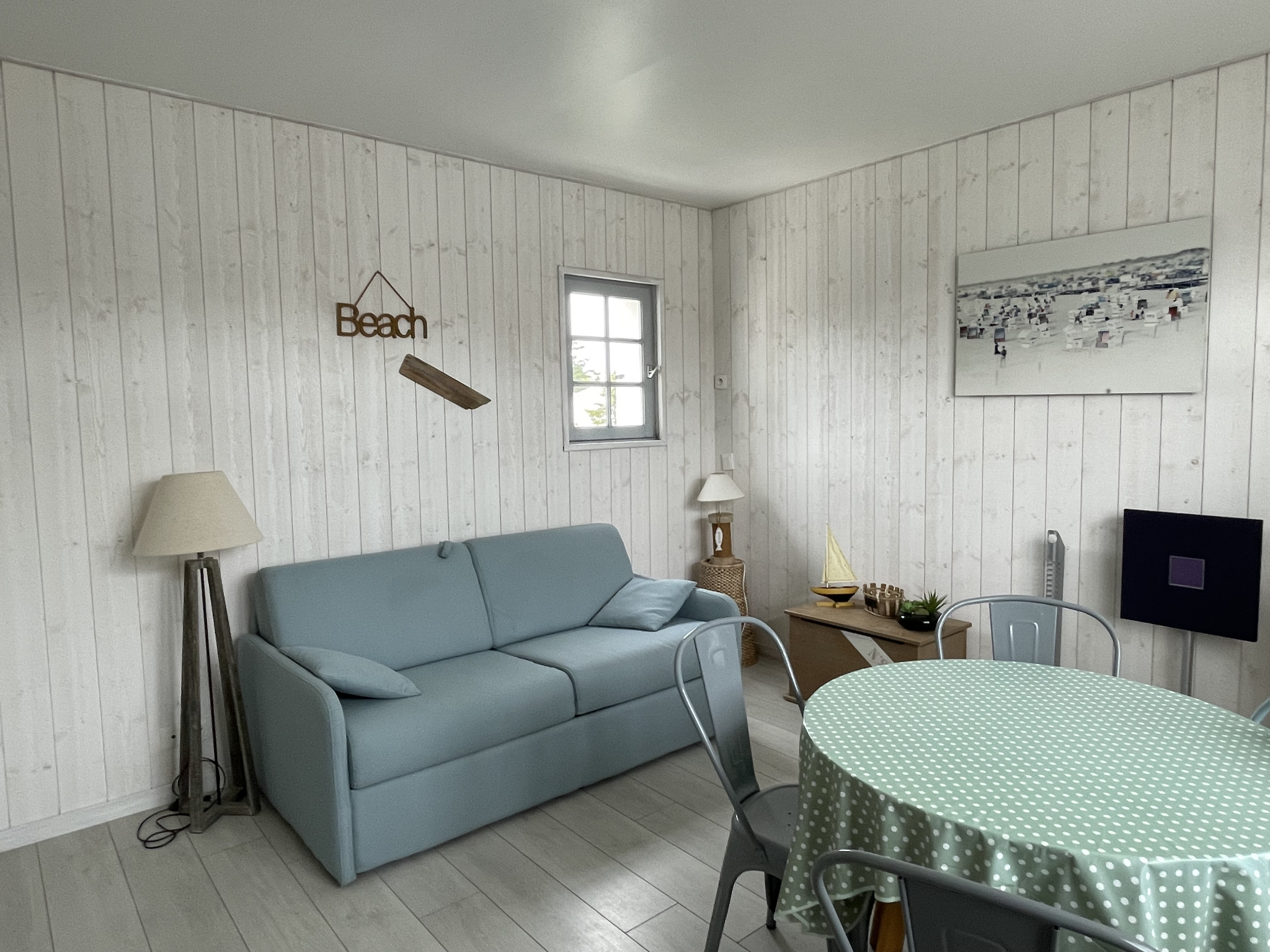Dans un ensemble résidentiel proche plage, un agréable appartement comprenant une entrée ( chambre cabine ), une pièce de vie avec kitchenette ouverte et un salle d'eau.