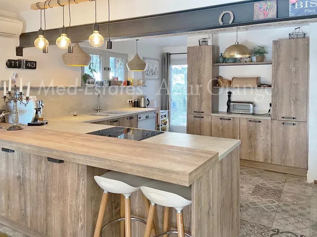 Découvrez cette charmante maison provençale en pierre, dotée de belles terrasses. La propriété comprend également un carport, une piscine, un jardin d'herbes aromatiques et même un poulailler. Nichée dans un joli hameau à seulement 8 minutes de Grimaud, sur la commune de La Garde Freinet, cette maison est entourée par la nature, au cœur des superbes forêts des Maures. La maison dispose d'une entrée accueillante, d'un vaste salon avec cheminée qui s'ouvre sur une terrasse en bois, et d'une cuisine ouverte, neuve et entièrement équipée. Elle comprend aussi une suite parentale avec salle de bain, une seconde chambre et des toilettes séparées. À l'arrière, accessible depuis la cuisine, une deuxième terrasse conviviale avec un coin barbecue vous attend. Au rez-de-jardin, vous trouverez une grande chambre avec sa salle de douche, une autre chambre, un bureau et une buanderie avec une petite cuisine. Devant la maison, une piscine entourée de plages vous invite à la détente, ainsi qu'un abri voiture pour deux véhicules. Cette propriété est un véritable havre de paix en pleine nature, à seulement 4 km de Grimaud.
