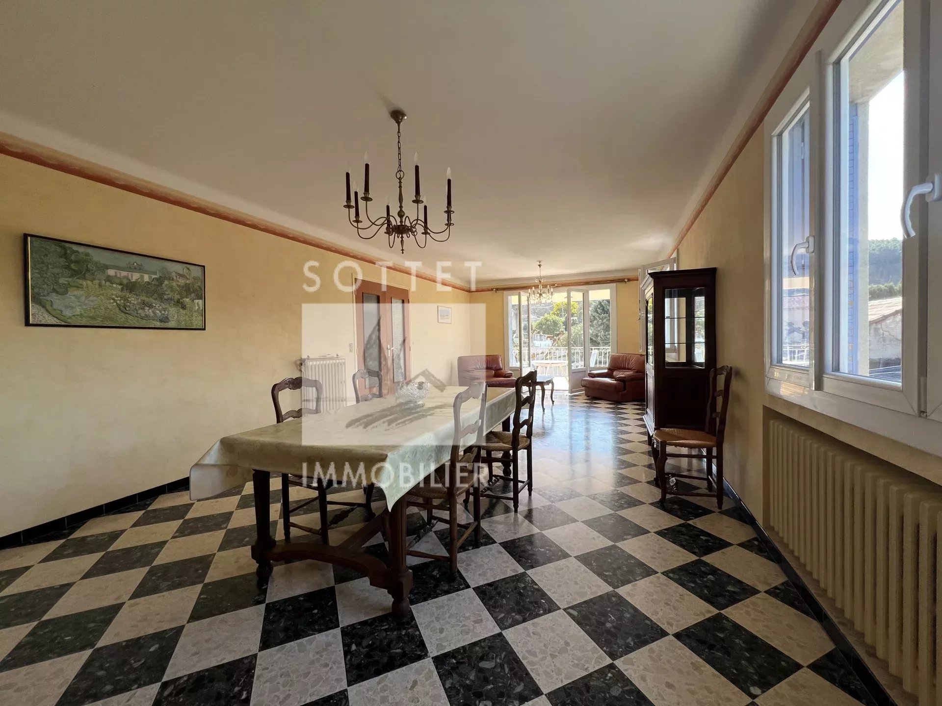 Située dans un quartier recherché, à seulement quelques minutes de la sortie d'autoroute A7, cette villa traditionnelle des années 70 avec un fort potentiel d'aménagement implantée sur 1265m² de terrain clos avec une piscine sécurisée . Elle présente une configuration très intéressante, 2 cuisines, 4 chambres et répond aux nouveaux enjeux de l'habitat intergénérationnel et peut convenir pour une installation professionnelle. Elle permet de loger confortablement une famille avec l'existence de deux logements distincts. Deux garages complètent le bien. Un bien rare et évolutif.