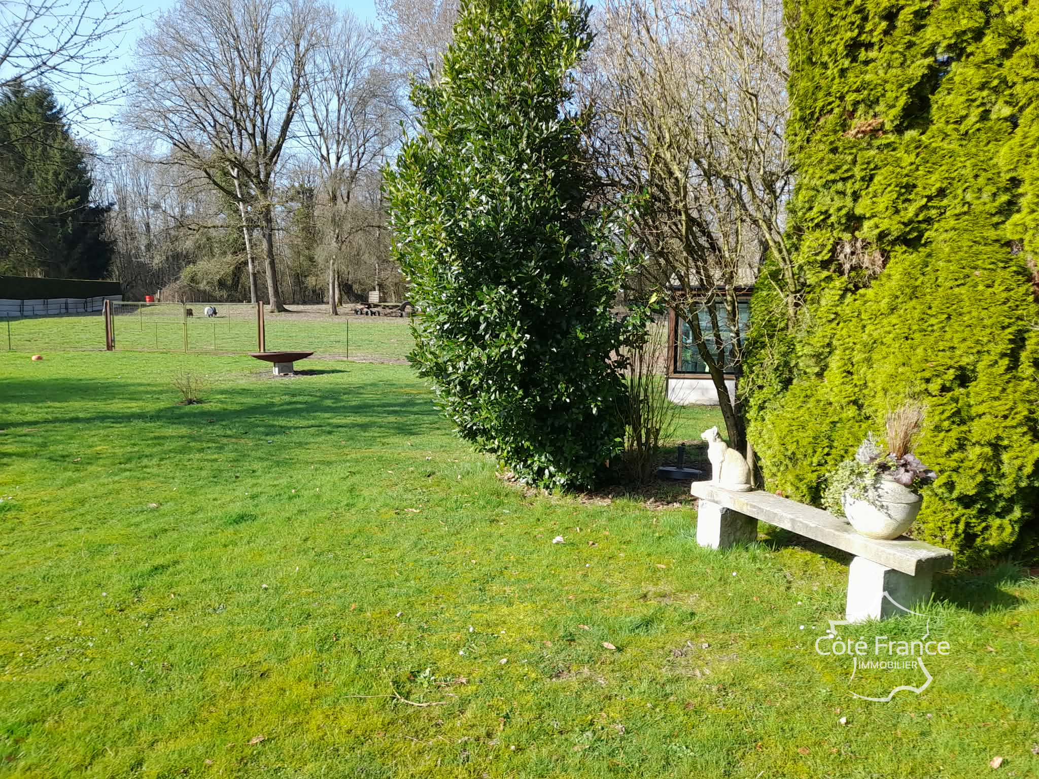 Cadre verdoyant avec vue sur les prairies. Cette propriété s'étend sur plus de 45 ares.