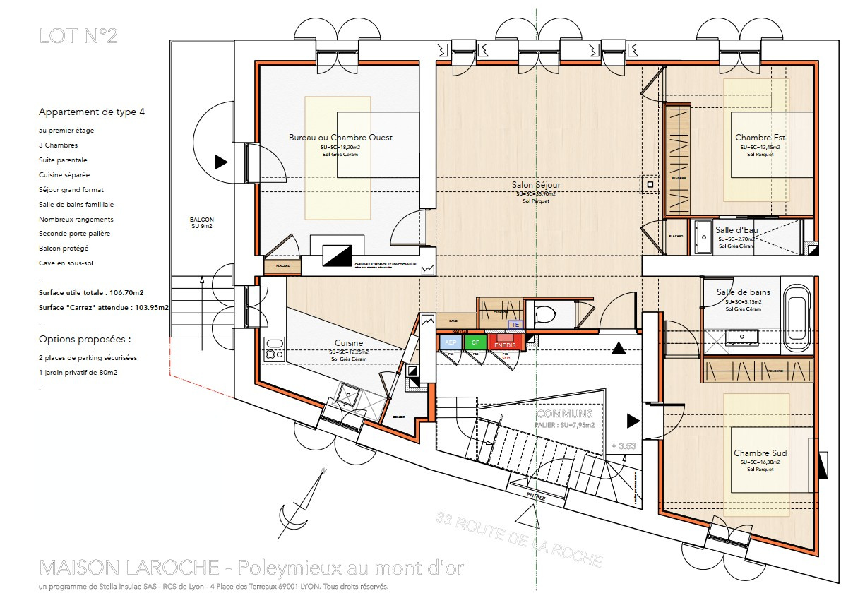 Une cave et un local commun pour vélos et poussettes agrémentent le bien. En supplément : deux places de stationnement et un jardin privatif d'environ 85 m2 pour 20 000 EUR.