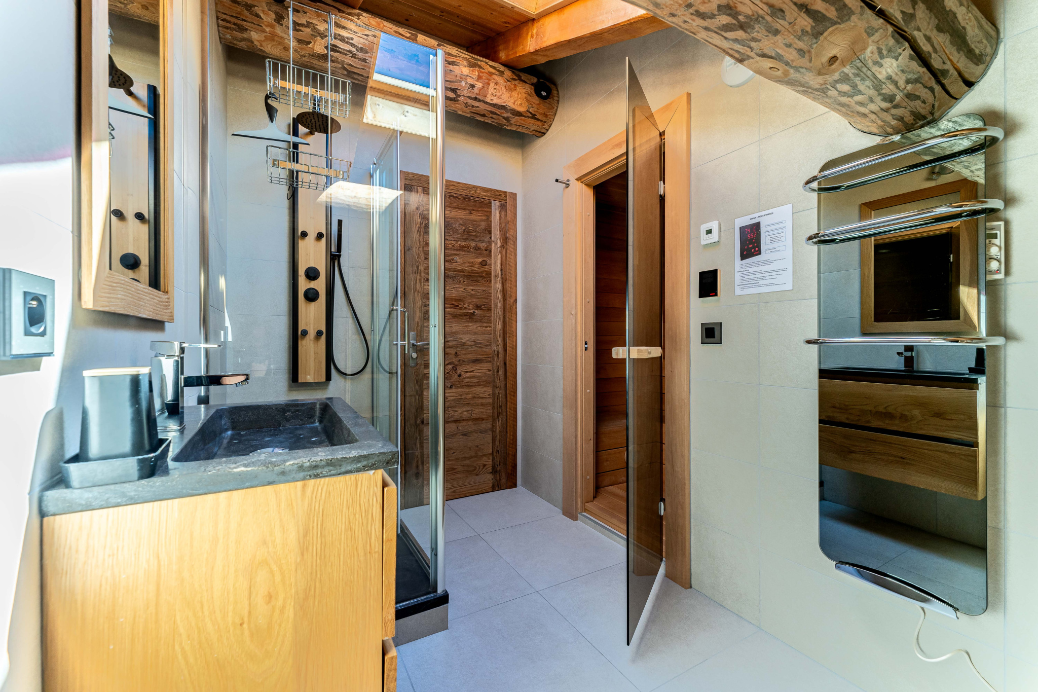 On the garden level, a main apartment of 270m2 comprises a 150m2 living room with fully-equipped open kitchen and central fireplace, an office, a master suite with bathroom and dressing room, and 2 bedrooms with en-suite shower rooms on the first floor. A large laundry room, a cellar, a winter garden and a beautiful 90m2 terrace complete this apartment. On the second floor, a 64m2 apartment with a balcony overlooking the valley comprises a living room with fitted kitchen, a corridor with sleeping area, 2 bedrooms and a shower room. On the same level, a 51m2 2-room apartment with living room, fitted kitchen, bedroom and shower room. Finally, on the same first level, there's a 57m2 ski room with laundry and storage space. An elevator leads to the 2nd and 3rd levels: a 195m2 apartment occupies the top floor: it comprises a large cathedral living room with fully equipped open kitchen opening onto a large balcony with view, 4 bedrooms including a master suite with shower room, a bathroom with sauna and another bathroom. Finally, on the 2nd level, you'll find a 250m2 open space that could be converted into one or more apartments.