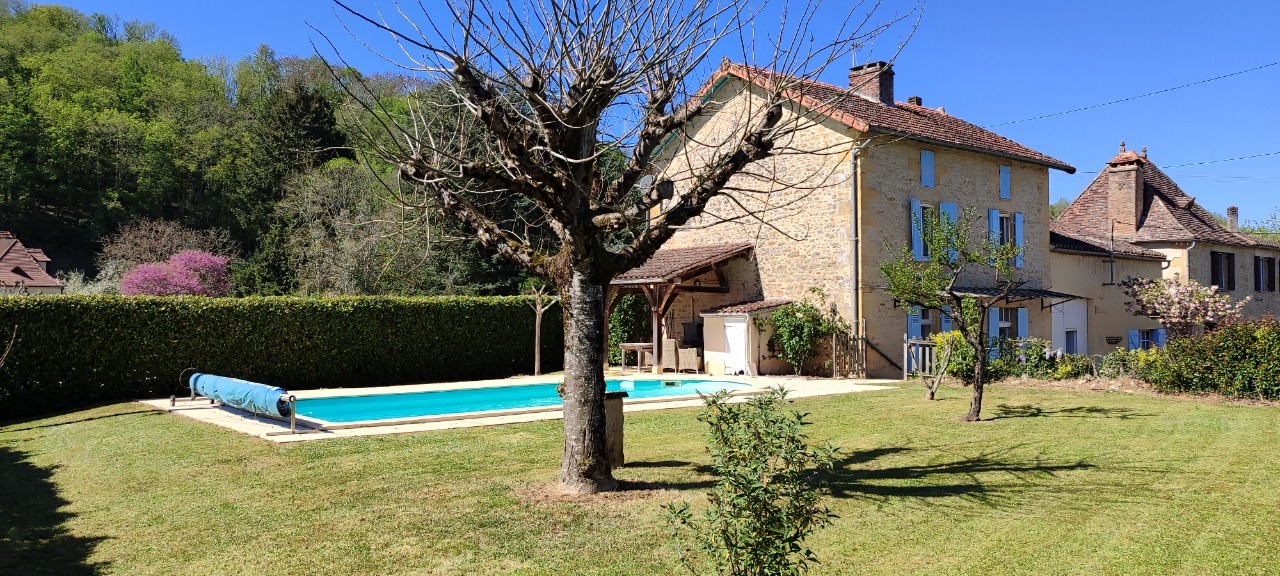 Belle maison familiale en pierre avec piscine et jardin à proximité immédiate du beau village pittoresque de Mauzac et la rivière Dordogne qui offre des activités nautiques, sportives et non loin de Lalinde et tous ses commerces et de sa gare SNCF