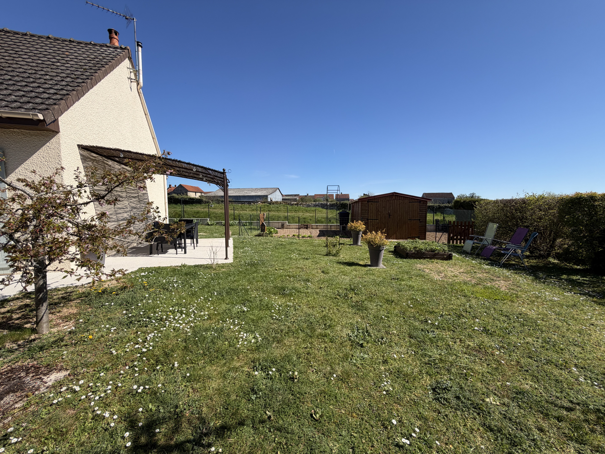 À l'extérieur, vous trouverez un potager clos avec son abri de jardin en bois, ainsi qu'un cabanon permettant de ranger les outils de jardinage, le tout sur un terrain clos et sans vis-à-vis de 882 m2.